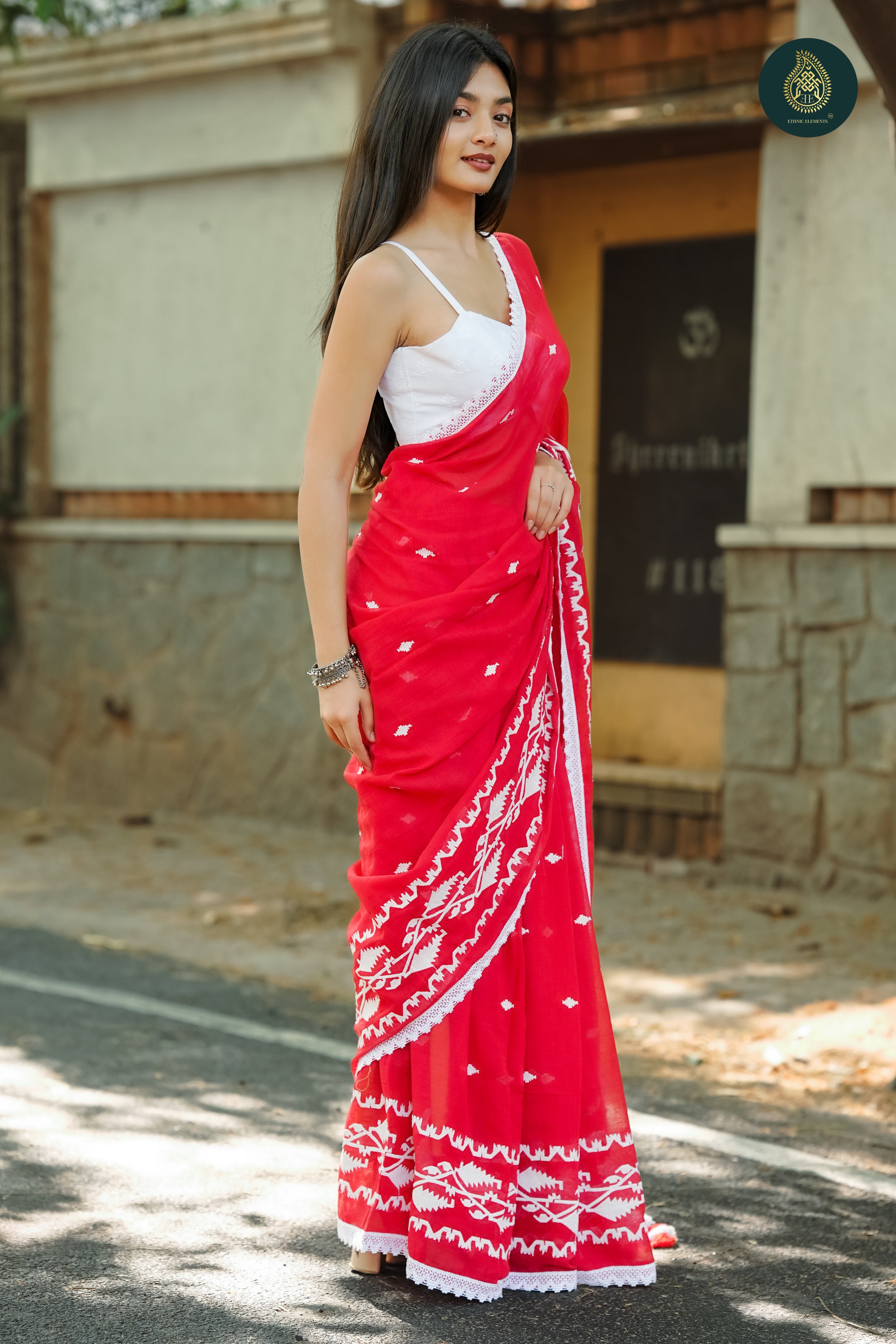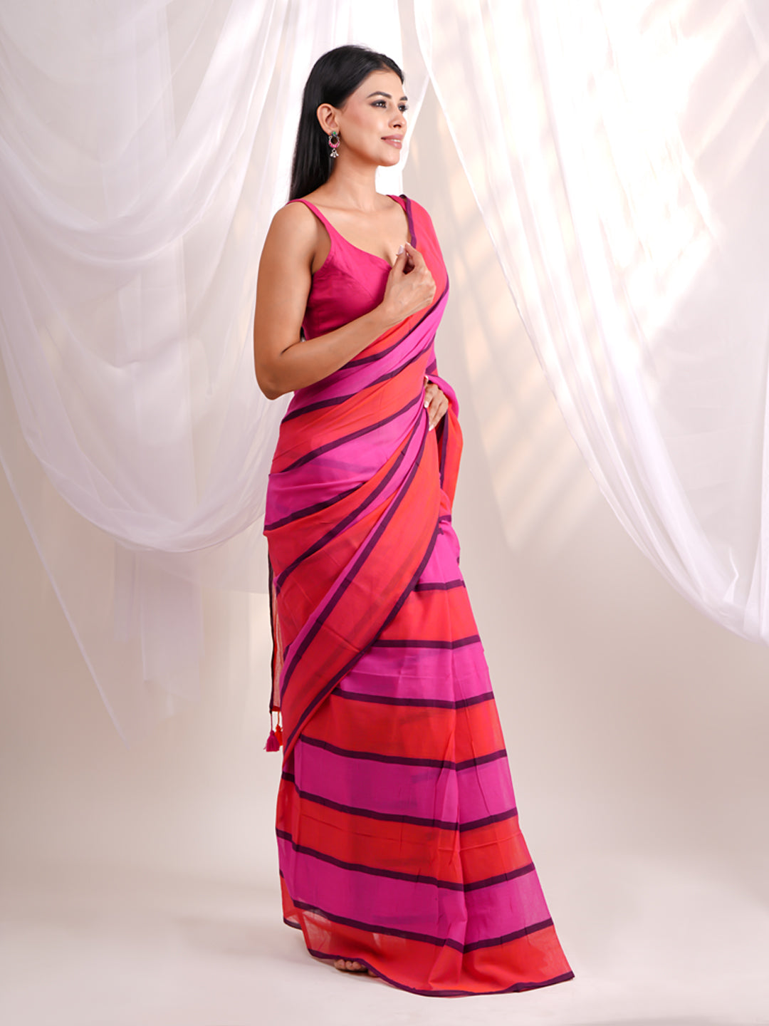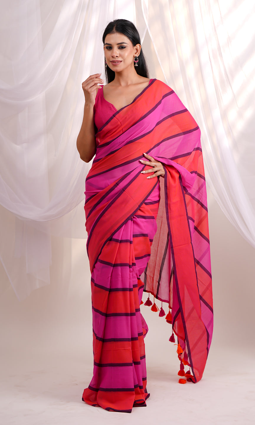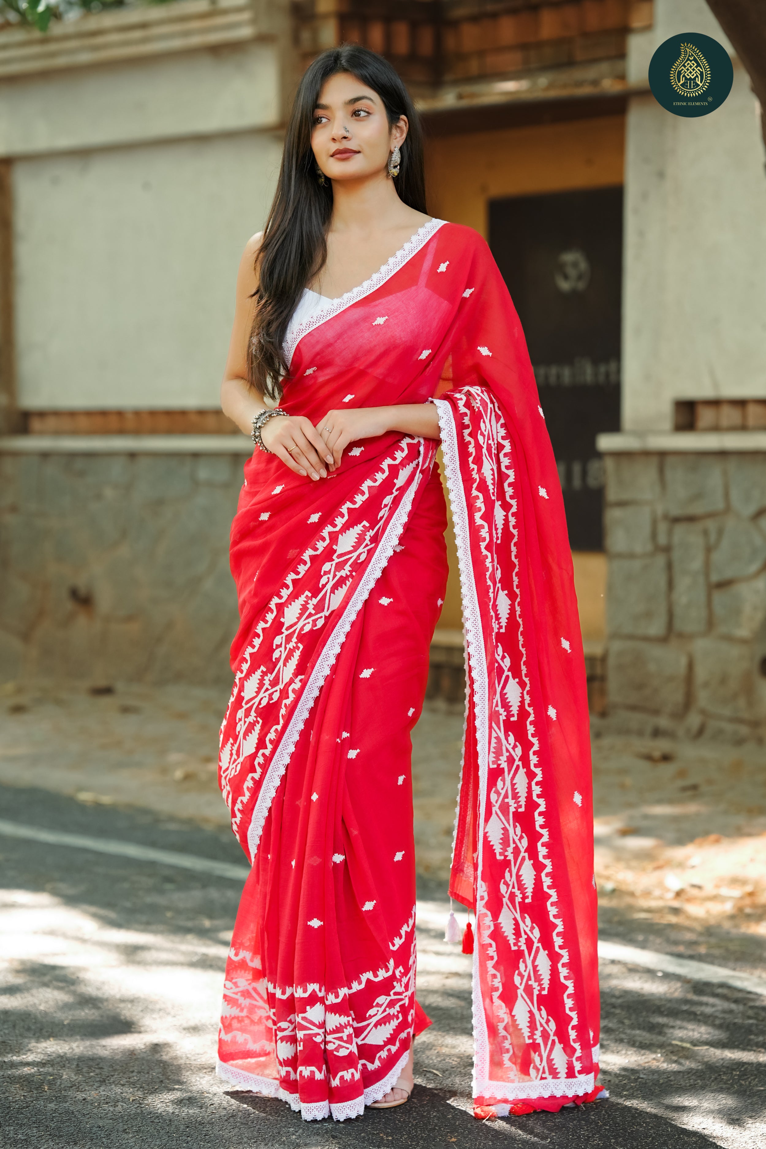 This saree is pure joy! The color is so fresh and vibrant, and the fabric feels light and breezy-perfect for all-day wear. I love how effortlessly elegant it makes me feel, whether I’m outdoors or at a casual gathering.