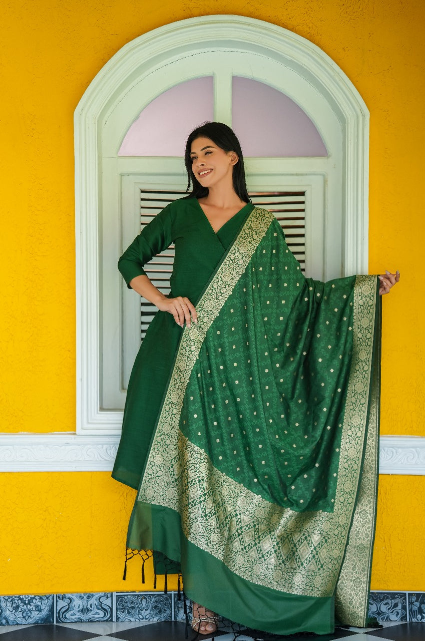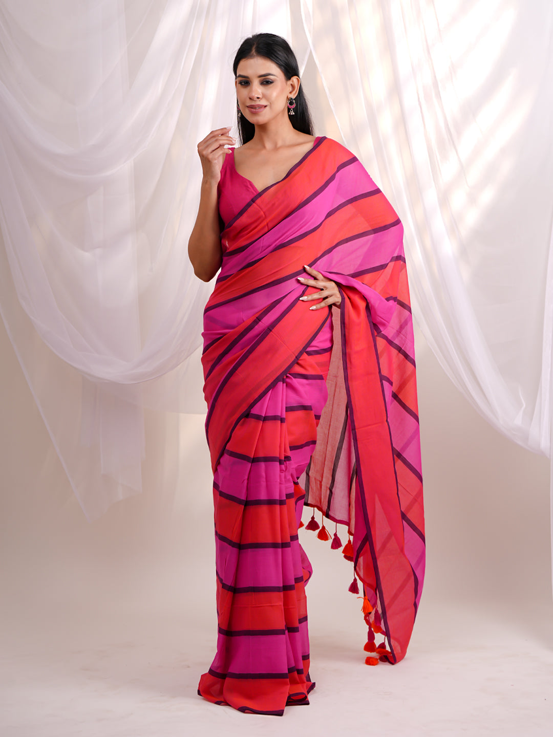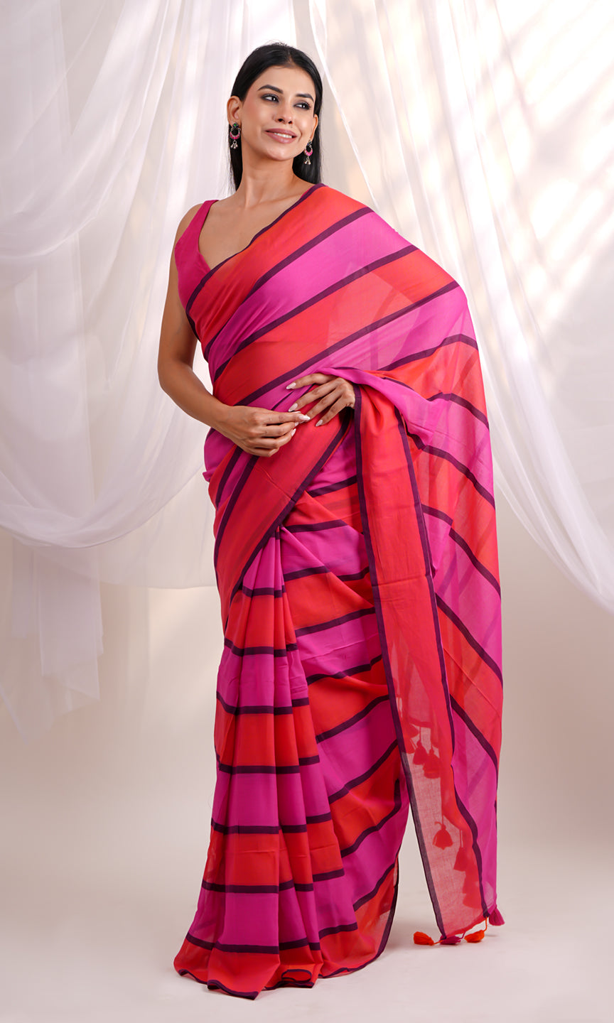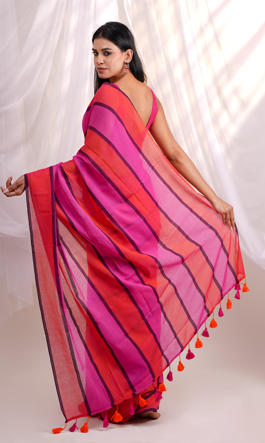 This saree is pure joy! The color is so fresh and vibrant, and the fabric feels light and breezy-perfect for all-day wear. I love how effortlessly elegant it makes me feel, whether I’m outdoors or at a casual gathering.