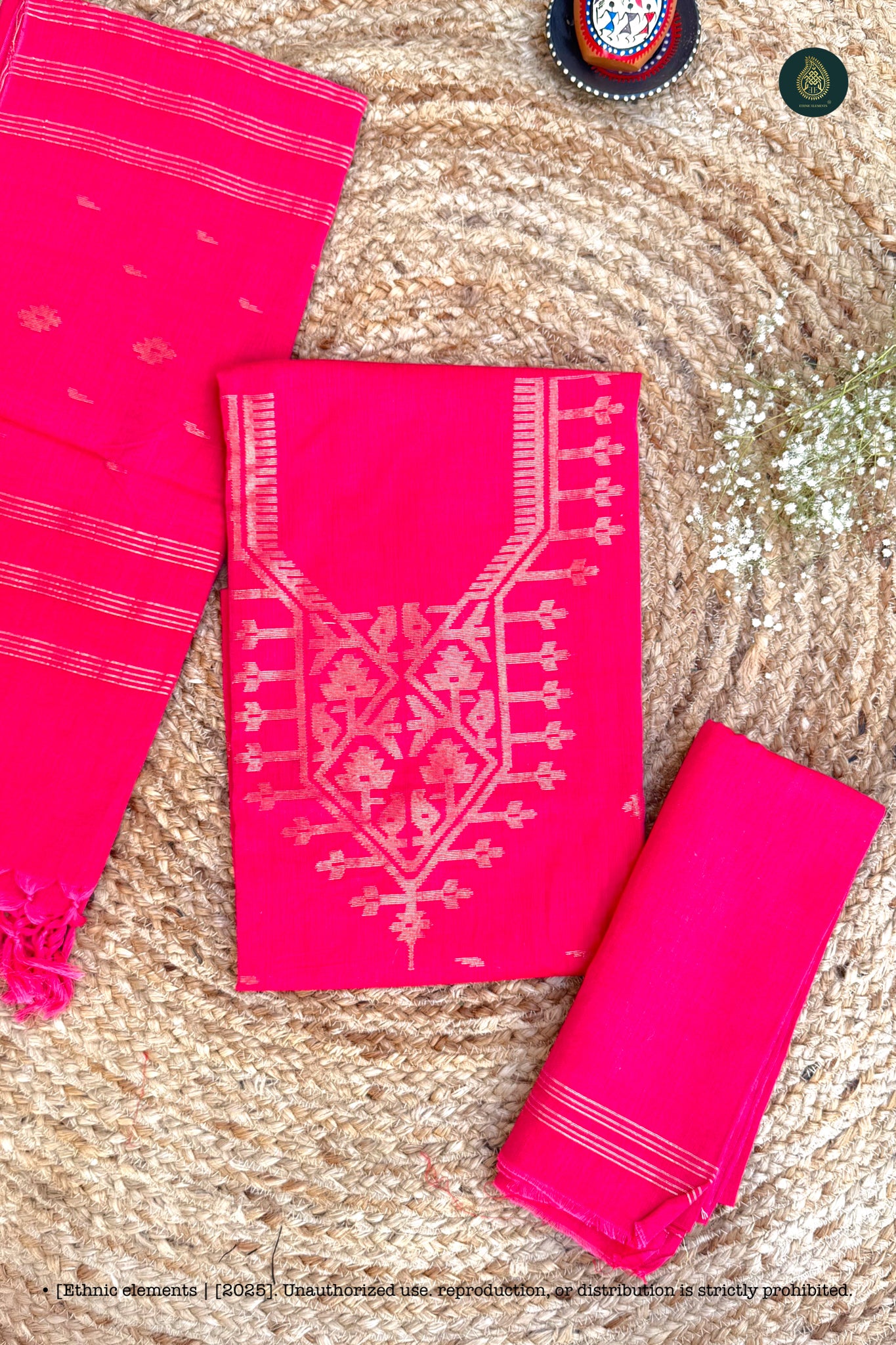 Bangladeshi Pure Cotton Jamdani Handwoven 3-Piece Unstitched Suit Set