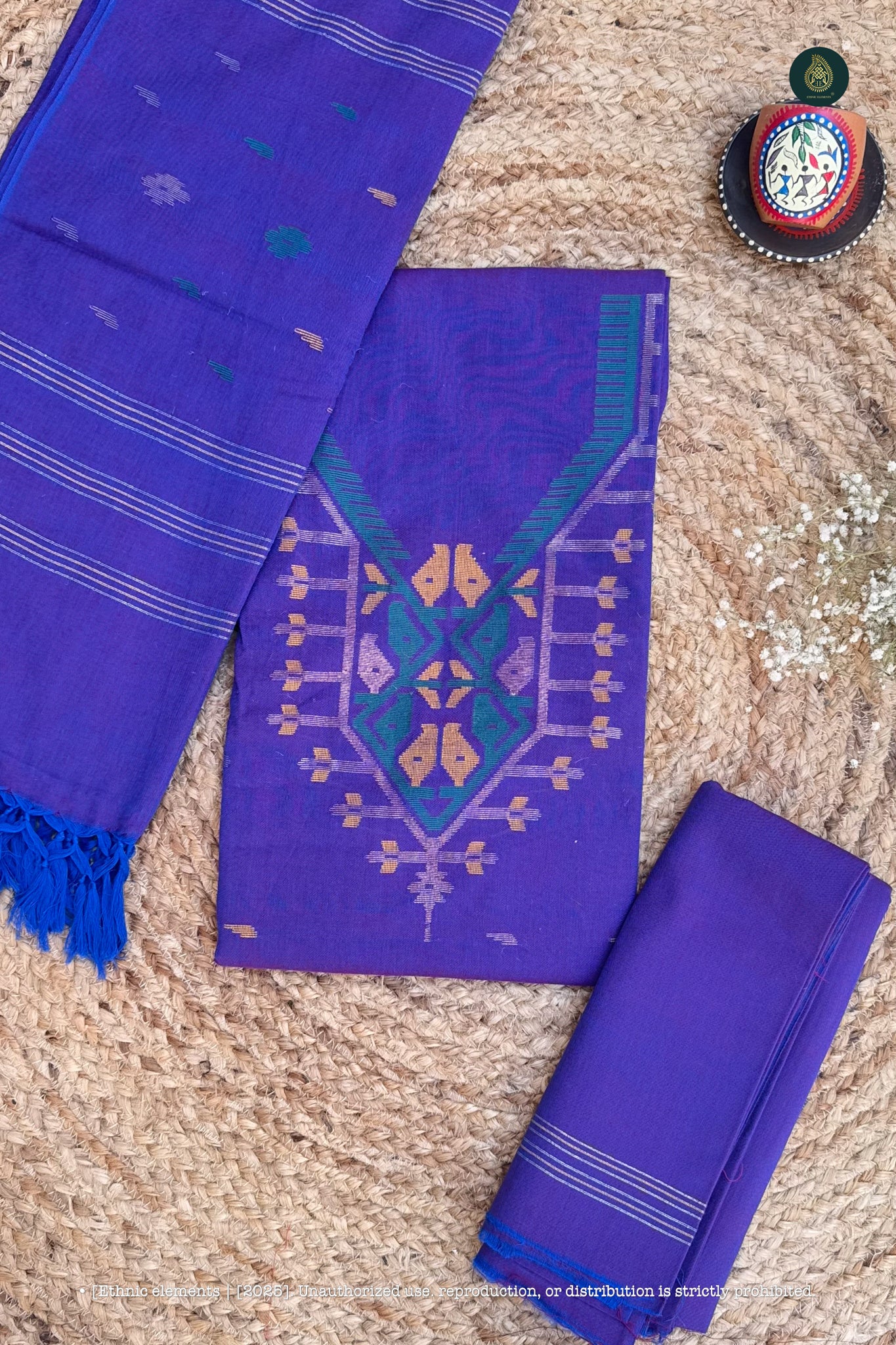 Bangladeshi Pure Cotton Jamdani Handwoven 3-Piece Unstitched Suit Set