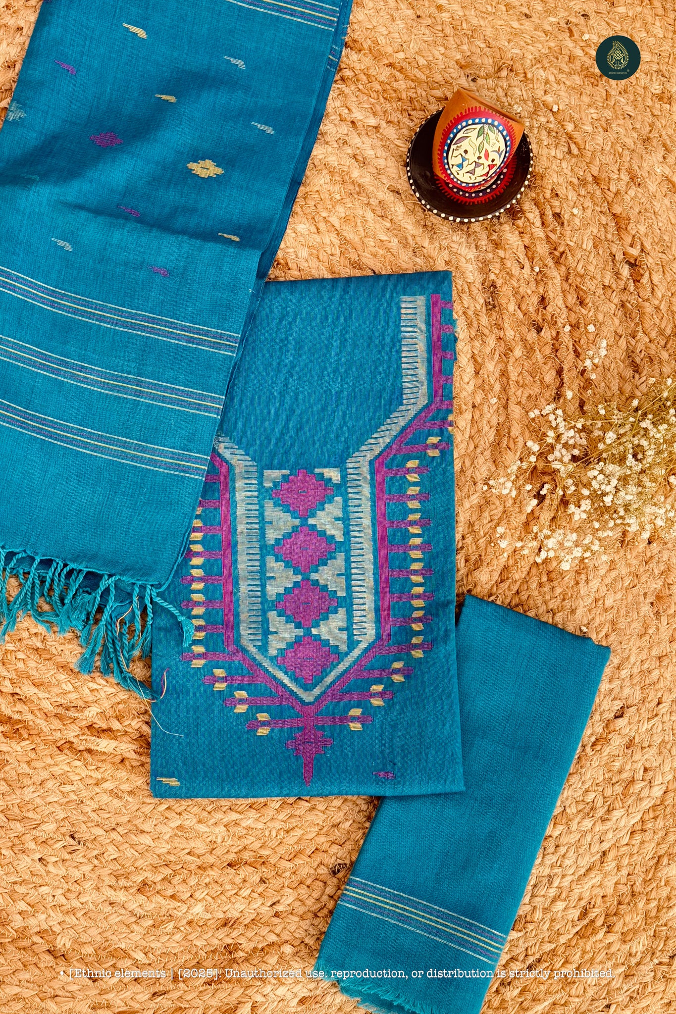 Bangladeshi Soft Cotton Jamdani Unstitched 3pc suit set- Saphira