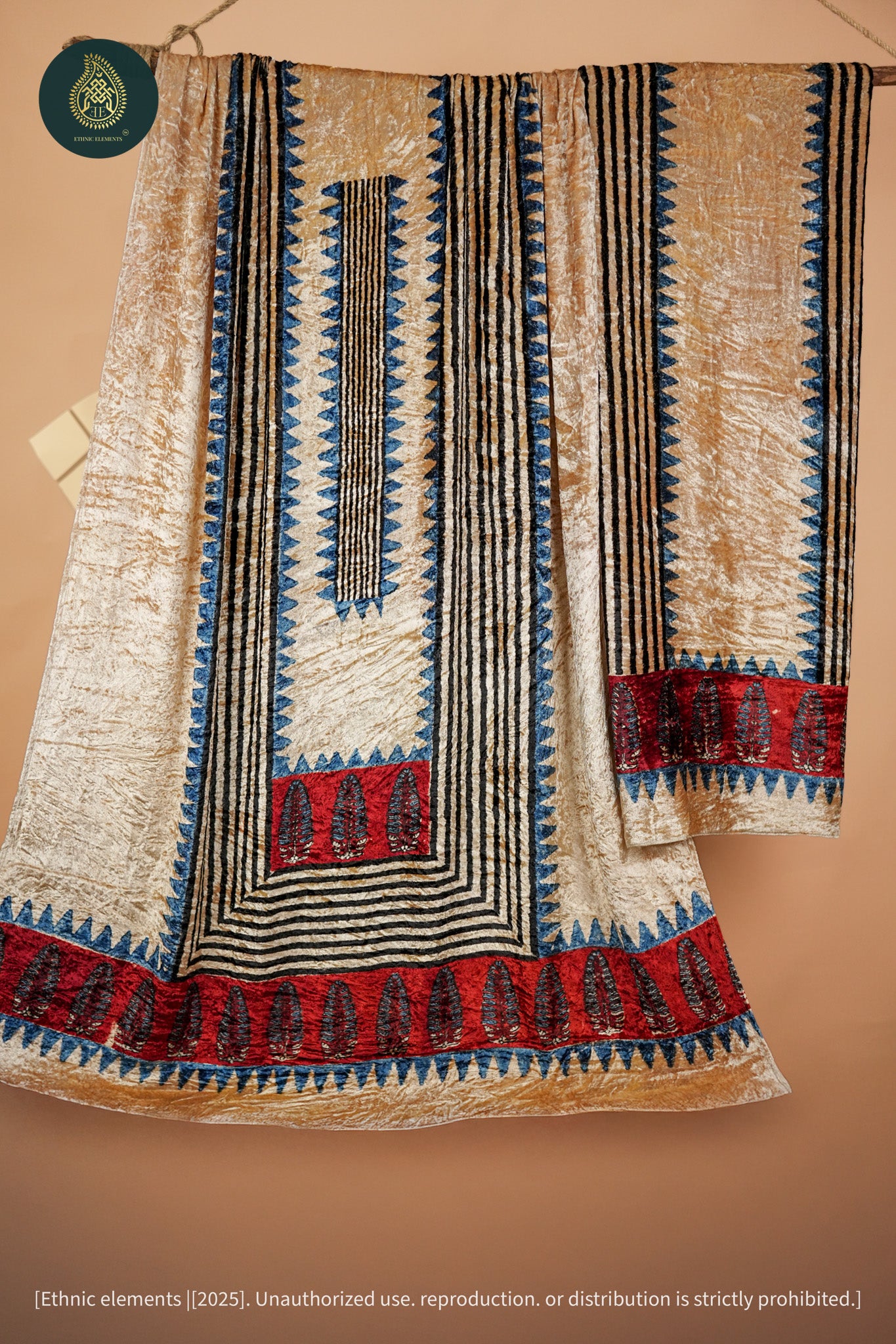 Velvet Ajrakh/Ajrak fabric for kurta. The Ajrakh blocks are made using wooden blocks and organic natural colors. This is only a kurta fabric piece.