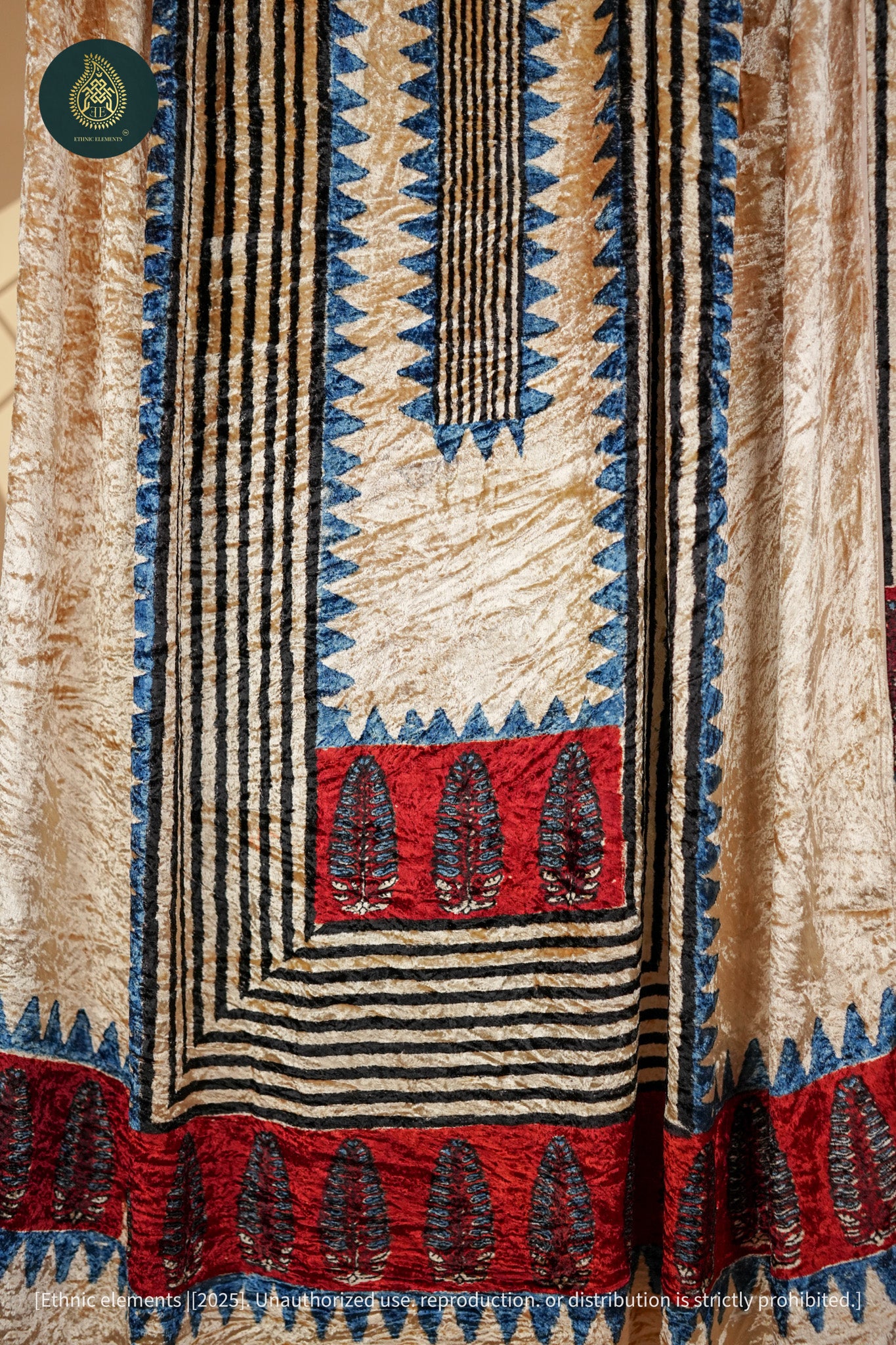 Ajrakh Velvet Anitique Ivory Ink