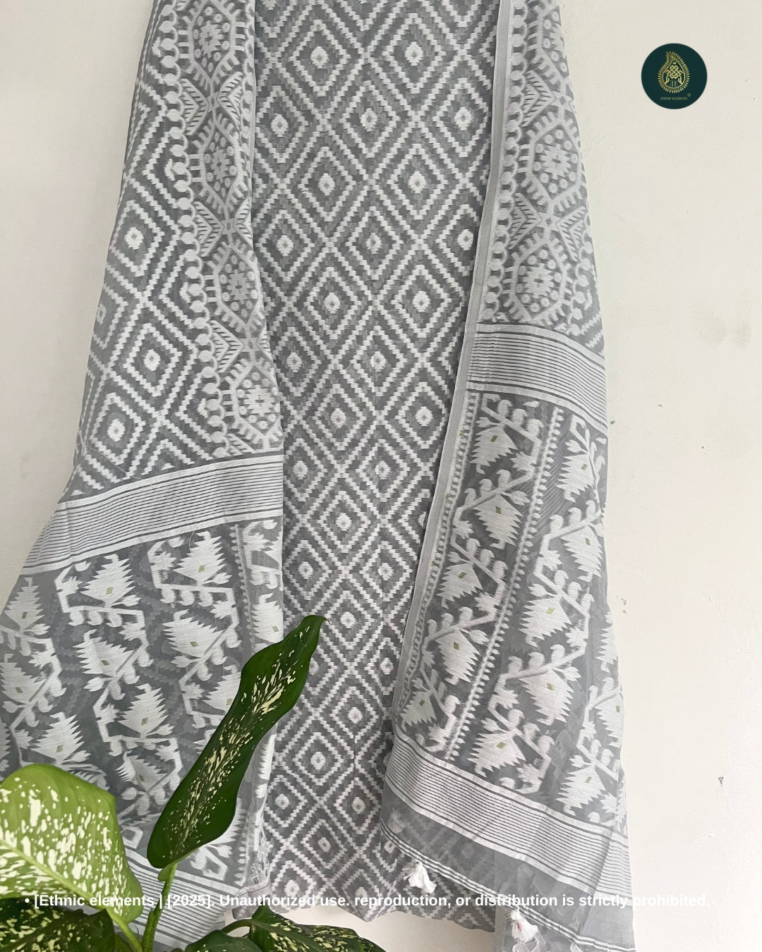 A masterpiece handcrafted by skilled rural artisans of India, preserving the rich tradition of Jamdani weaving.