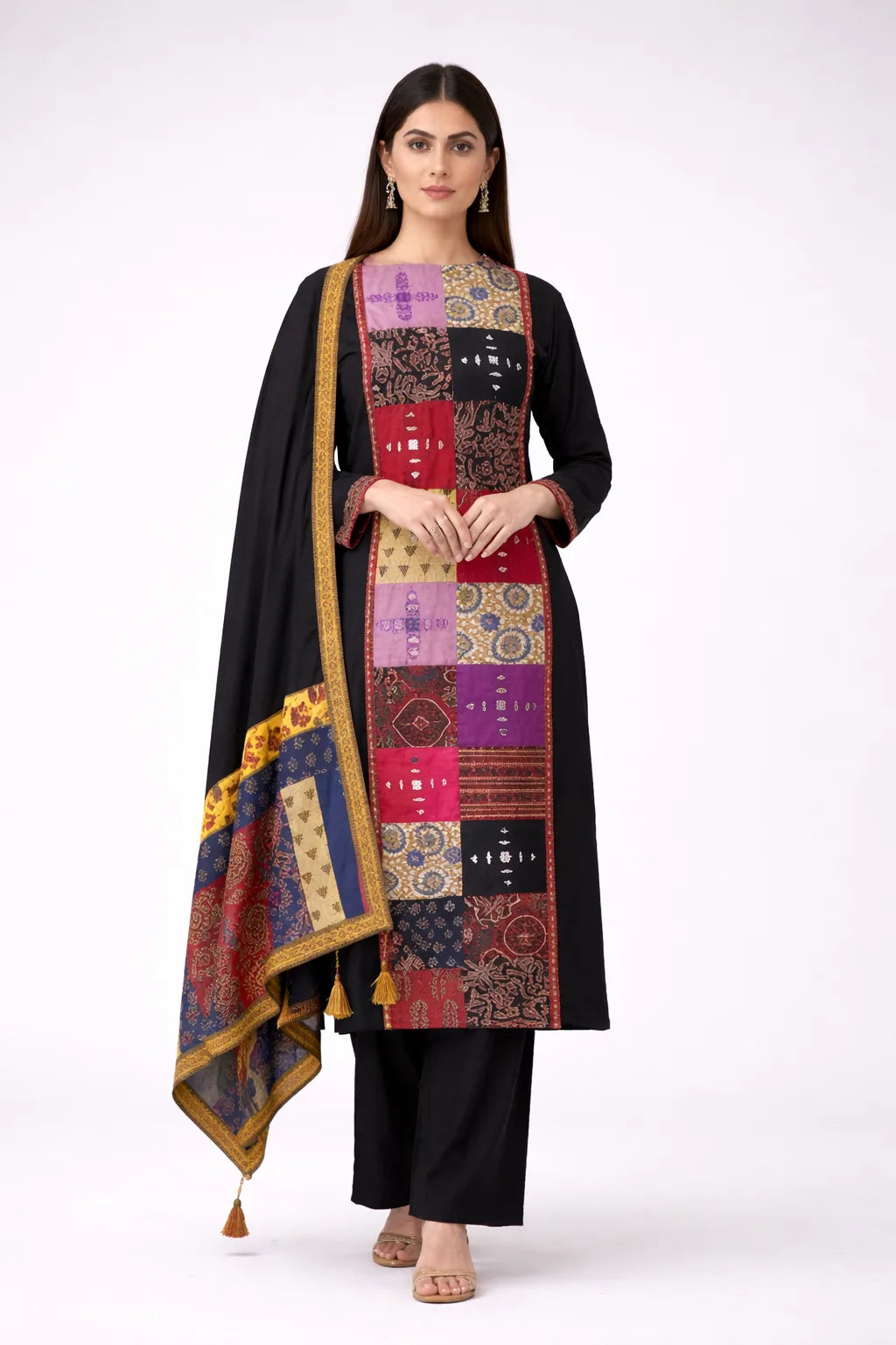 - Product Type: Ajrakh Patchwork 3Pc Suit Set With Dupatta