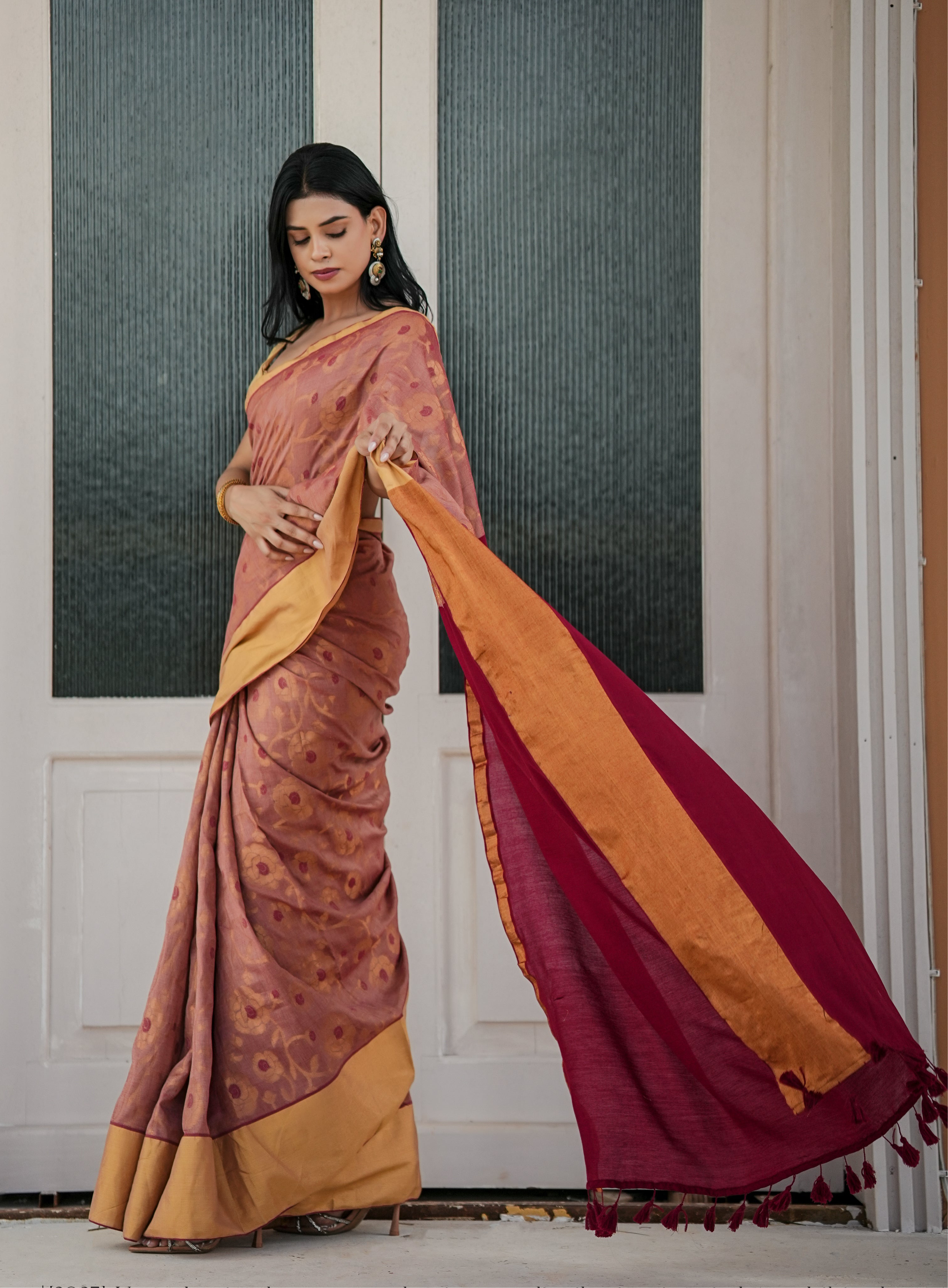 Mul Cotton Zari Floral Jaal Saree – Raag Rani