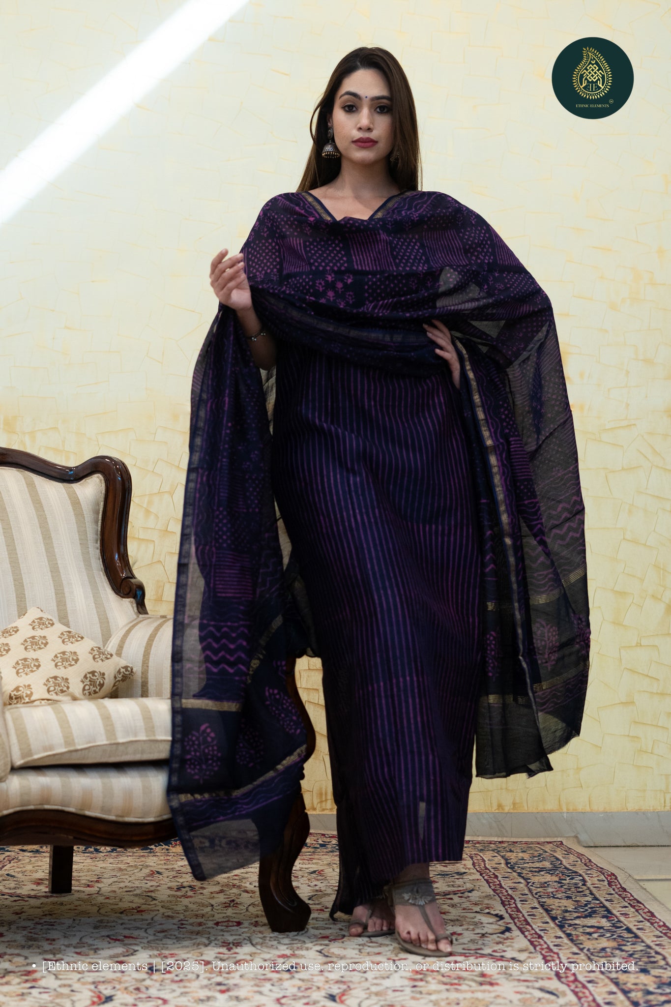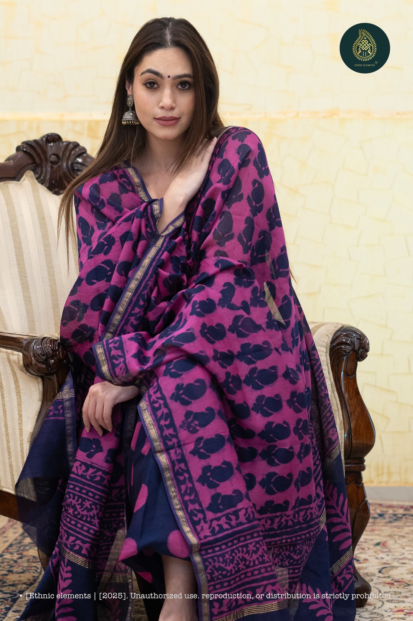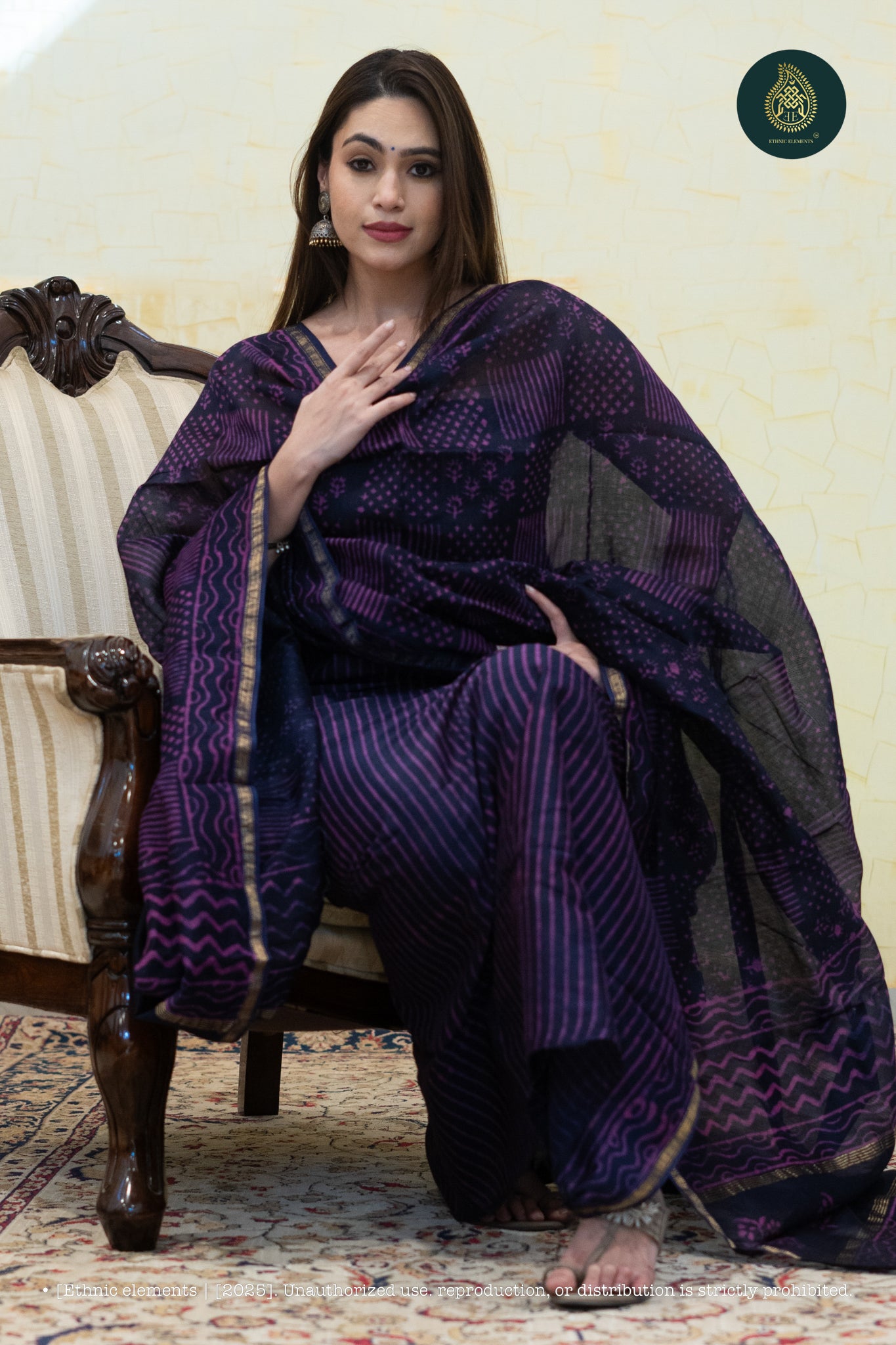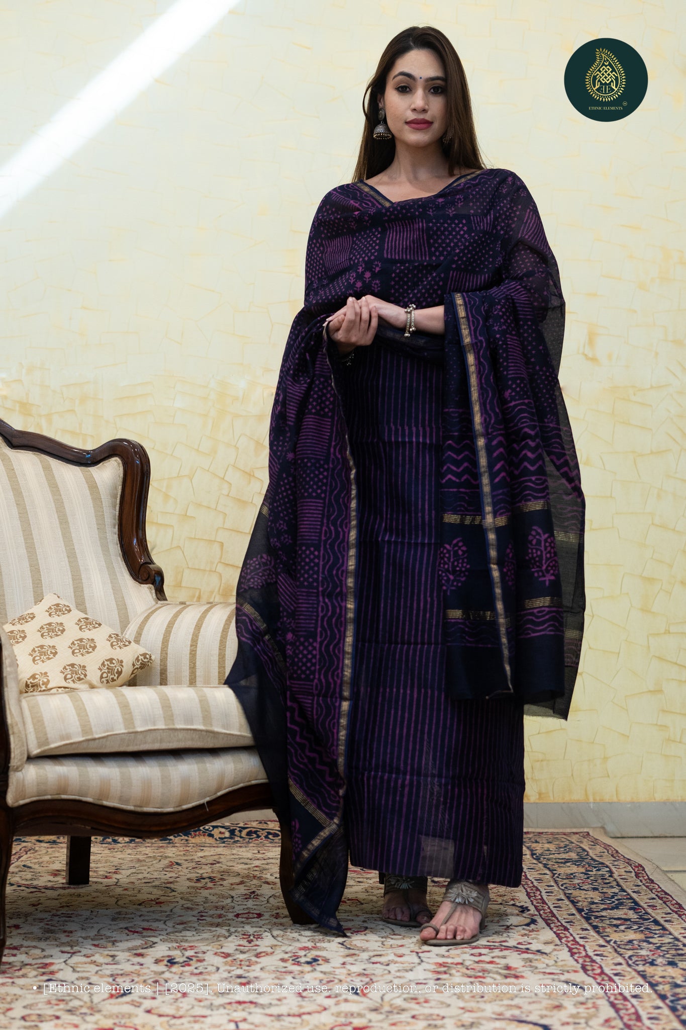 Dabu prints are a form of hand block printing done by natural colors followed by the Chippa's. A traditional sculpture in hand-block printing is made by using a mud-resist material created by a mixture of desert sands called "Dabu”. This unique art is used to leave effects as mud-colored block prints on fabric.