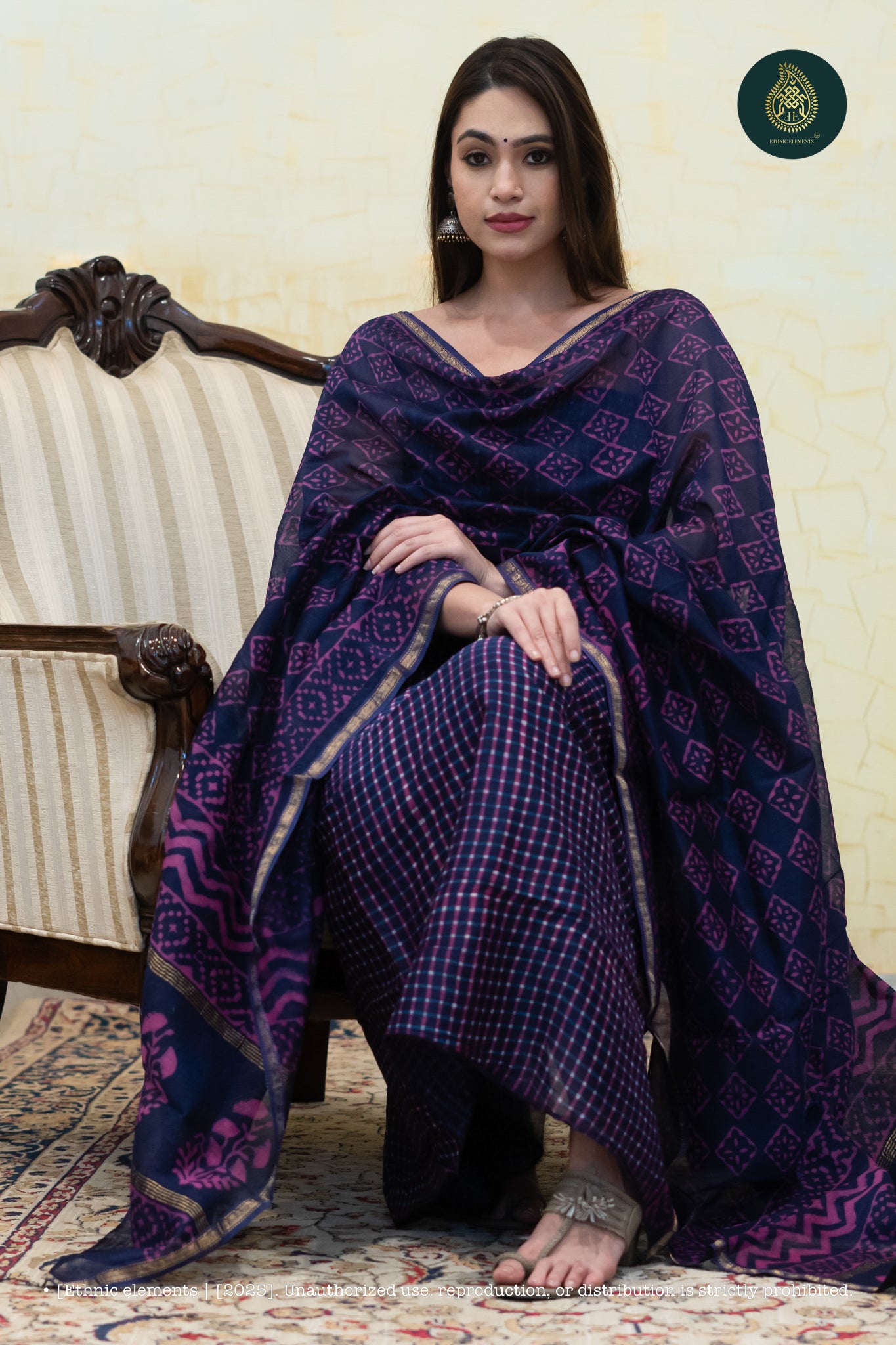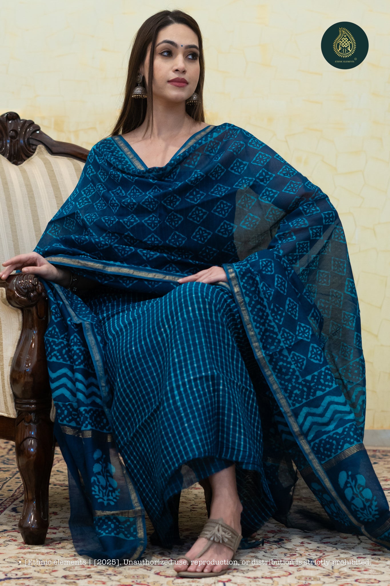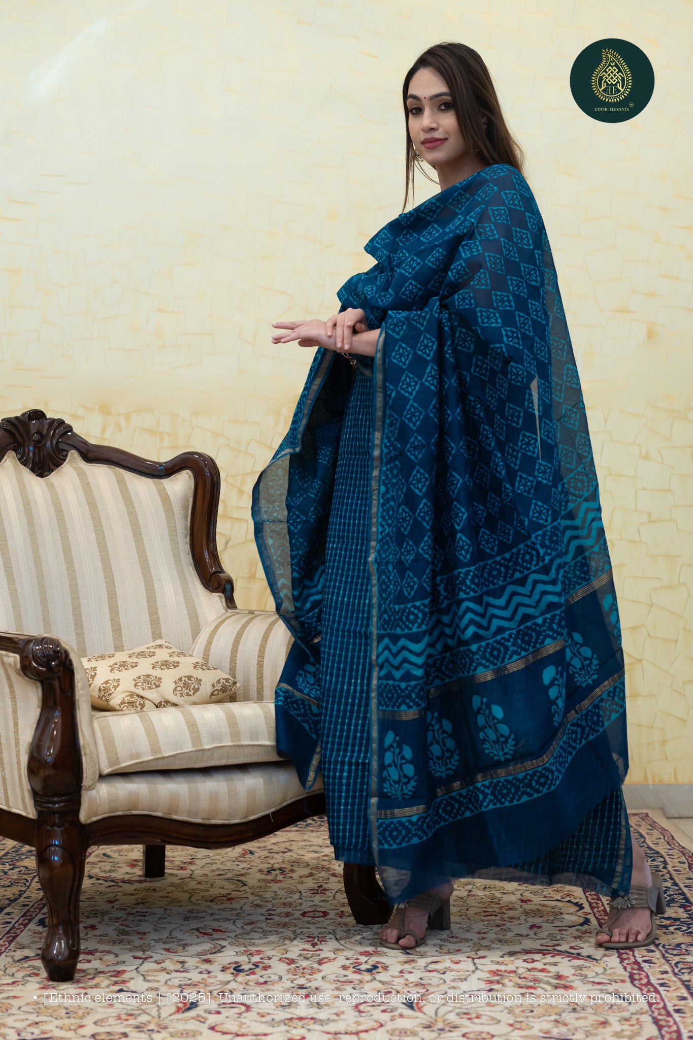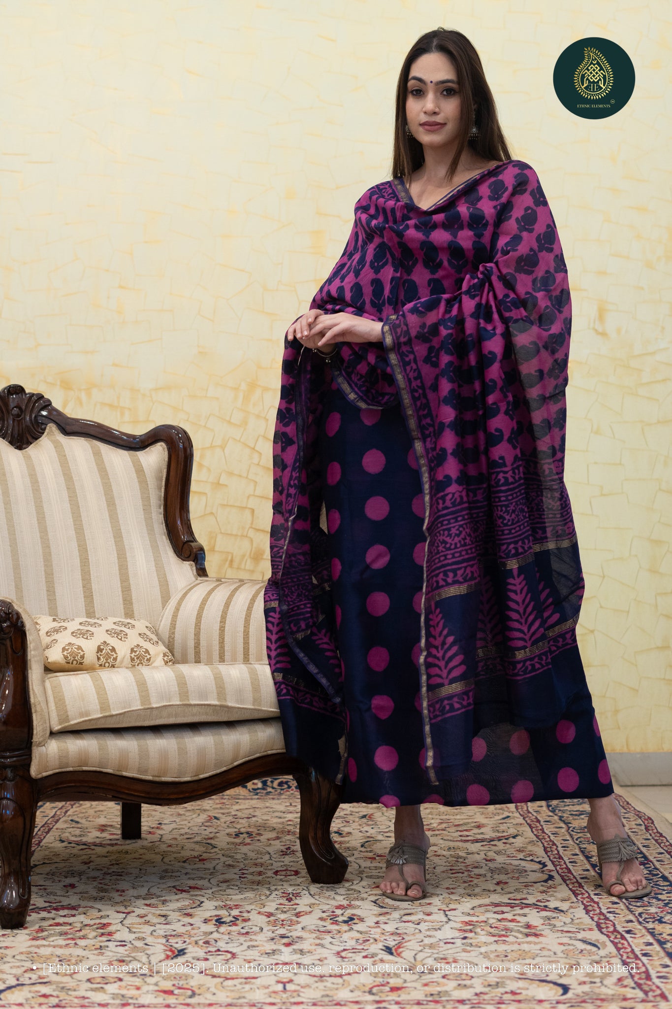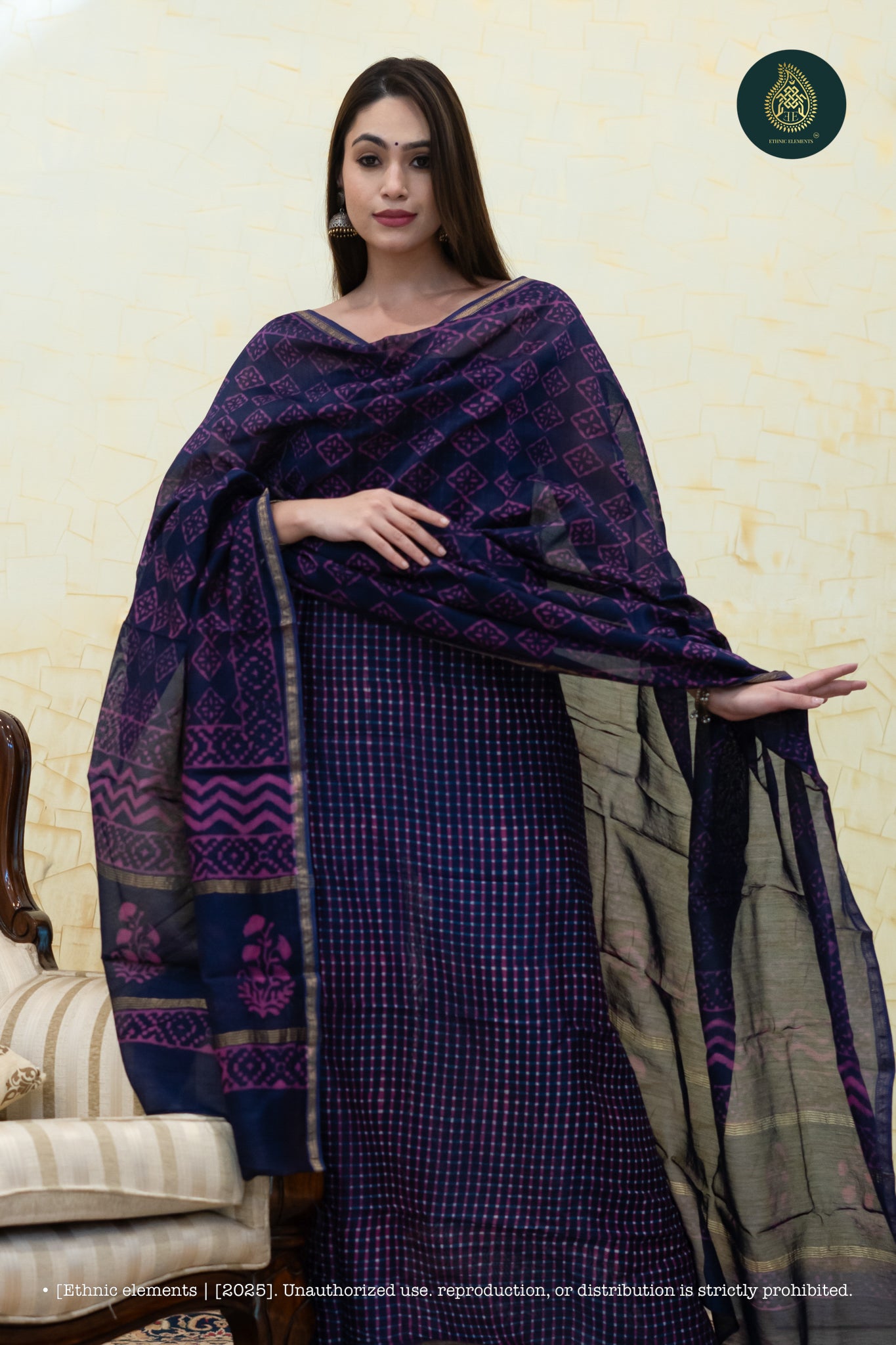 Dabu prints are a form of hand block printing done by natural colors followed by the Chippa's. A traditional sculpture in hand-block printing is made by using a mud-resist material created by a mixture of desert sands called "Dabu”. This unique art is used to leave effects as mud-colored block prints on fabric.