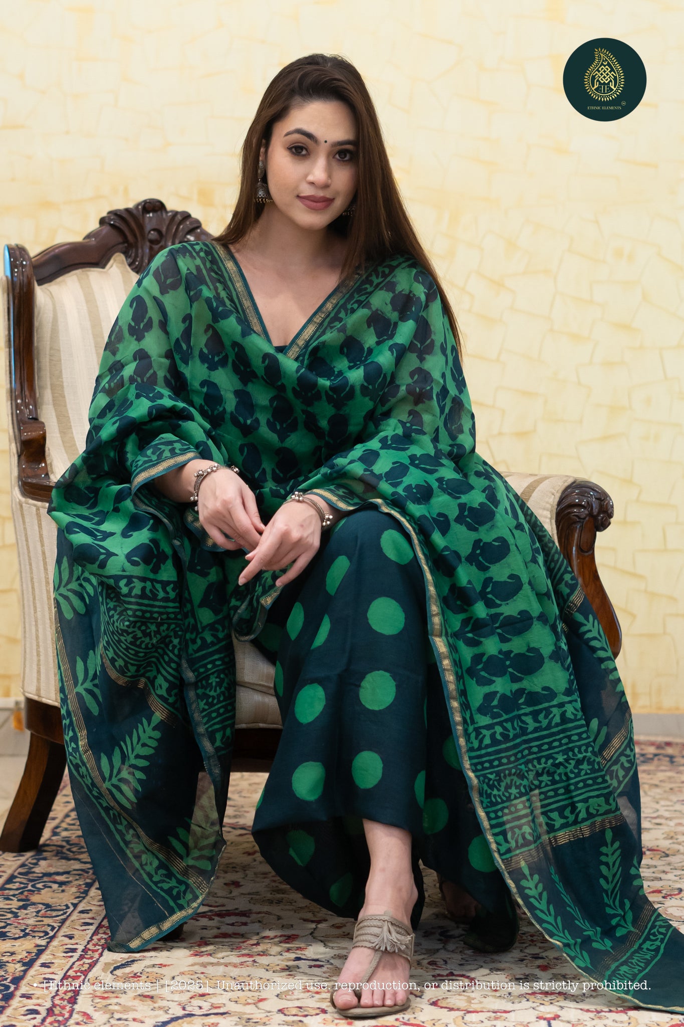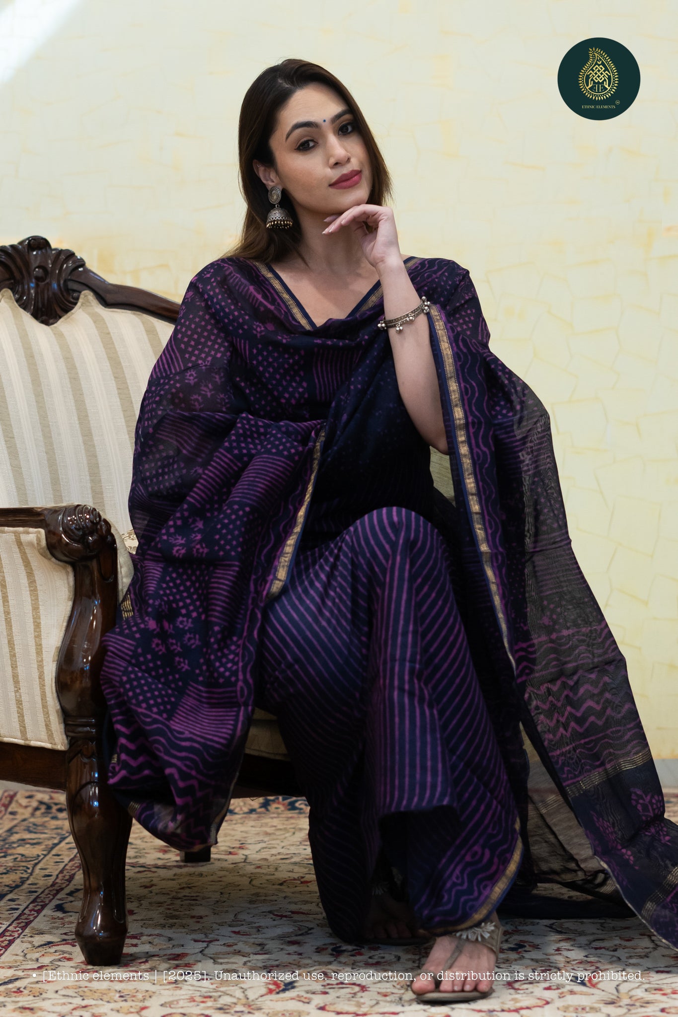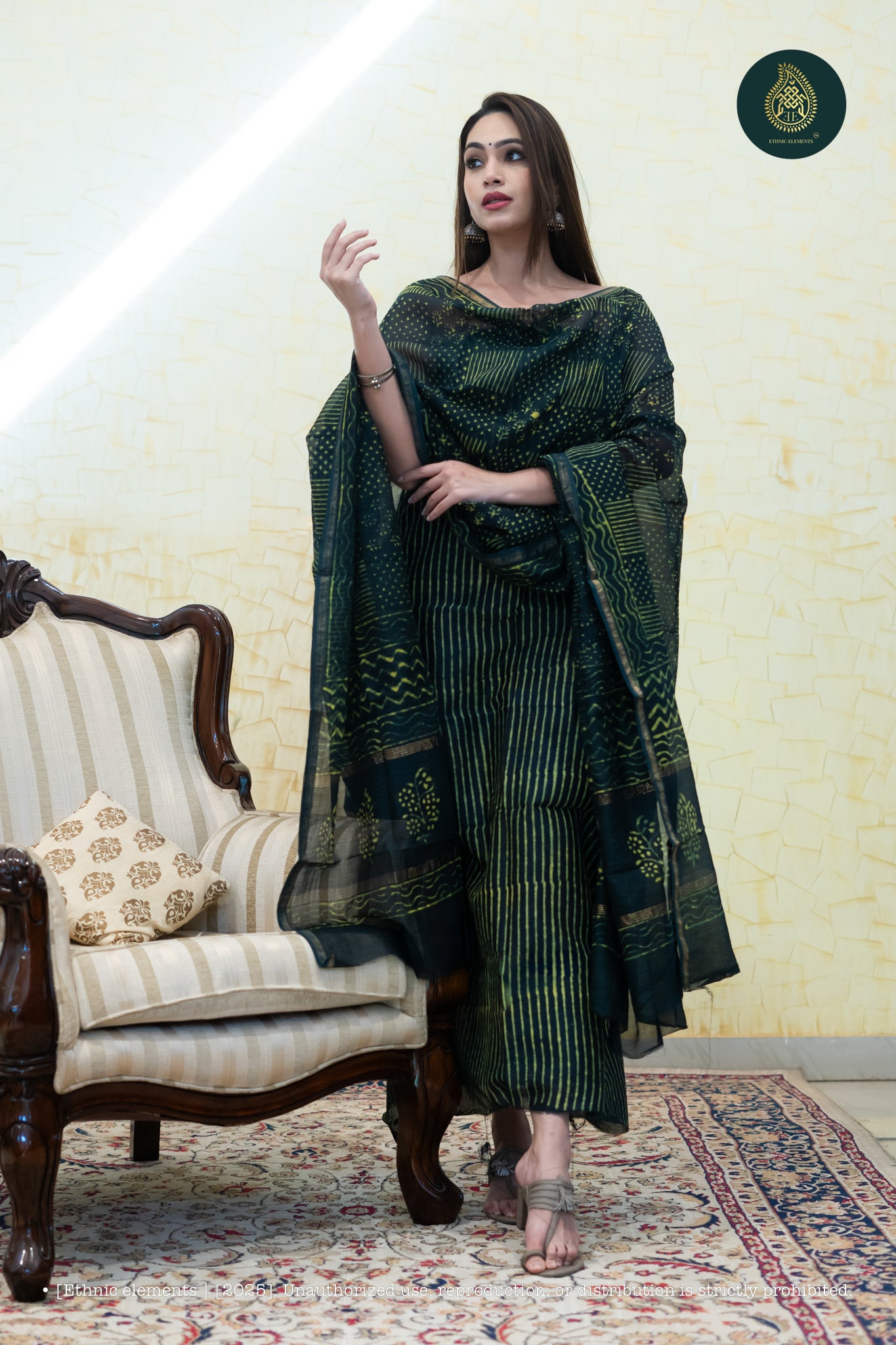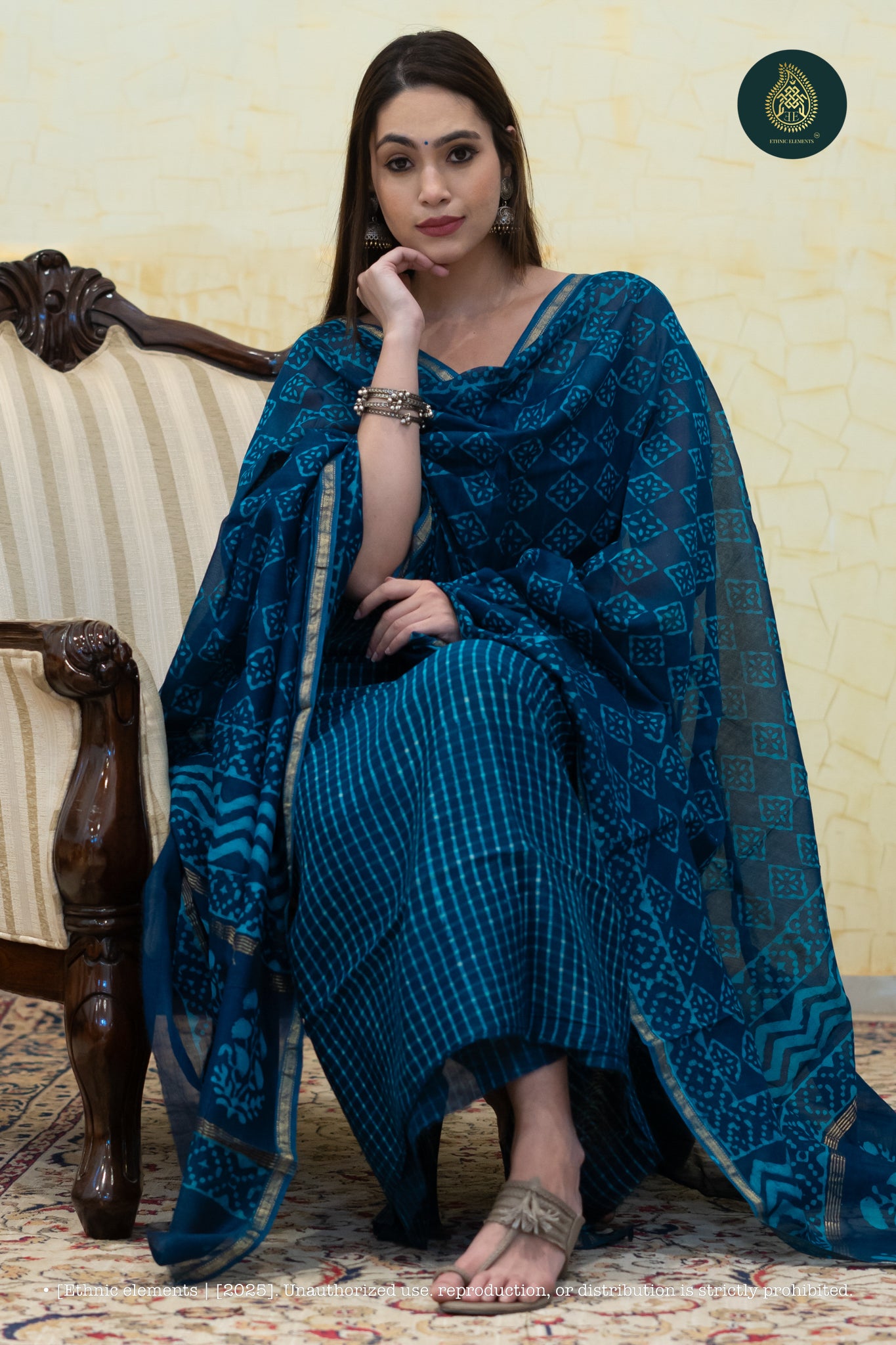 Dabu prints are a form of hand block printing done by natural colors followed by the Chippa's. A traditional sculpture in hand-block printing is made by using a mud-resist material created by a mixture of desert sands called "Dabu”. This unique art is used to leave effects as mud-colored block prints on fabric.