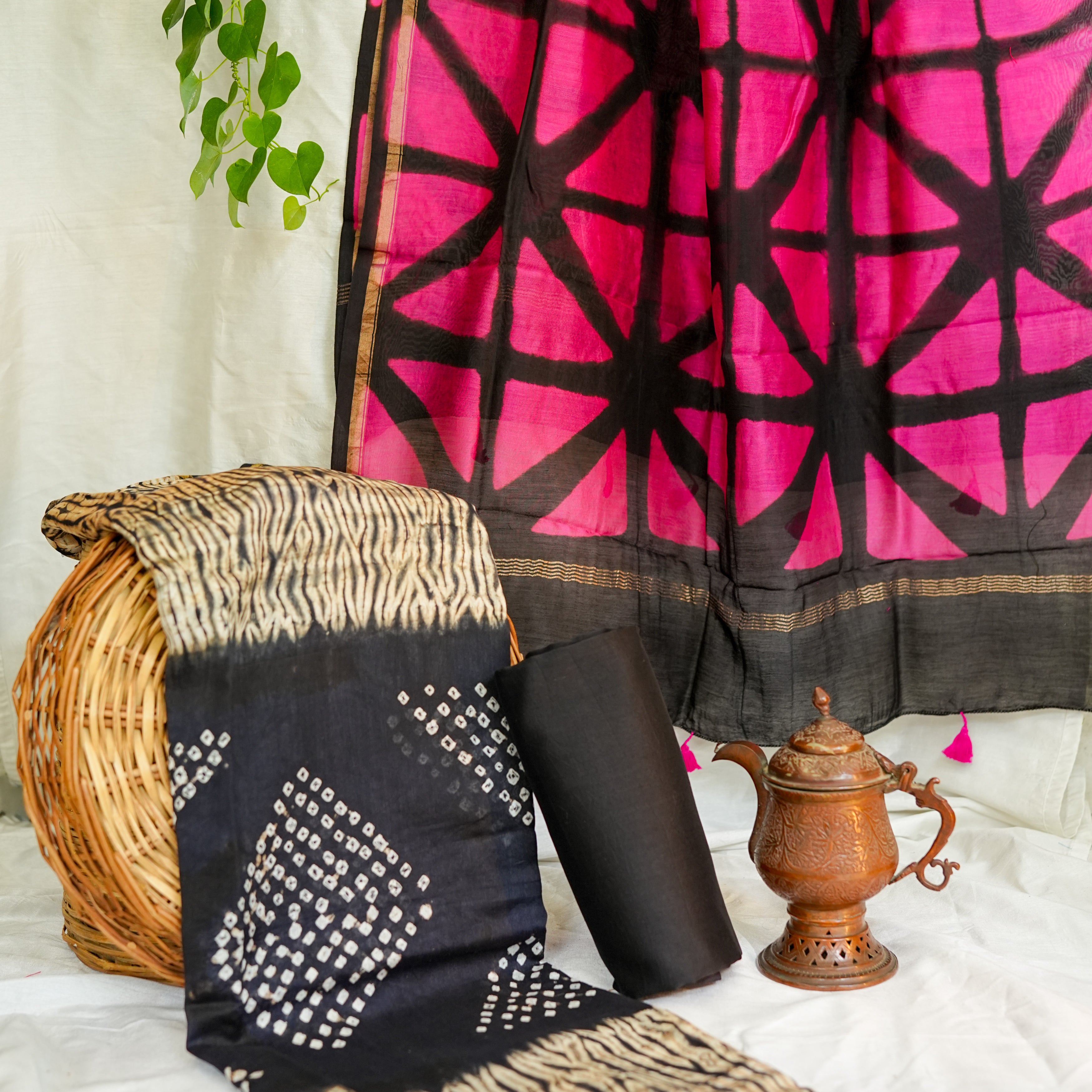 Get yourselves a rich look with our exclusive collection of wooden frame hand-block designed suit sets made from munga or muga tussar fabric. Made from original hand-weaved Muga-Tussar Silk fabric, these suit sets are adorned with ancient technique hand-block designs, made by artisans of Bhagalpur with generations of expertise in this handy-work.