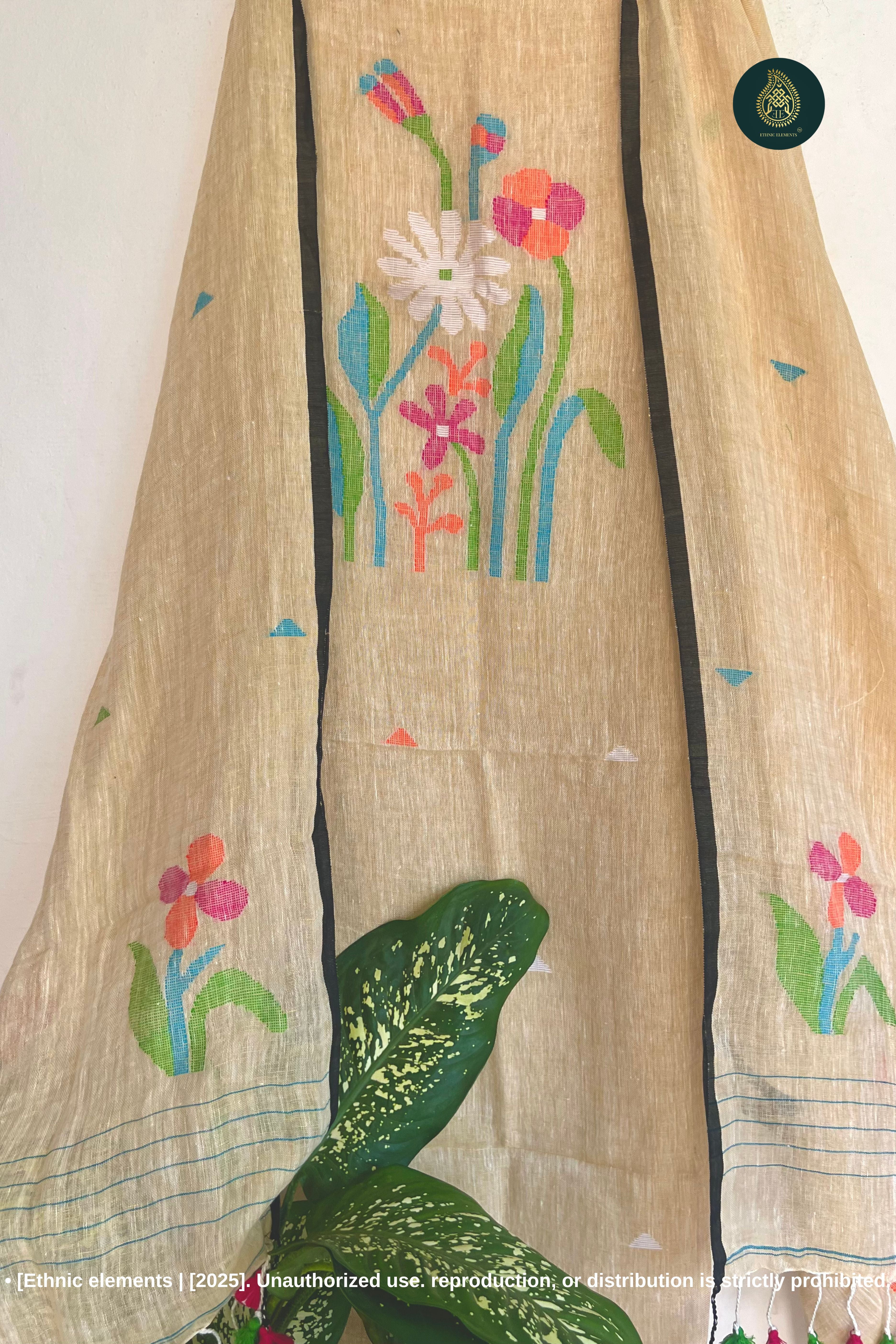 Our Pure Handwoven Linen Jamdani Kurta and Dupatta Set is a perfect blend of traditional craftsmanship and modern elegance. Crafted from 100% pure handwoven linen, this set showcases the delicate art of Jamdani weaving, known for its intricate patterns and timeless beauty. The set includes an unstitched kurta and a matching dupatta, offering versatility and style for a variety of occasions.
