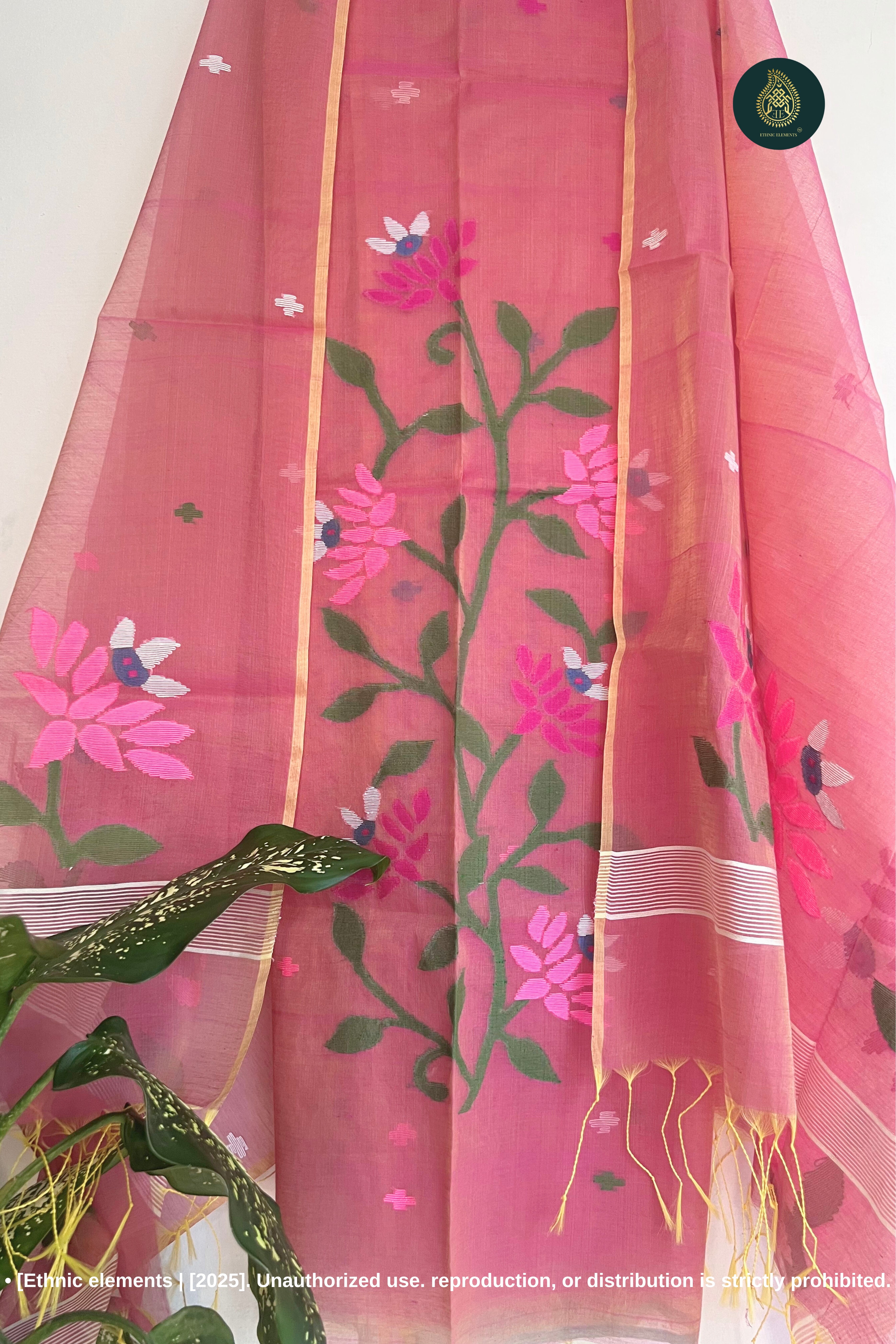 Resham Muslin Jamdani Suit Set- Dazzle Pink