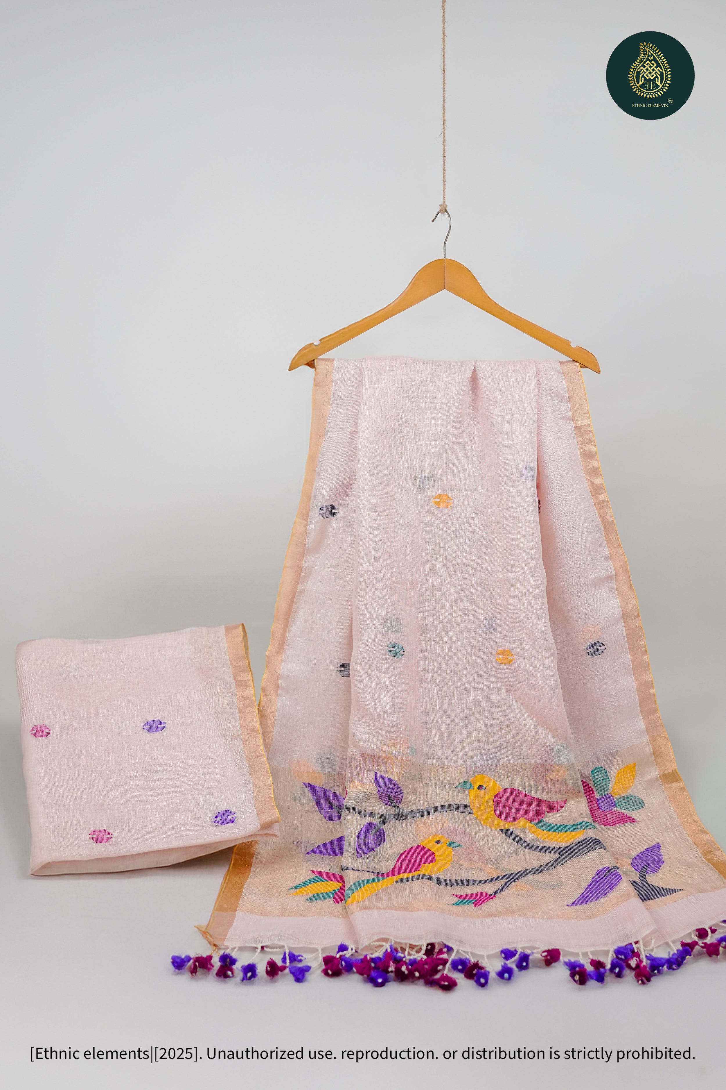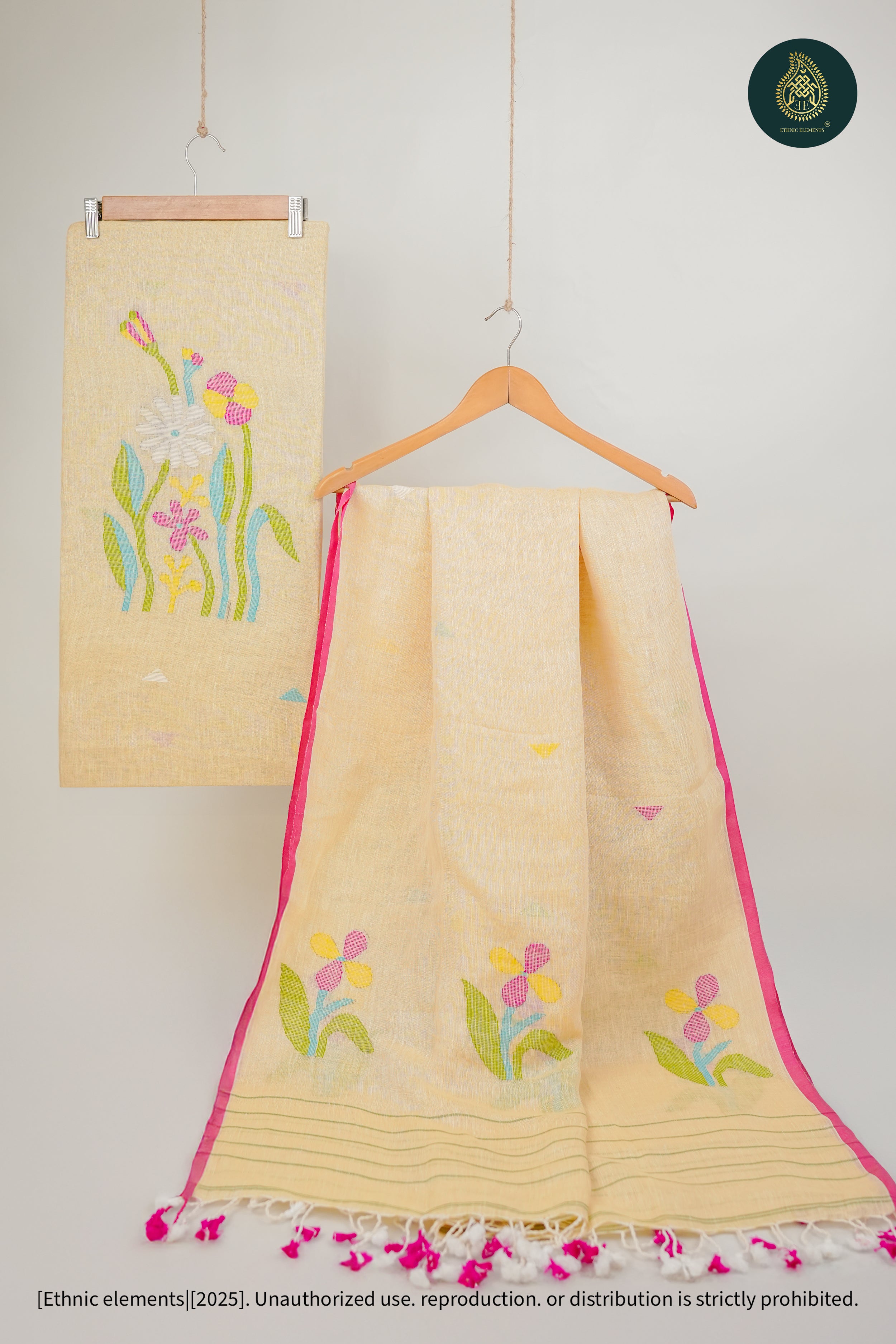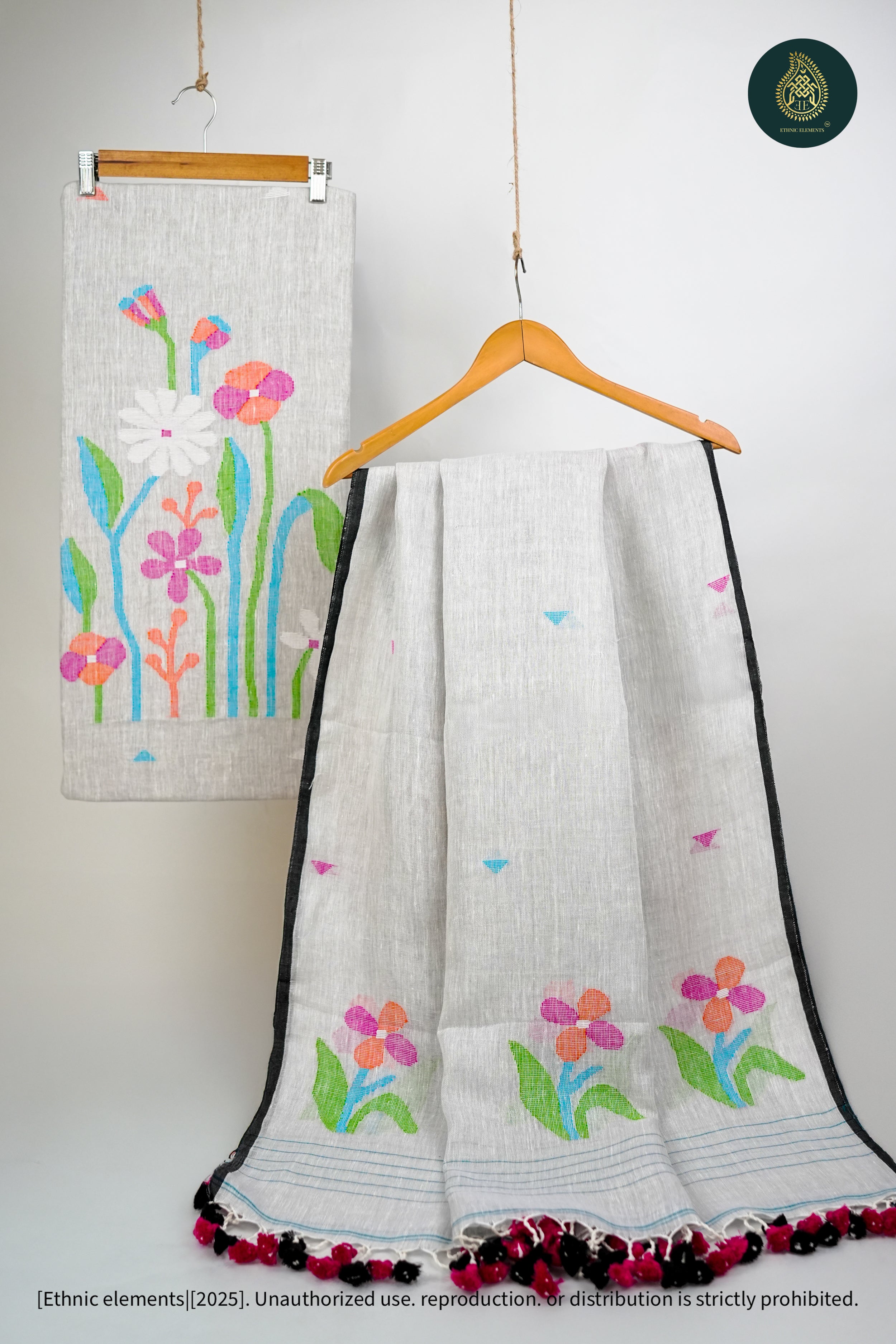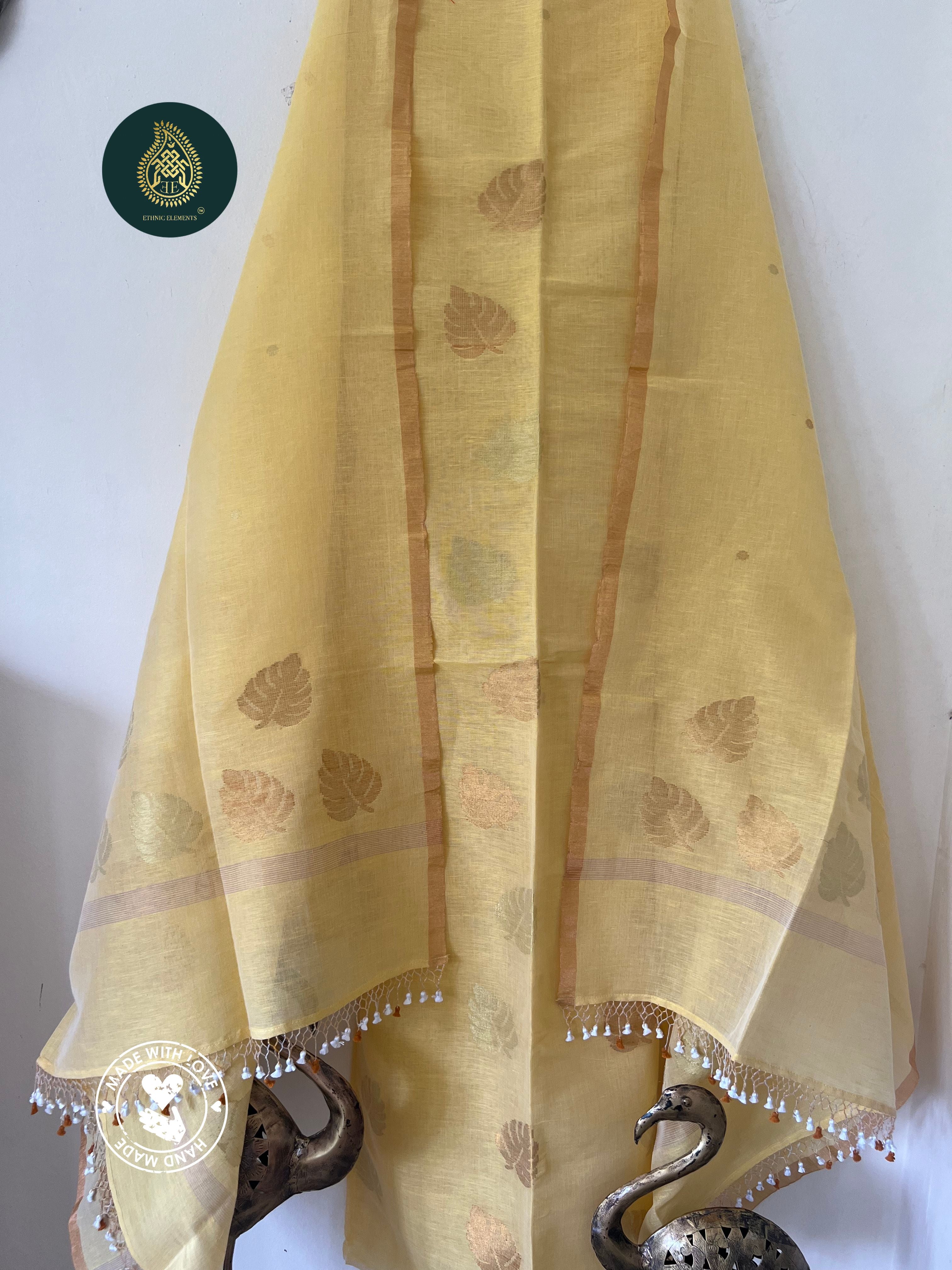 Woven from pure Bengal linen, our Jamdani suits are 100% handmade on traditional wooden looms by skilled artisans. Lightweight, breathable, and timeless — each piece is crafted with care using the finest linen threads, sourced authentically from Bengal’s weaving communities.