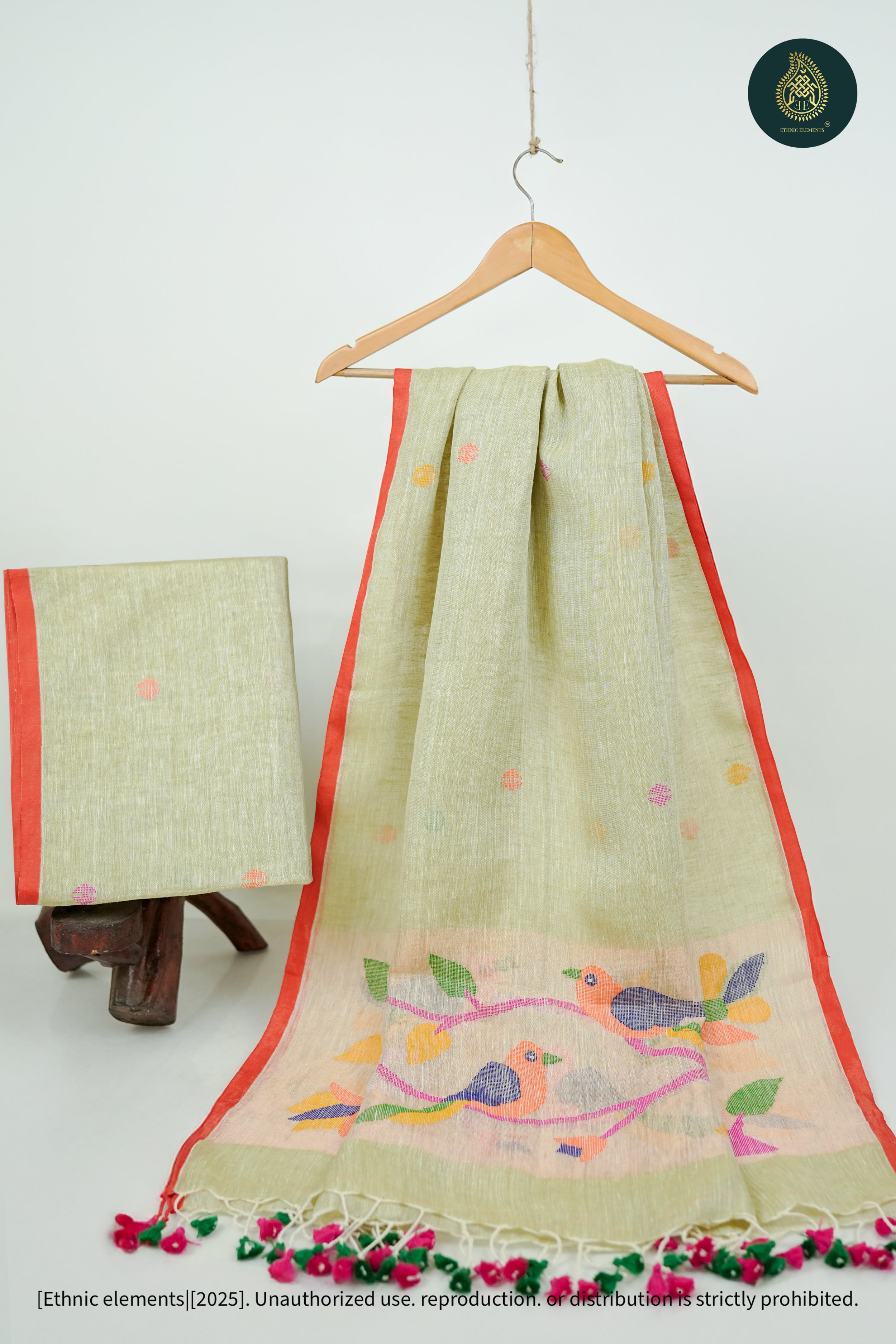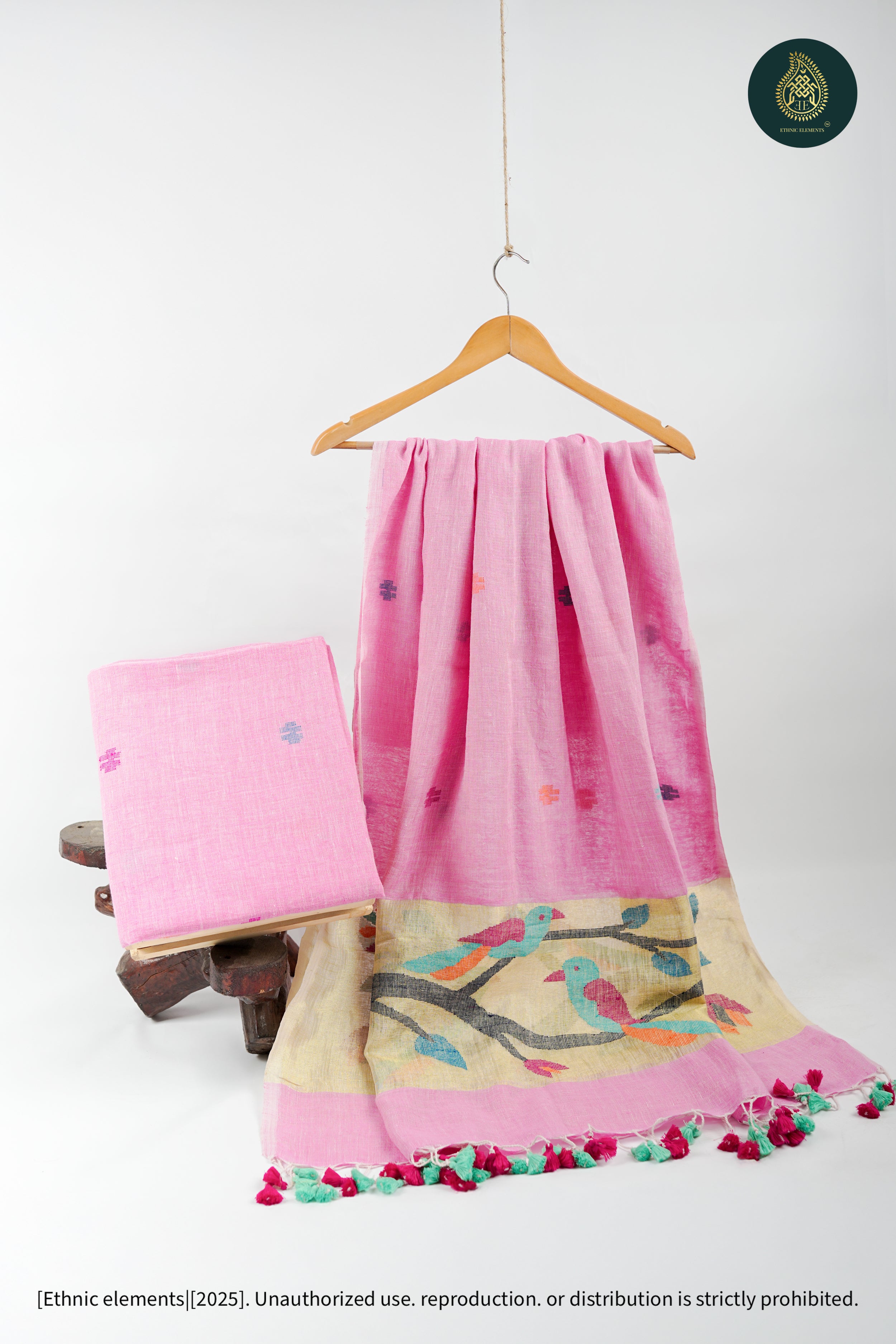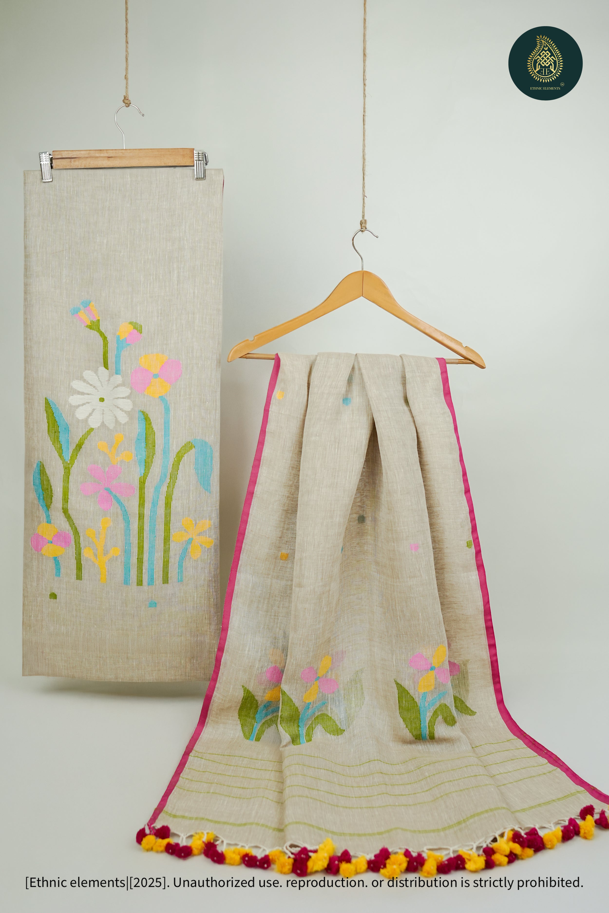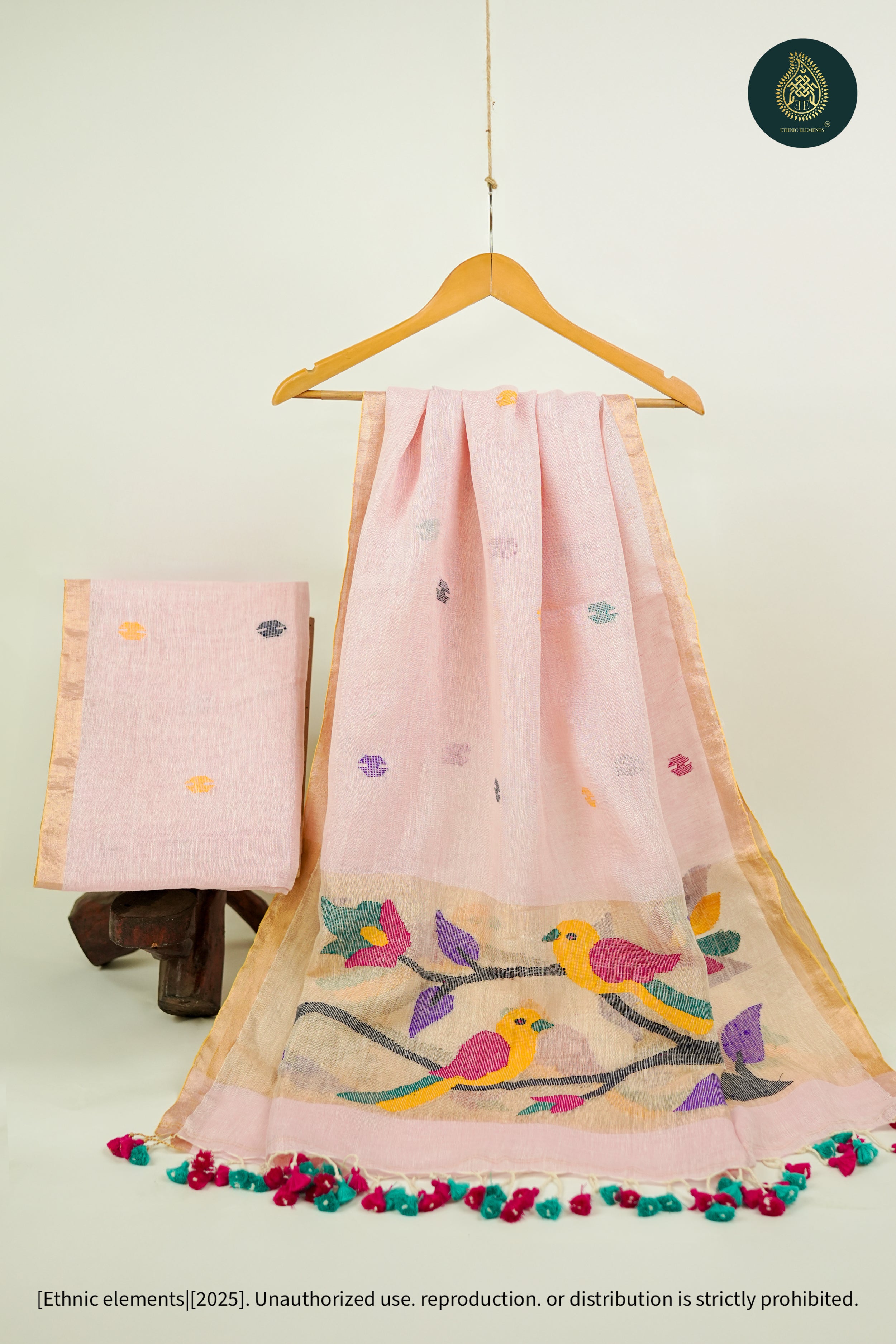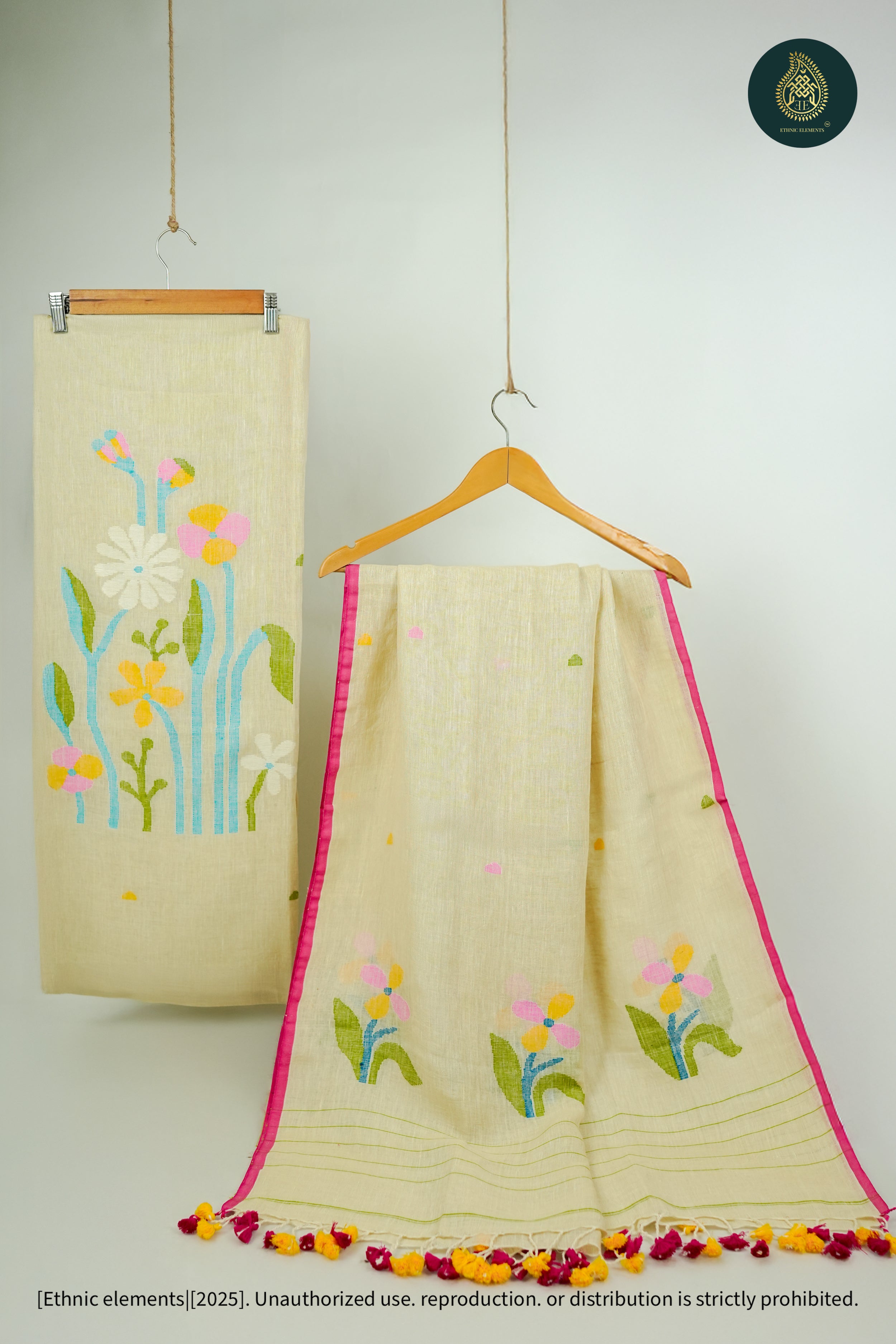 Woven from pure Bengal linen, our Jamdani suits are 100% handmade on traditional wooden looms by skilled artisans. Lightweight, breathable, and timeless — each piece is crafted with care using the finest linen threads, sourced authentically from Bengal’s weaving communities.