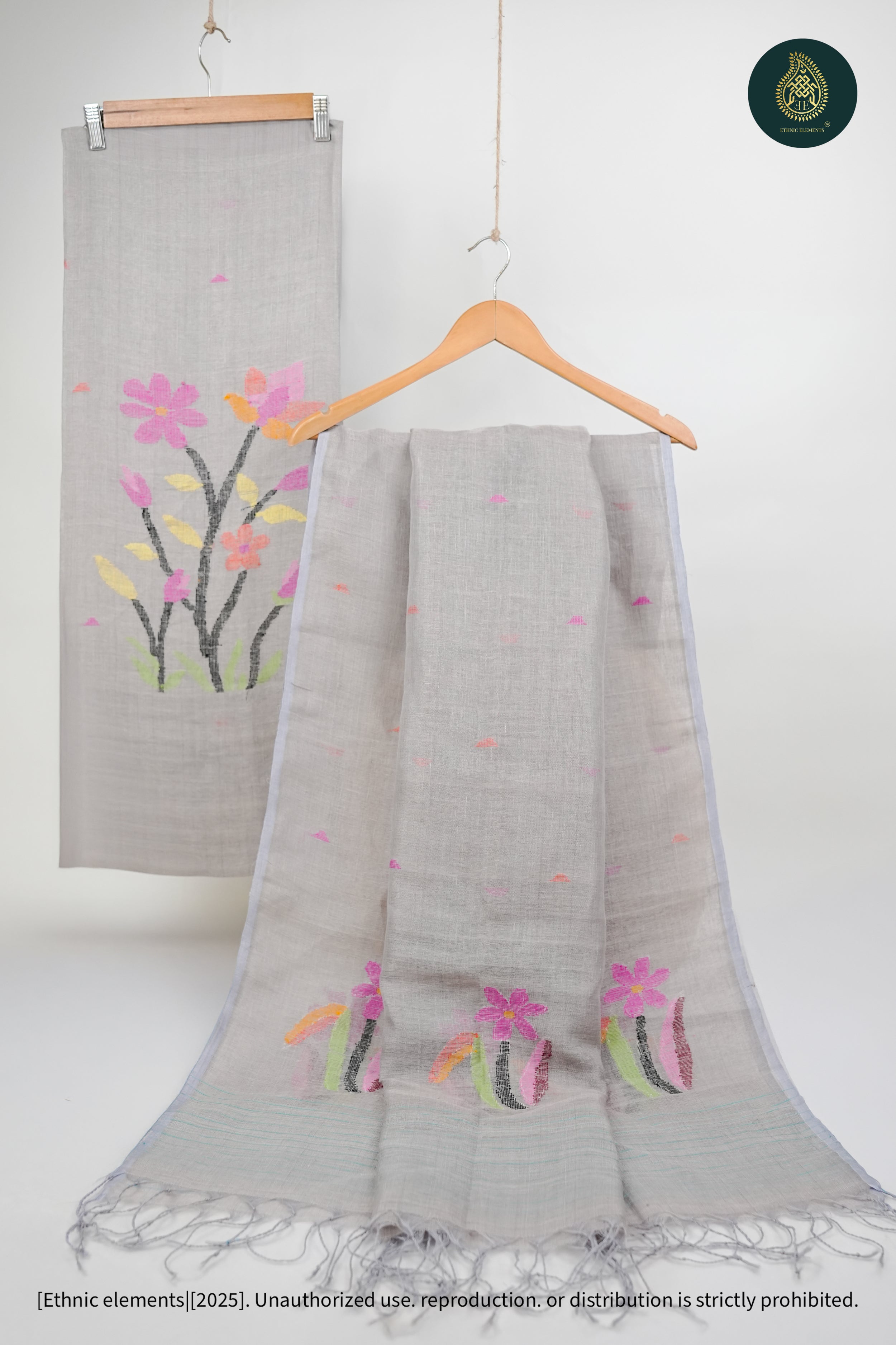 Our Pure Hand Woven Linen Jamdani Kurta and Dupatta Set is a perfect blend of traditional craftsmanship and modern elegance. Crafted from 100% pure Hand Woven linen, this set showcases the delicate art of Jamdani weaving, known for its intricate patterns and timeless beauty. The set includes an unstitched kurta and a matching dupatta, offering versatility and style for a variety of occasions.
