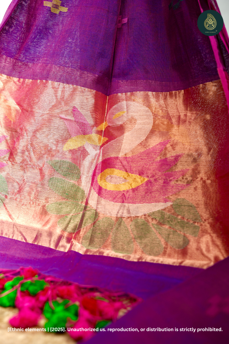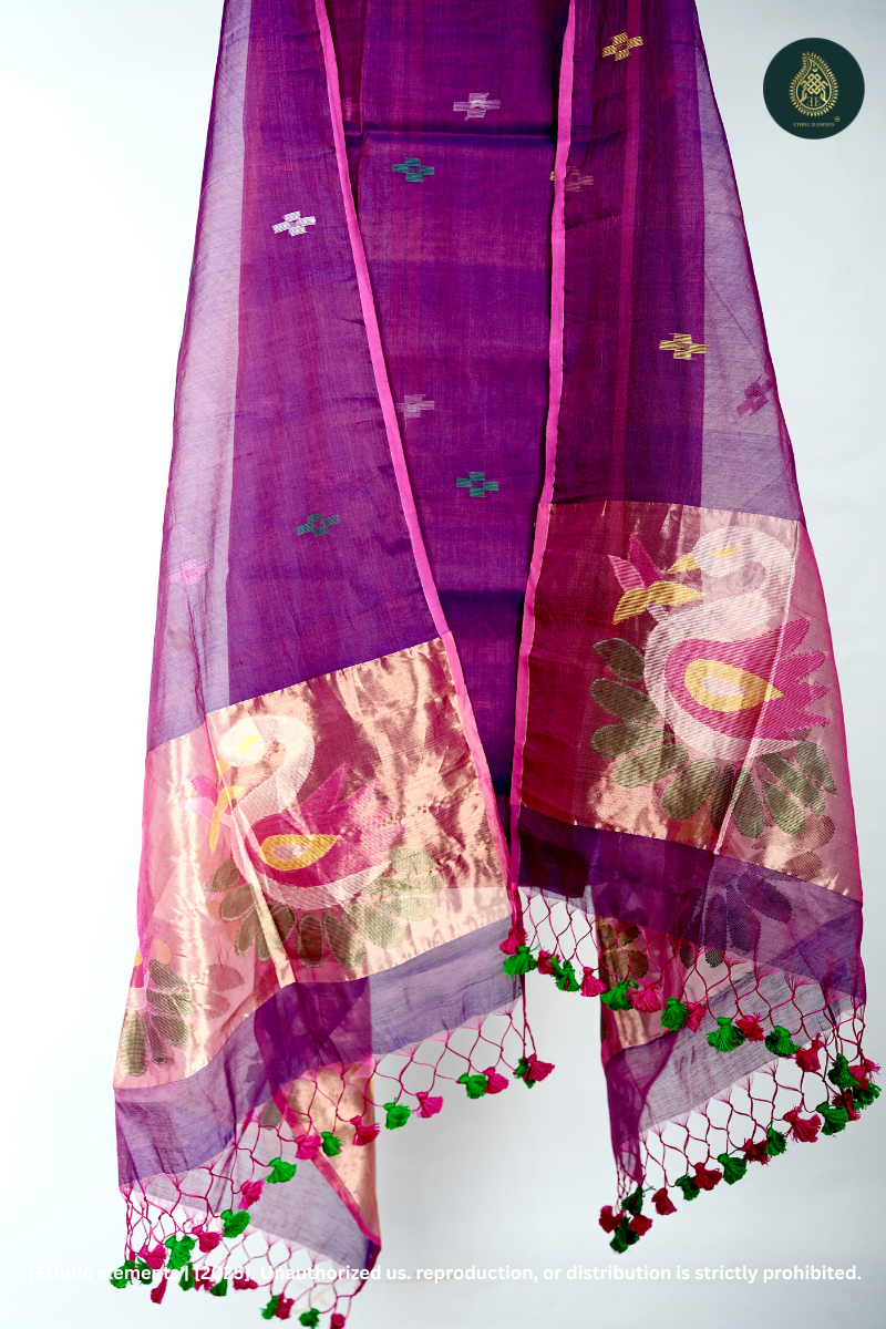 Paithani Jamdani Muslin Suit Set - Purple scarf - 2pc
