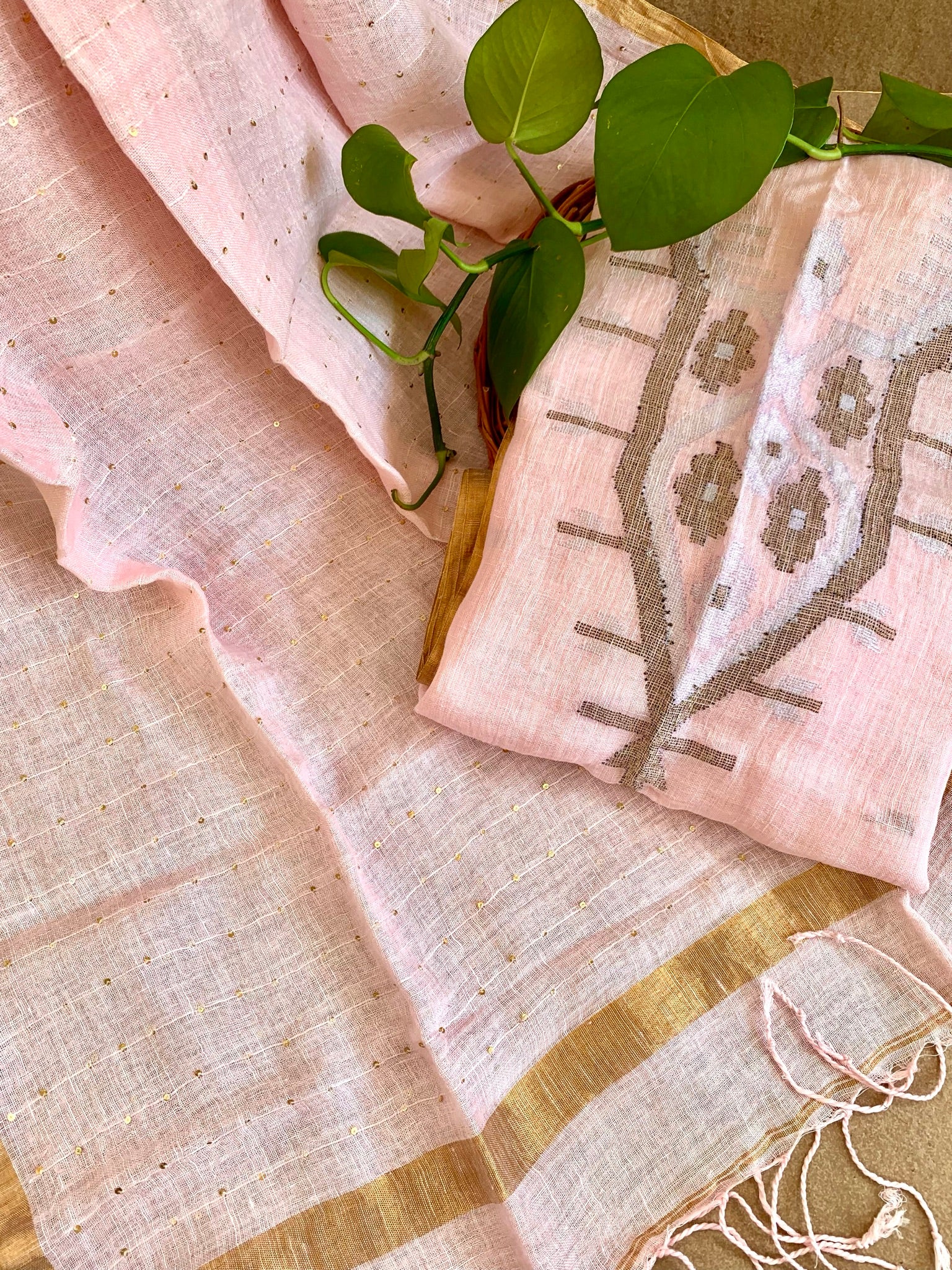 Linen Jamdani Suit Peach