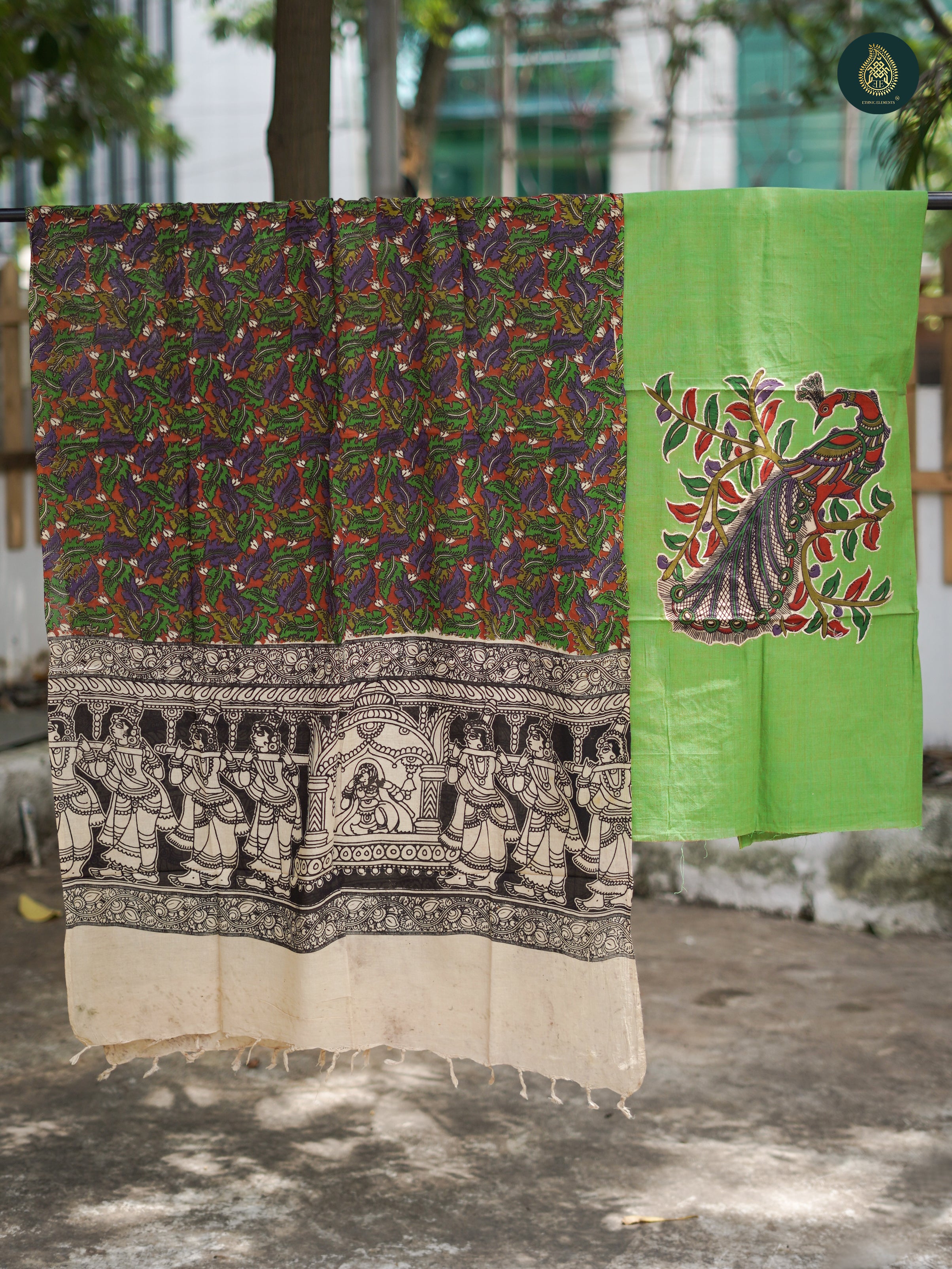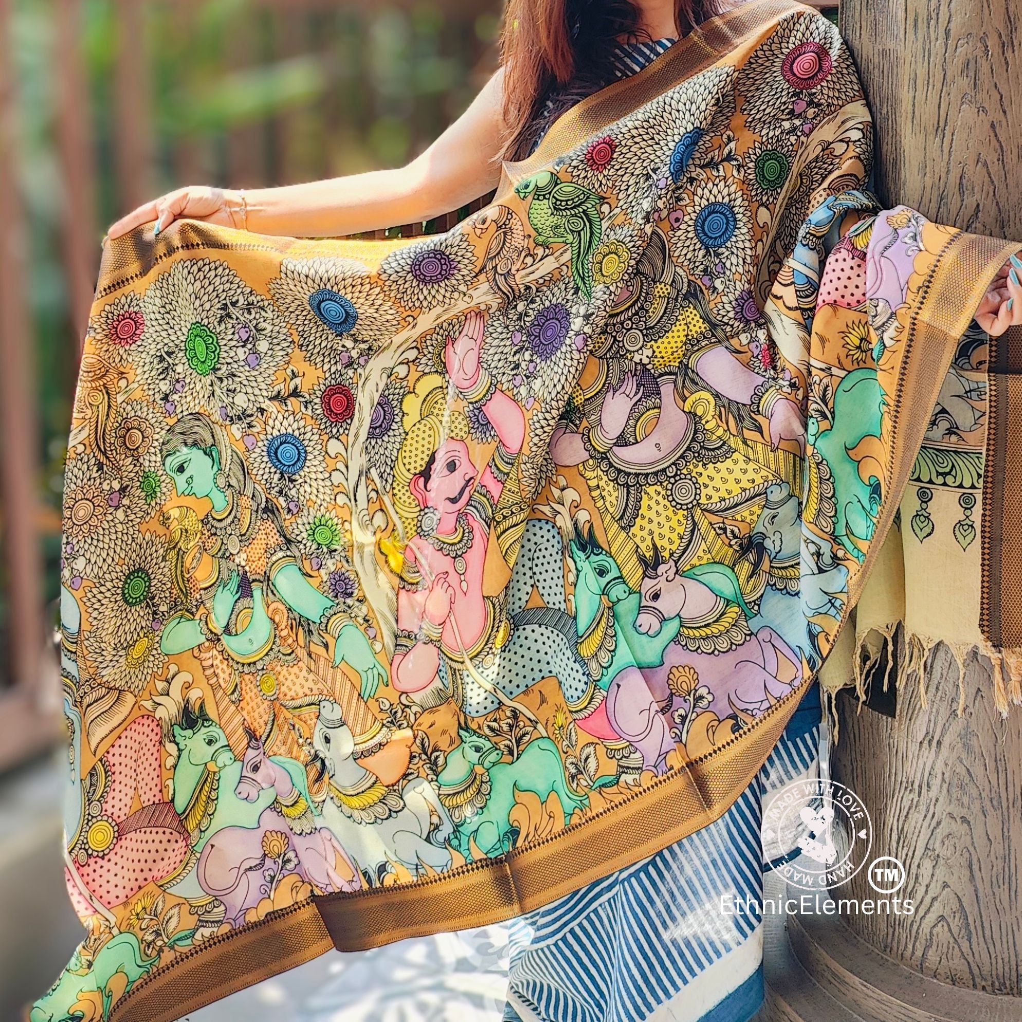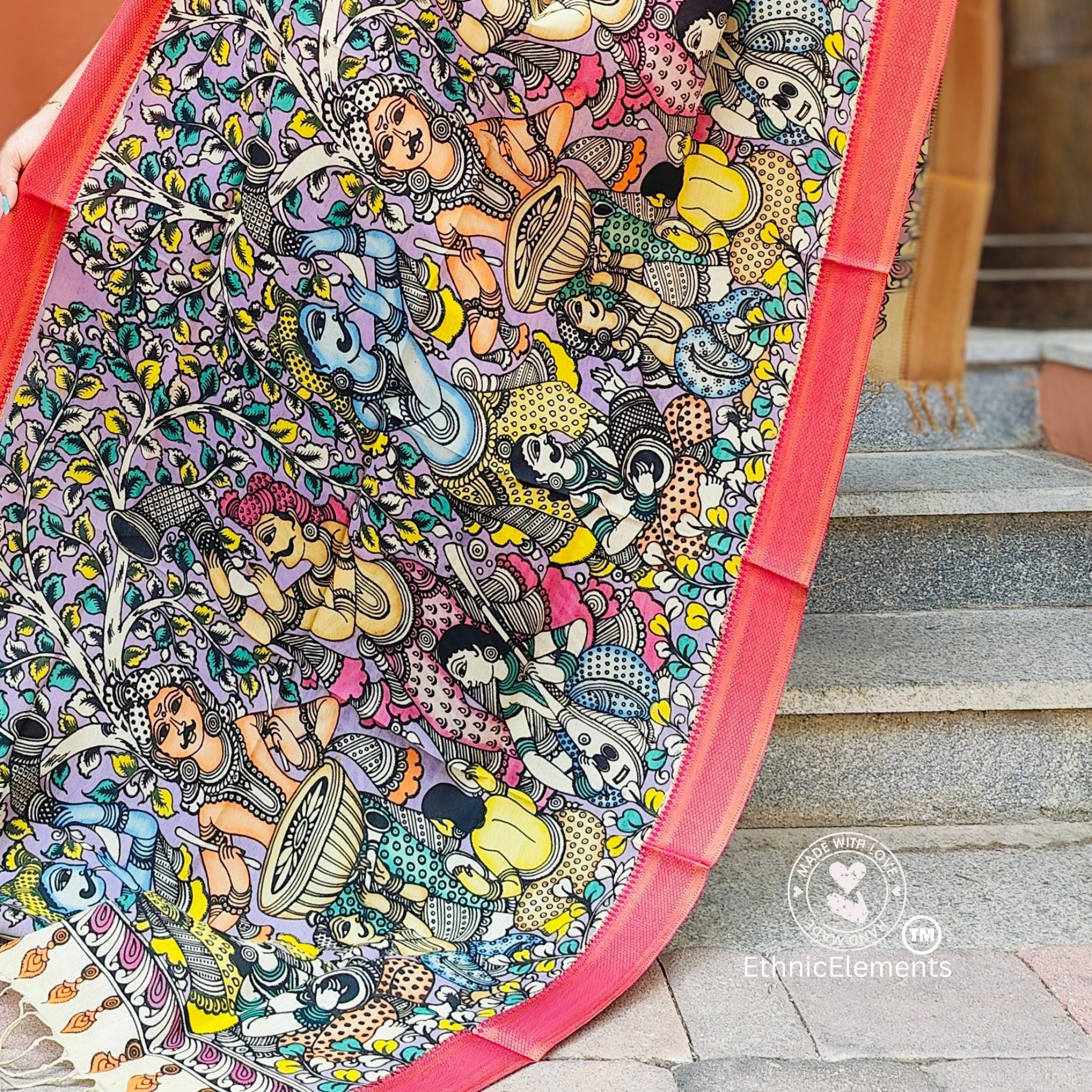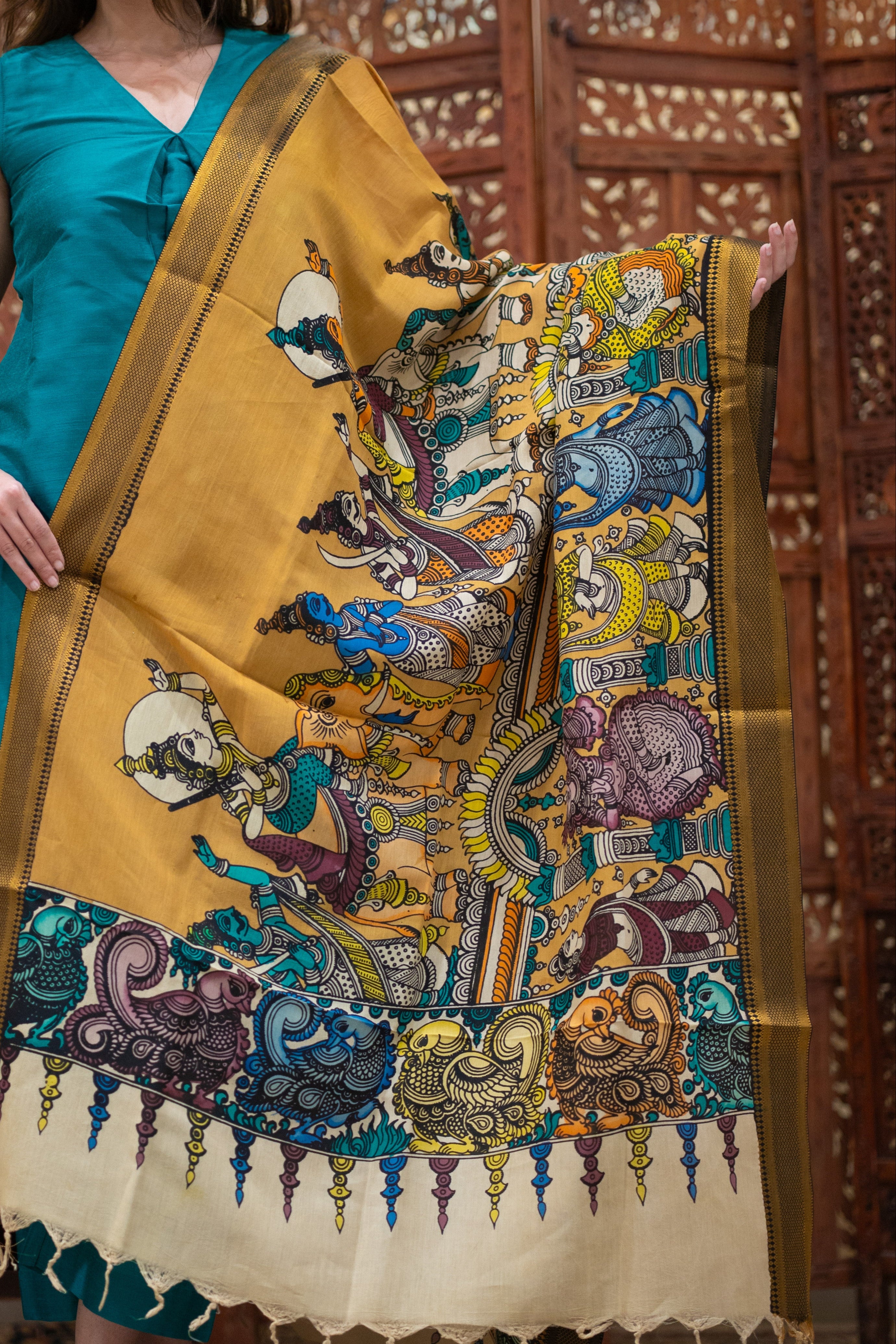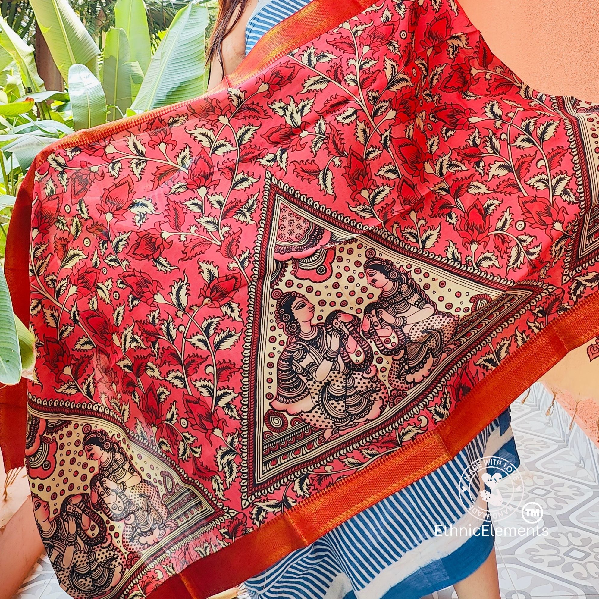 Original hand-painted Kalamkari Dupattas in Banglore Silk.