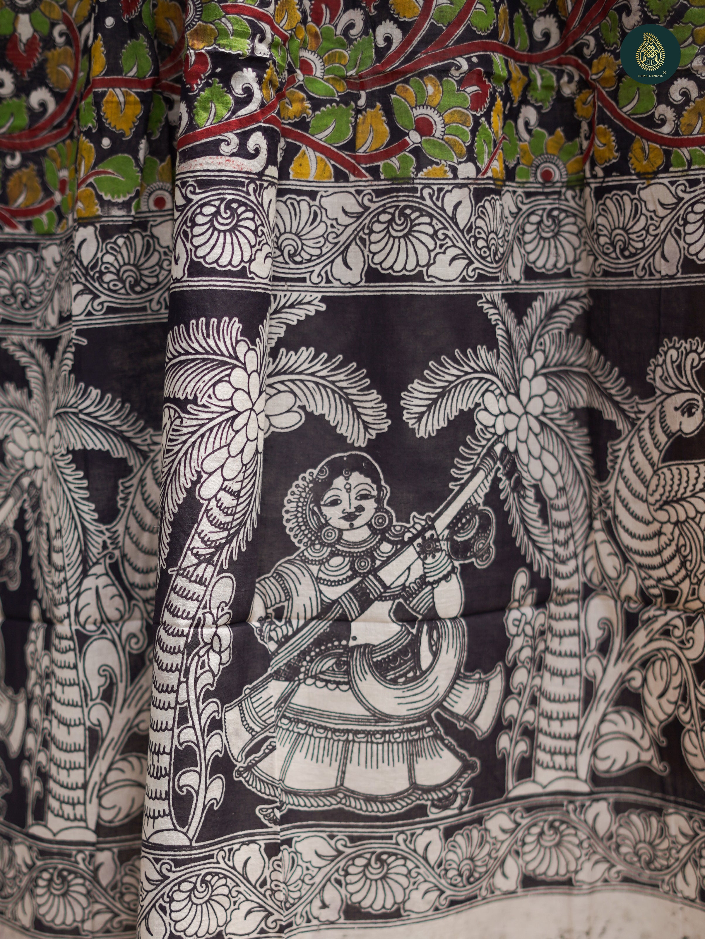 Kalamkari Handpainted Silk Dupatta - Theme 20