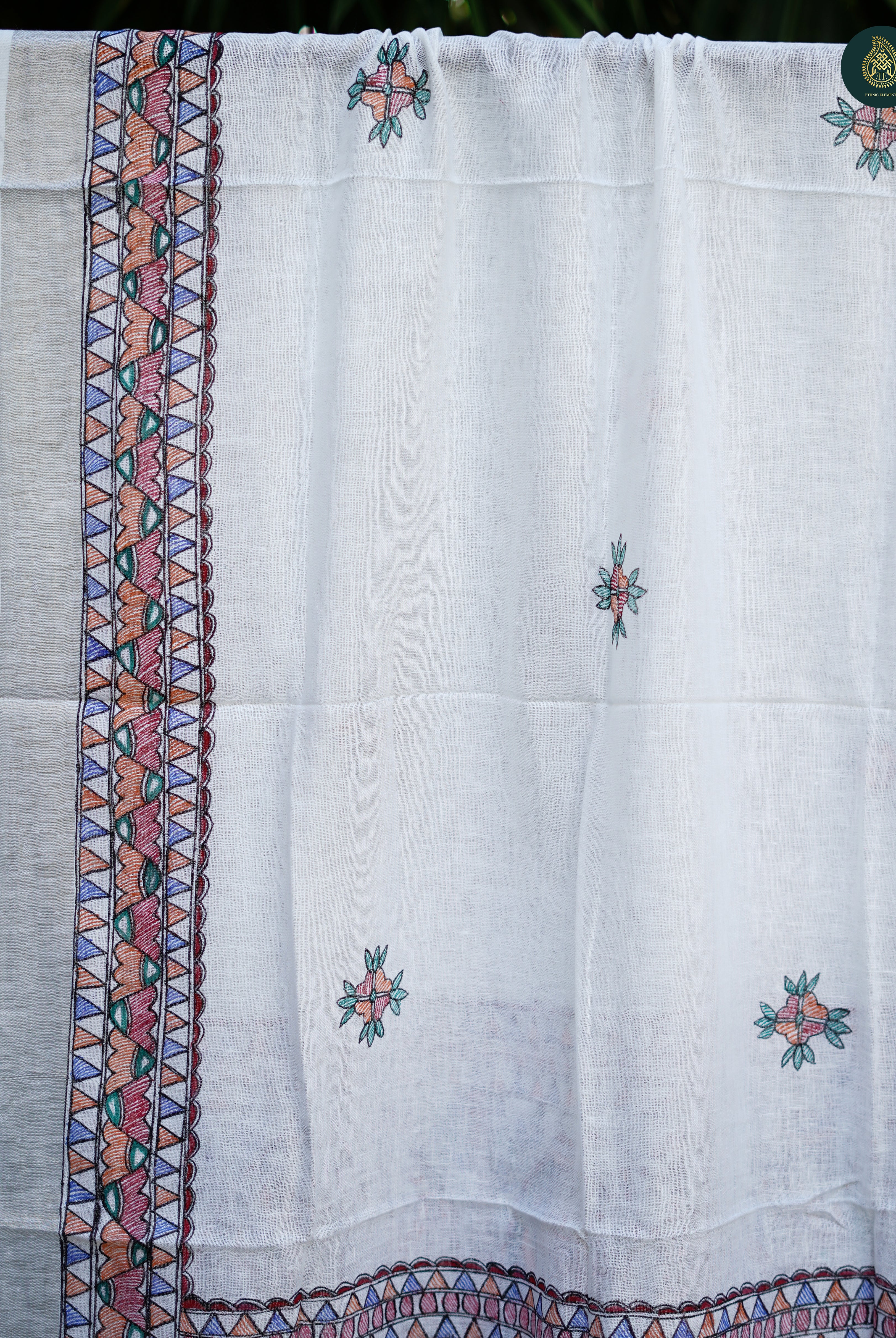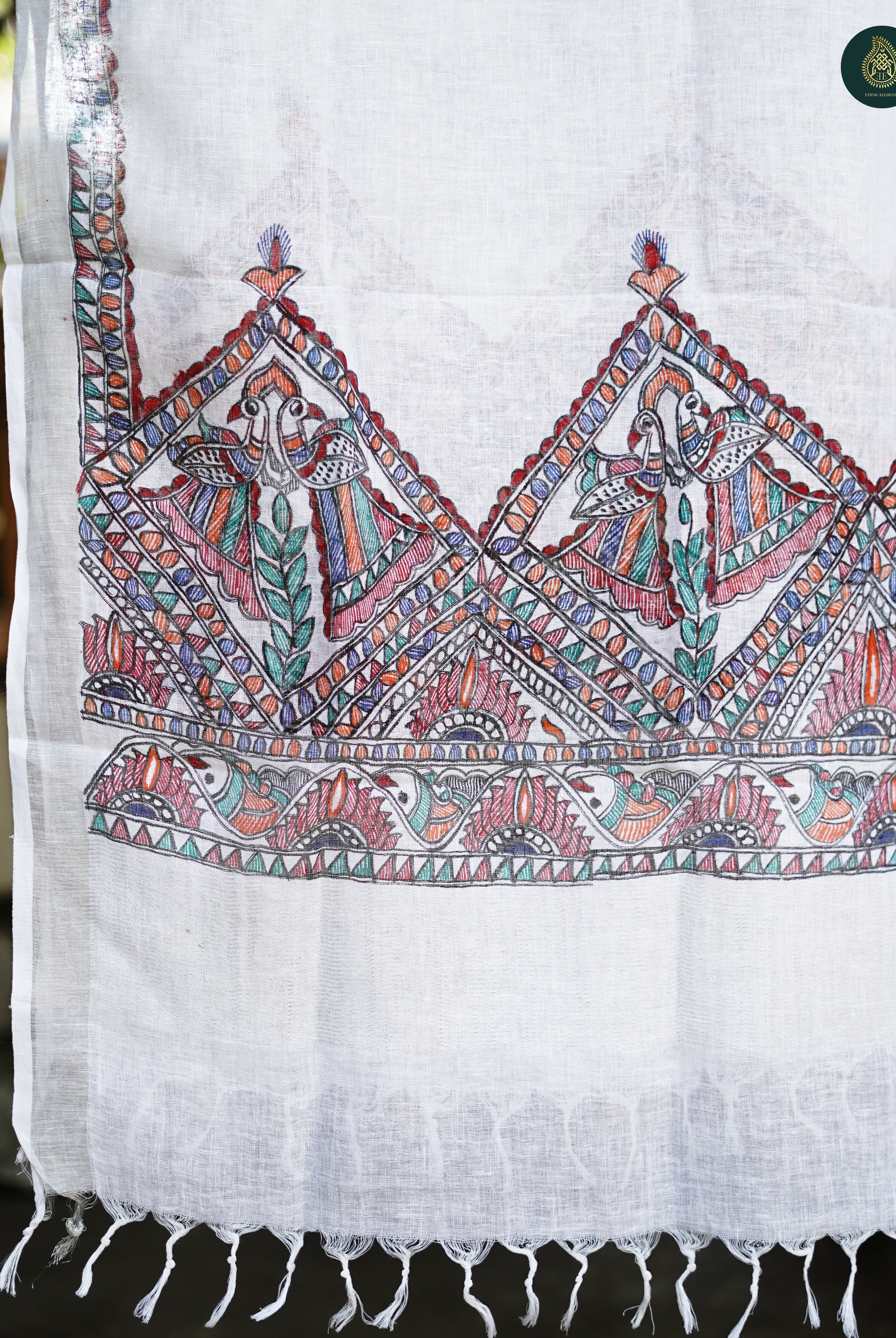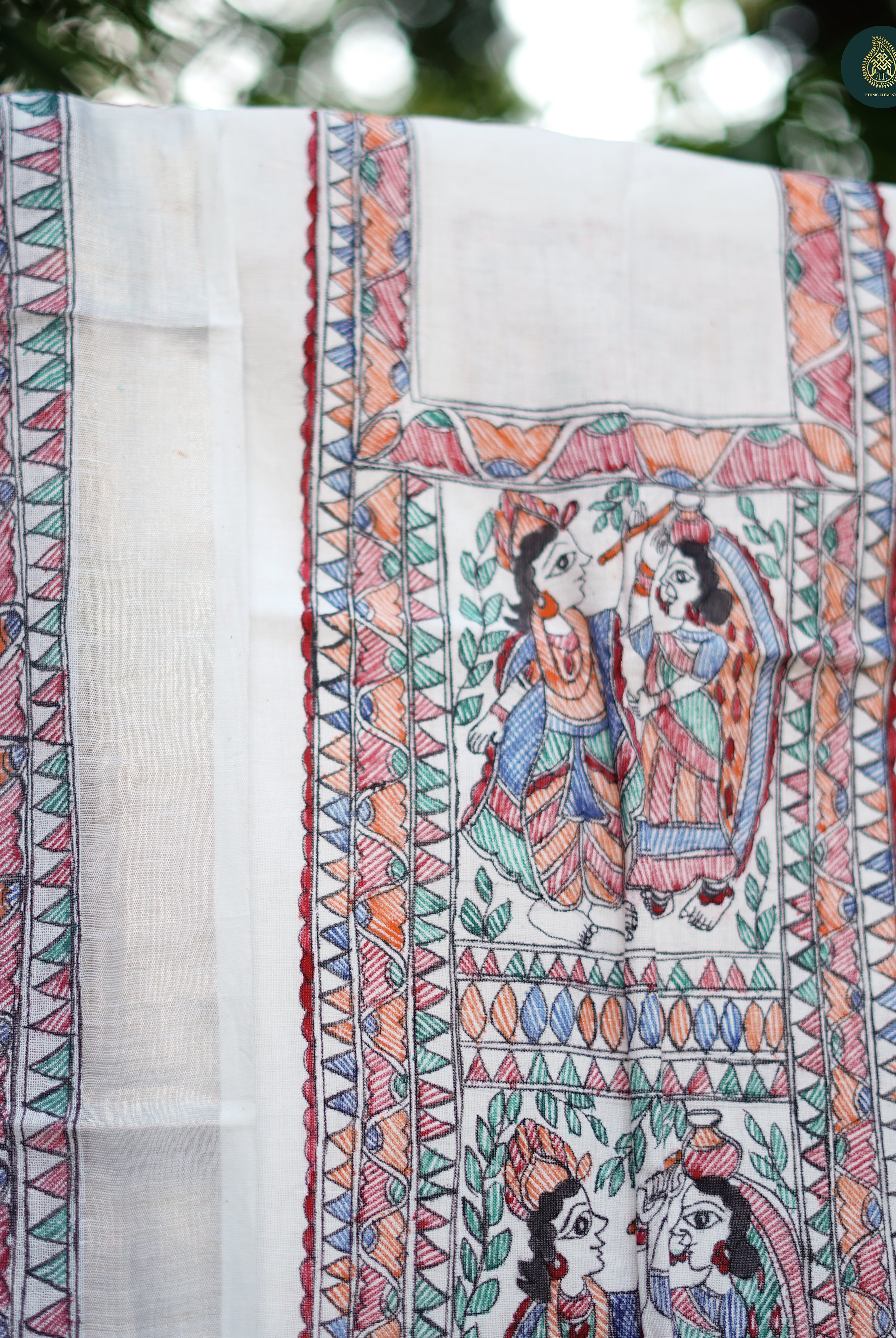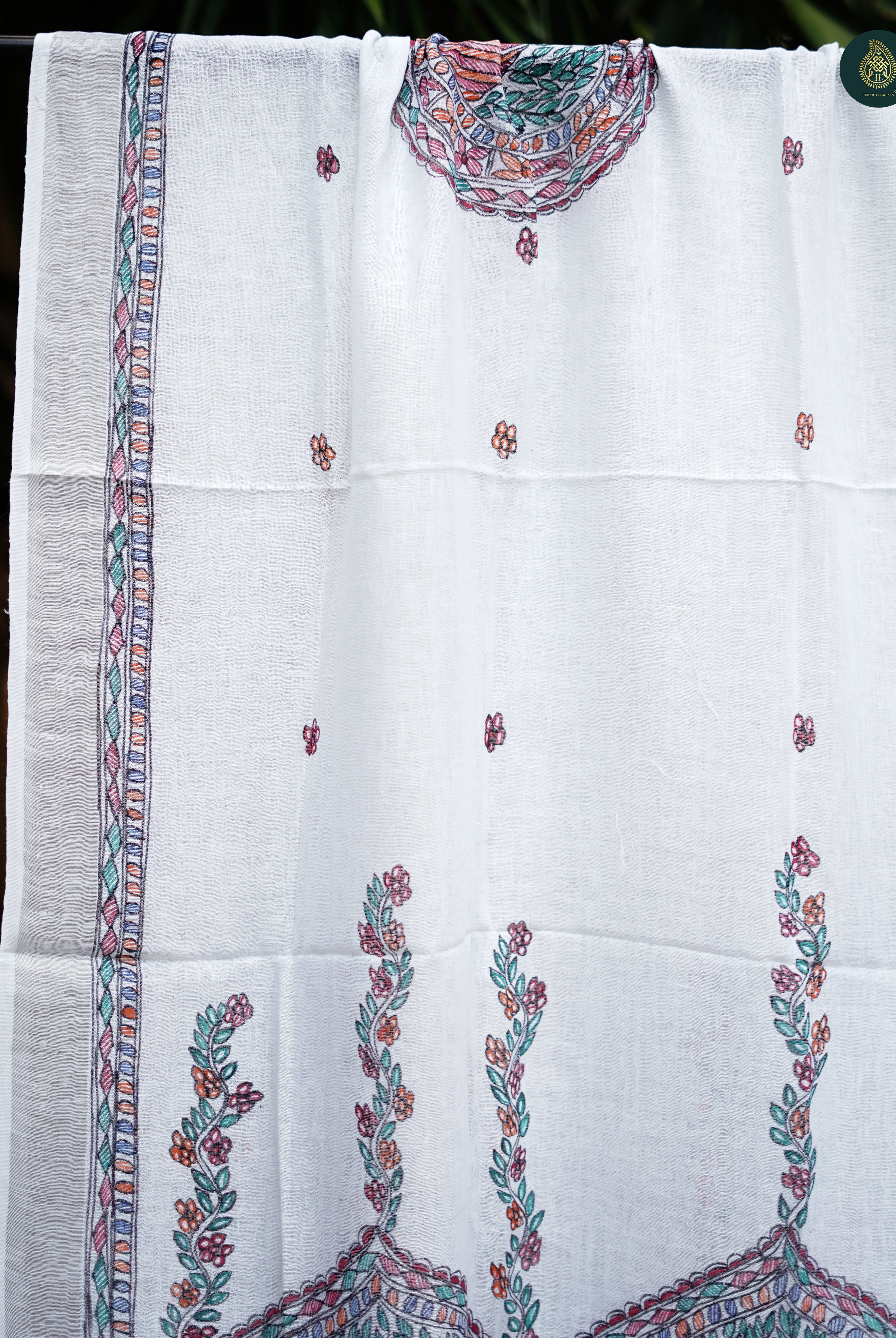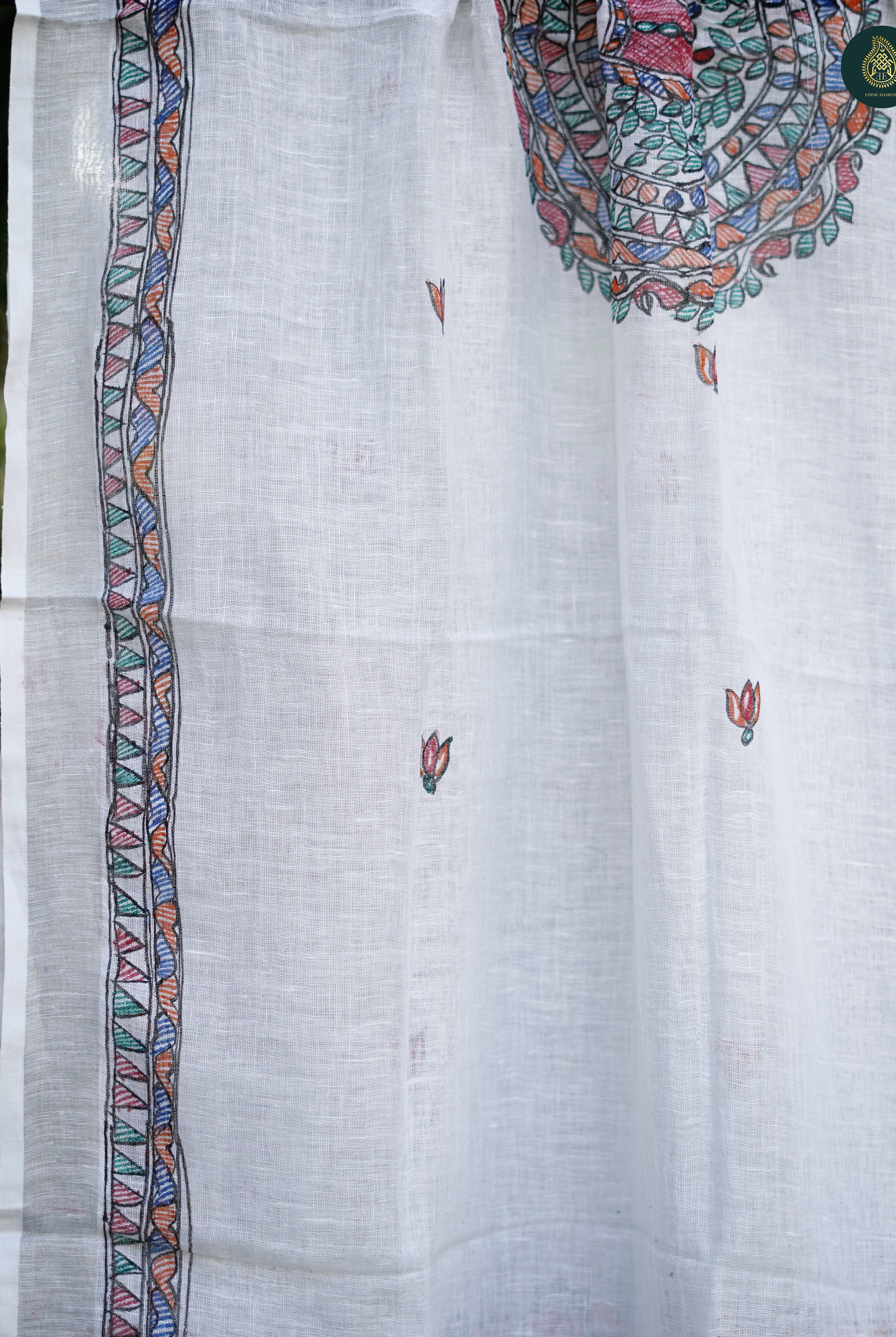 Authentic Original Hand-Painted Madhubani Suit Sets made from pure woven fabrics. Madhubani Art is a type of folk-art form. Each suit consists of line drawings filled with bright colors and contrasts or patterns. Only natural dyes and pigments are used for fabric color and painting.