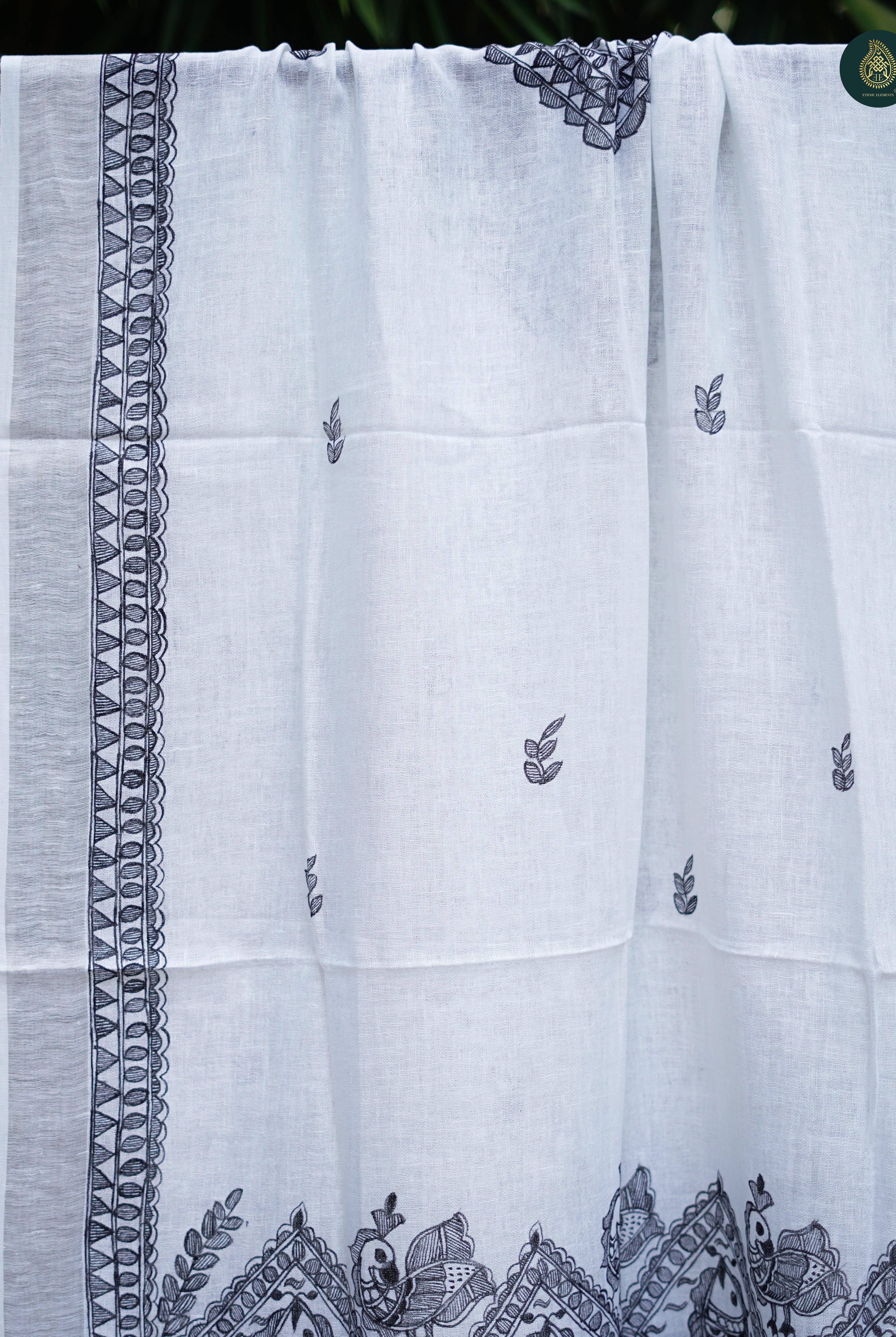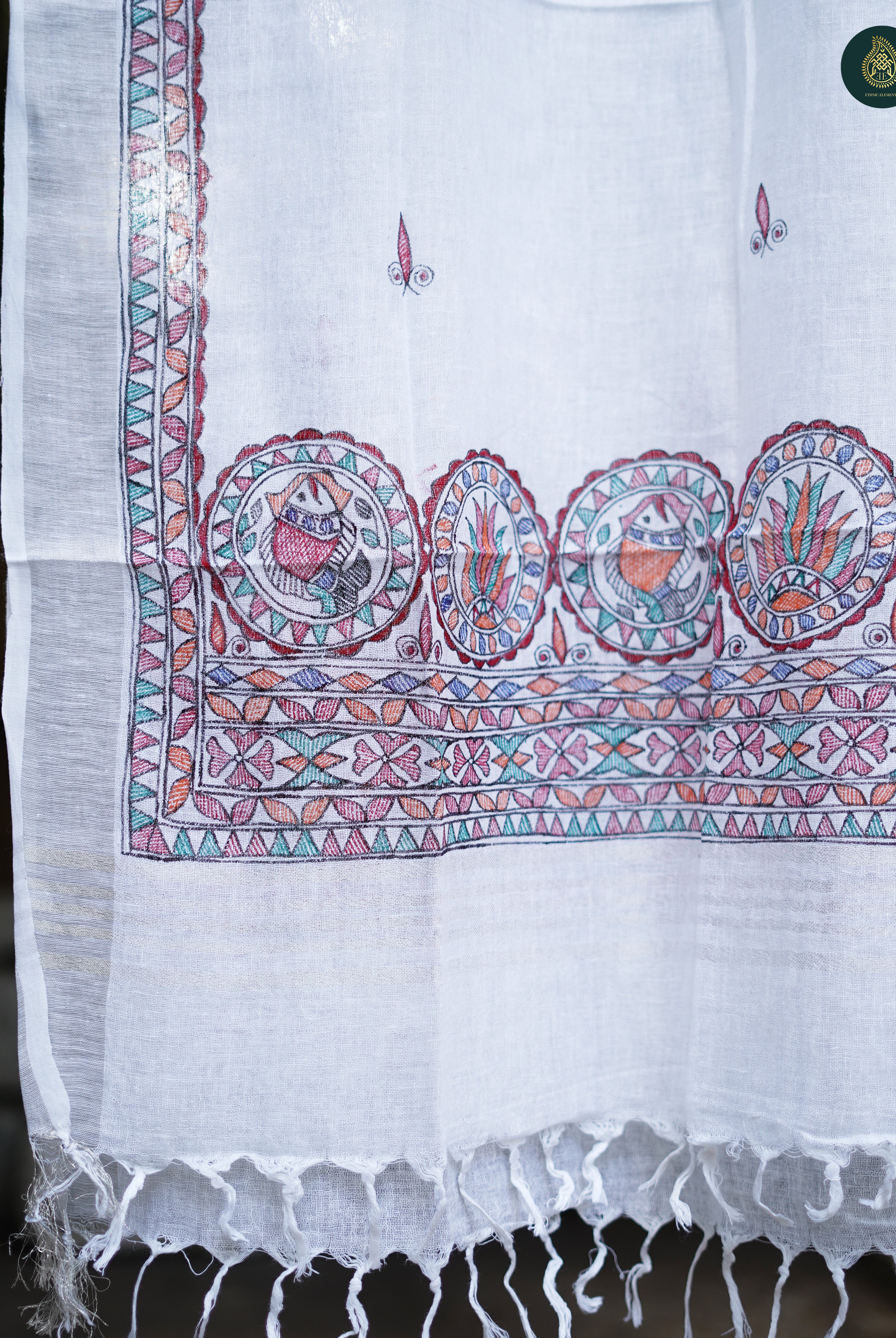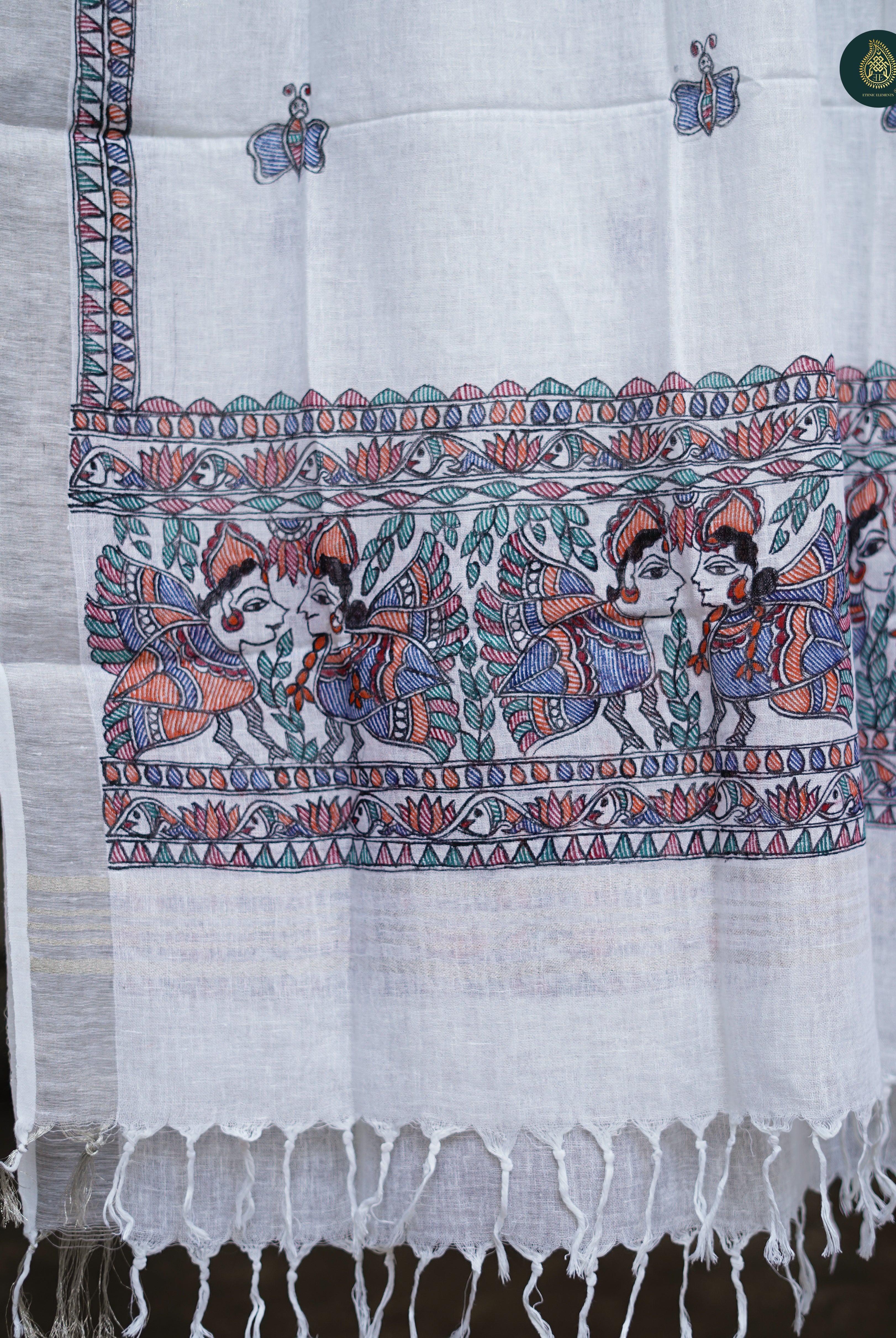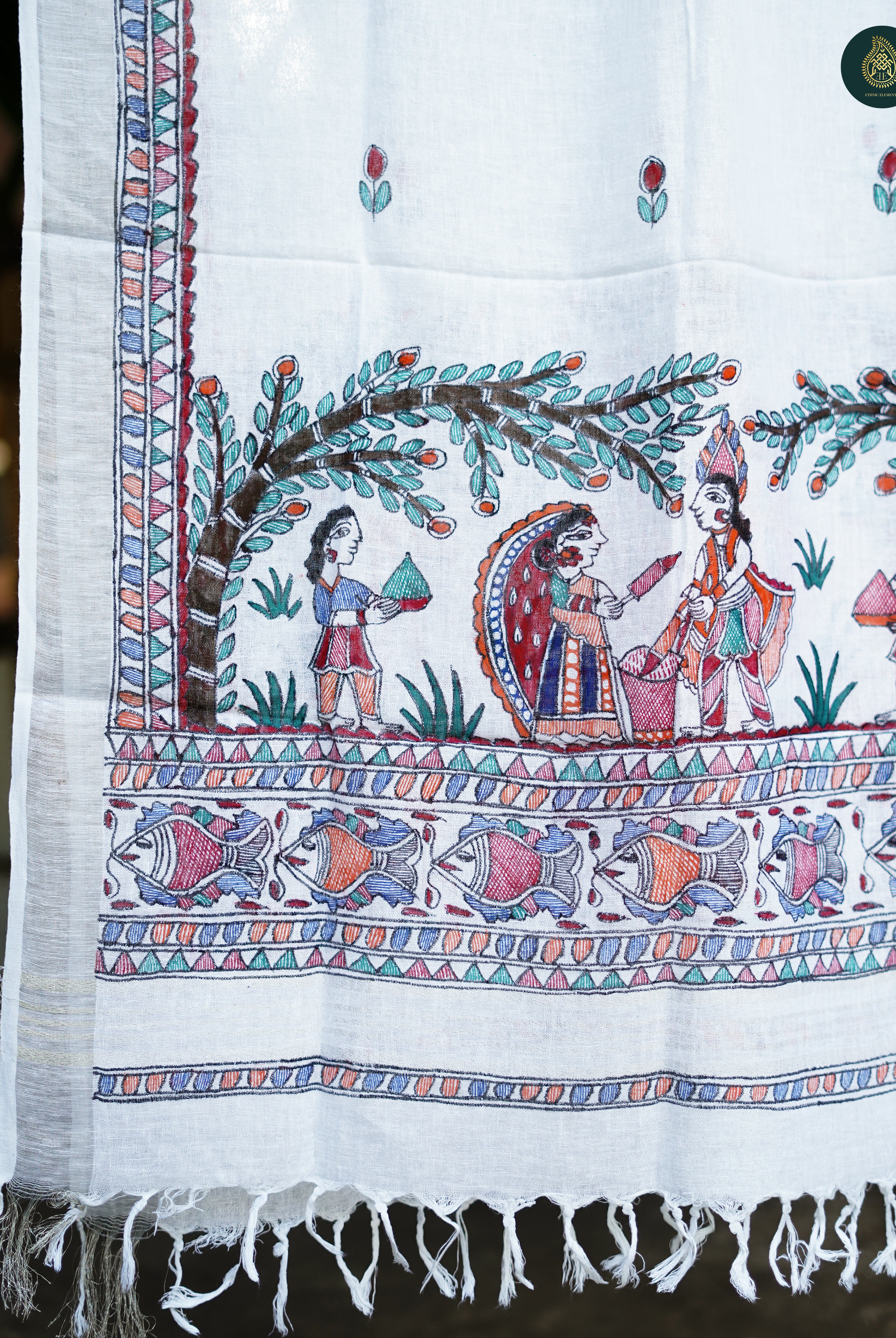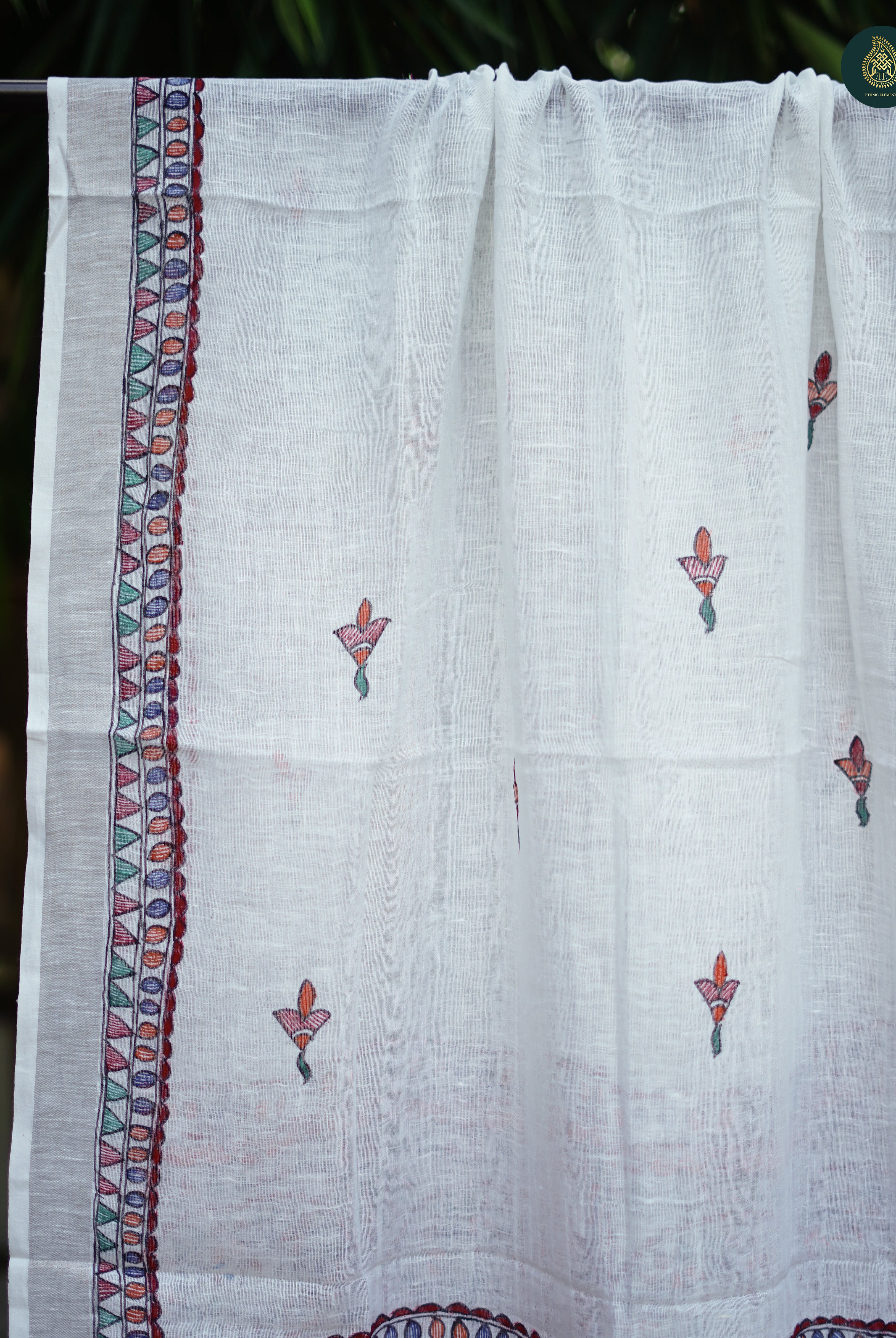 Authentic Original Hand-Painted Madhubani Suit Sets made from pure woven fabrics. Madhubani Art is a type of folk-art form. Each suit consists of line drawings filled with bright colors and contrasts or patterns. Only natural dyes and pigments are used for fabric color and painting.