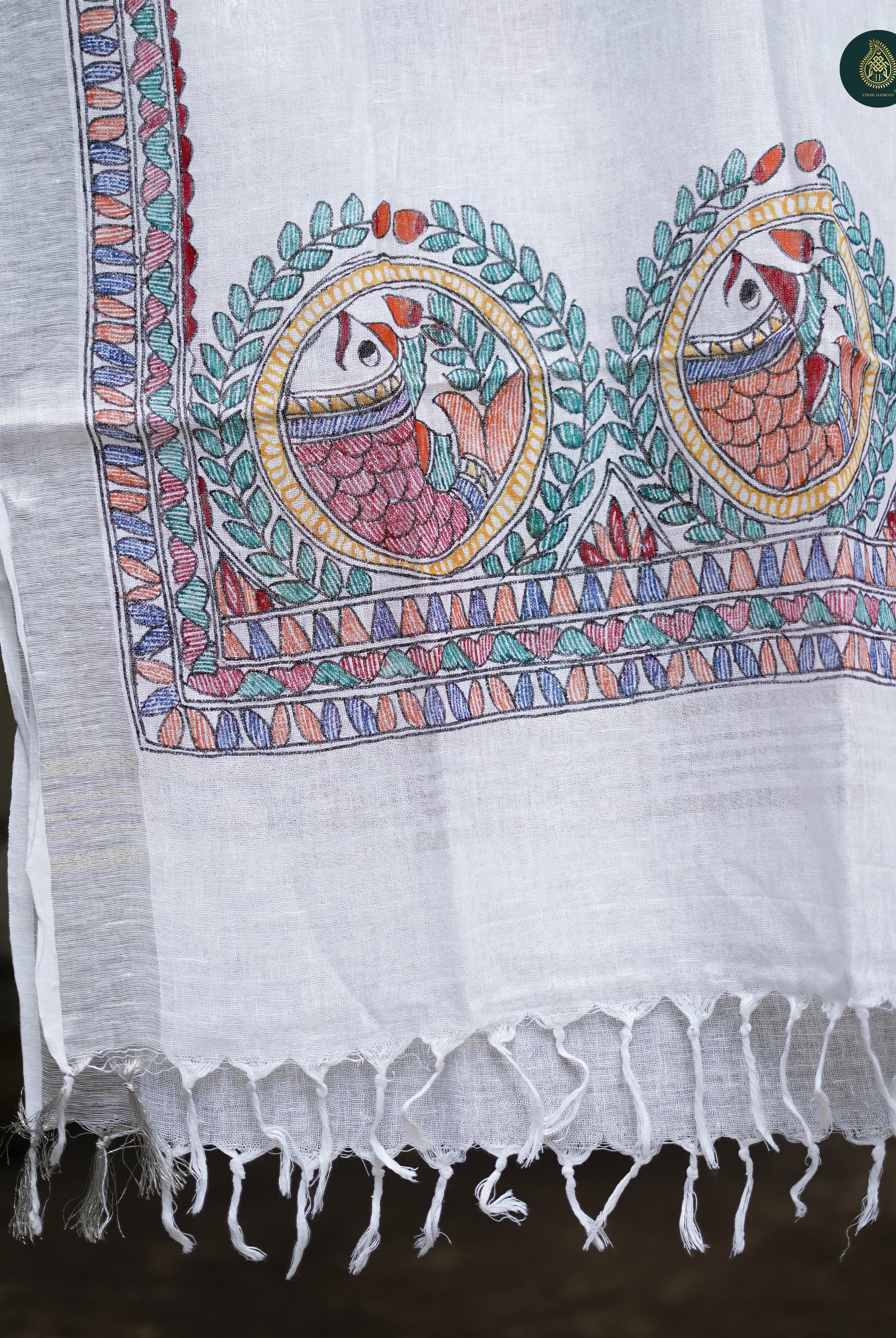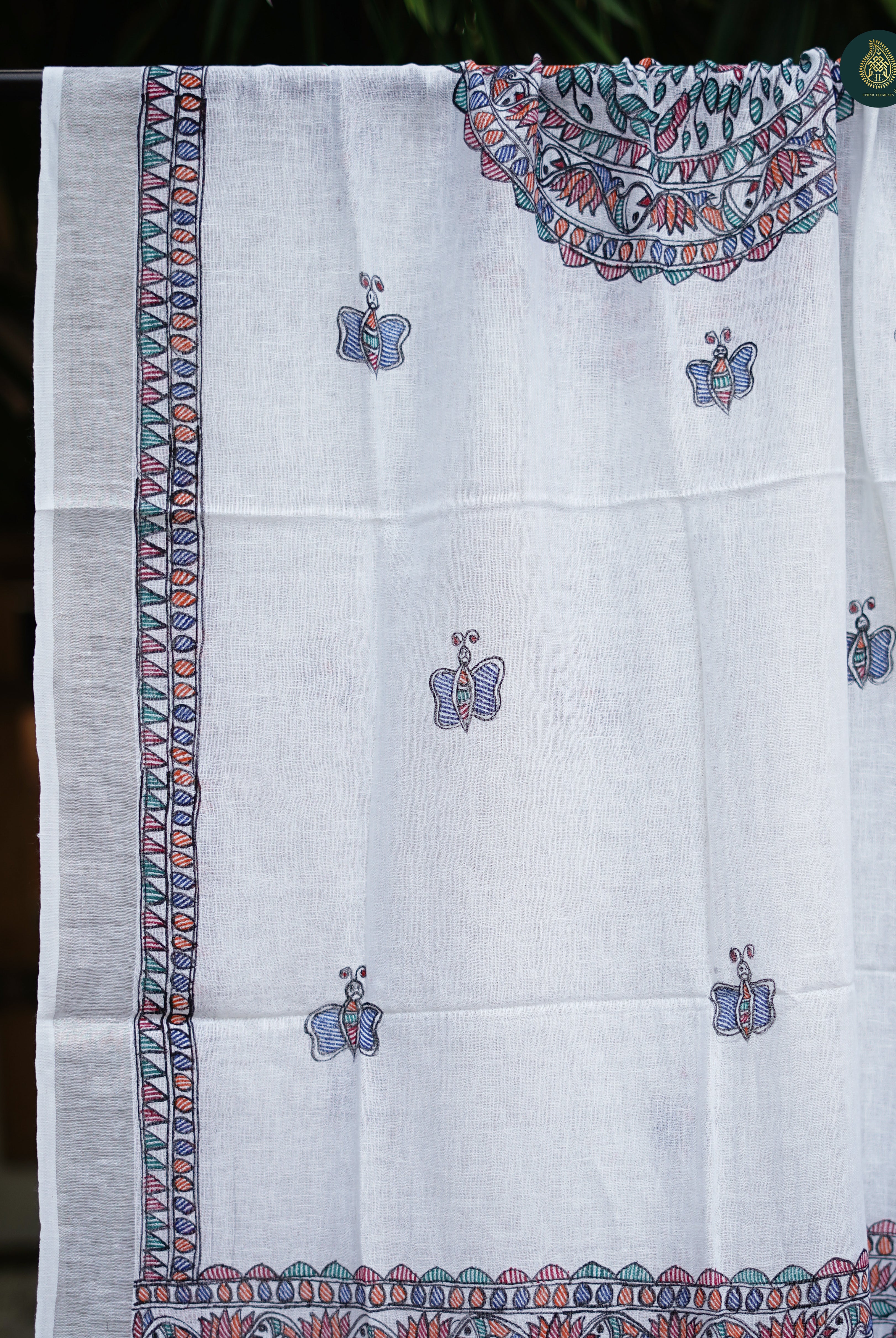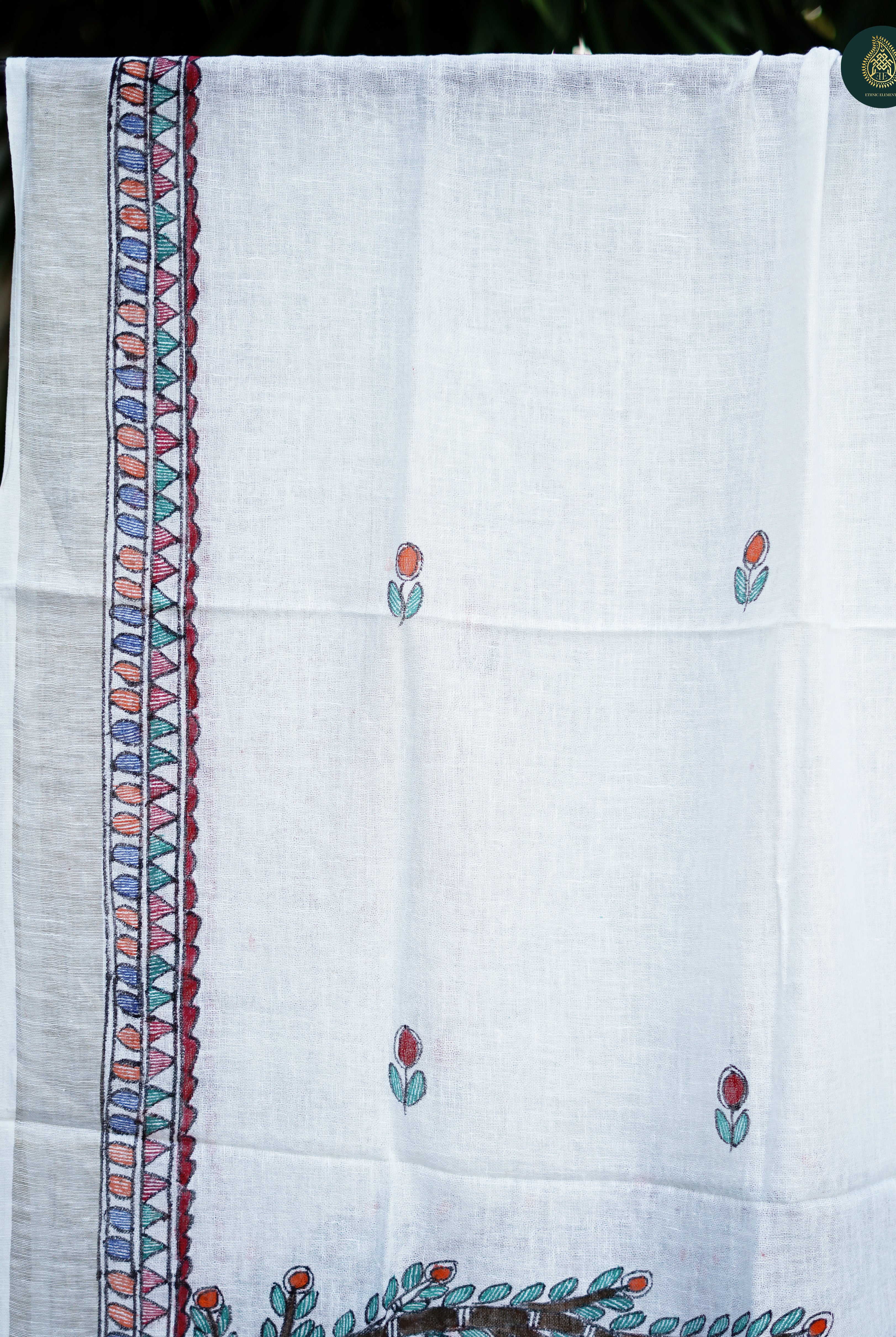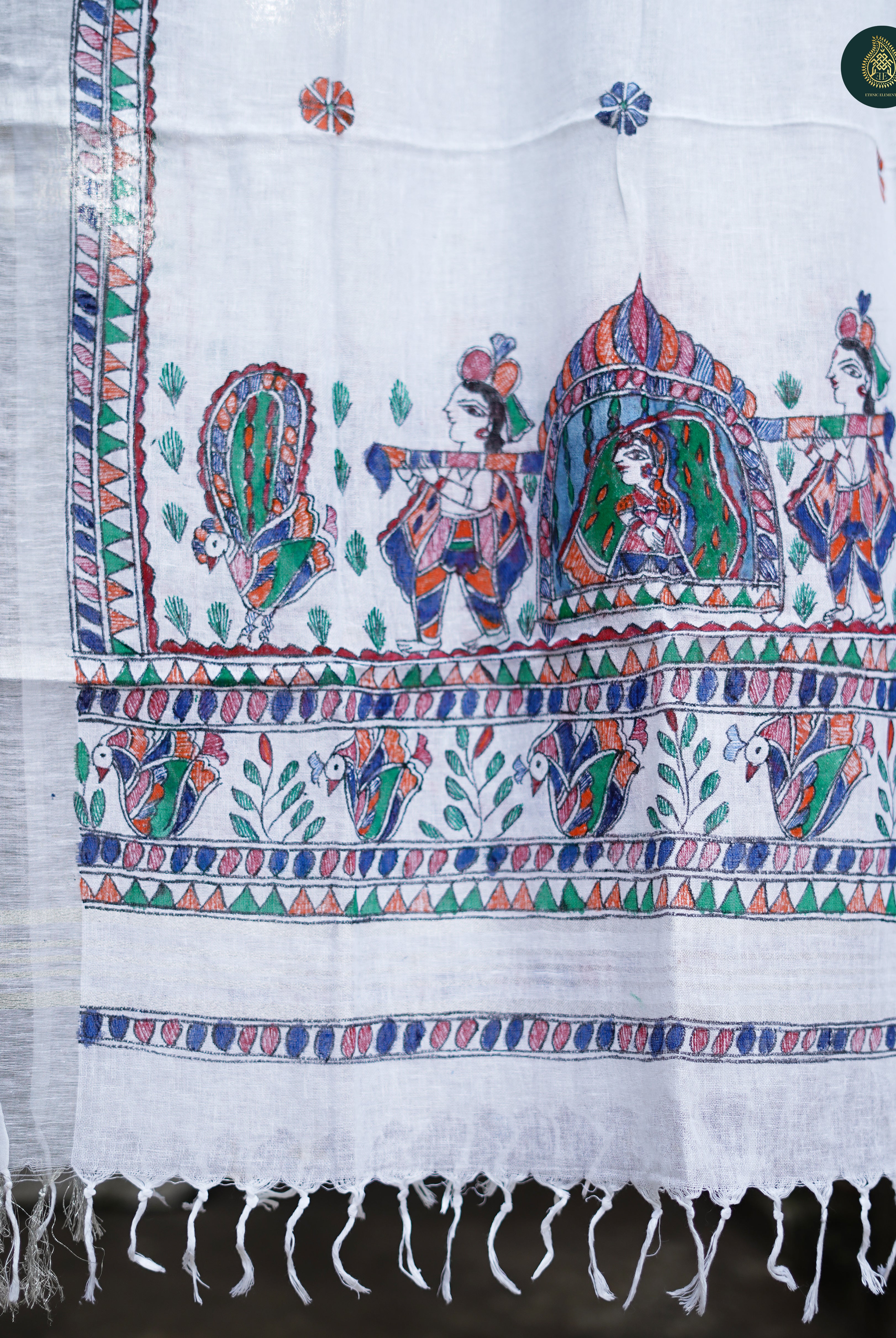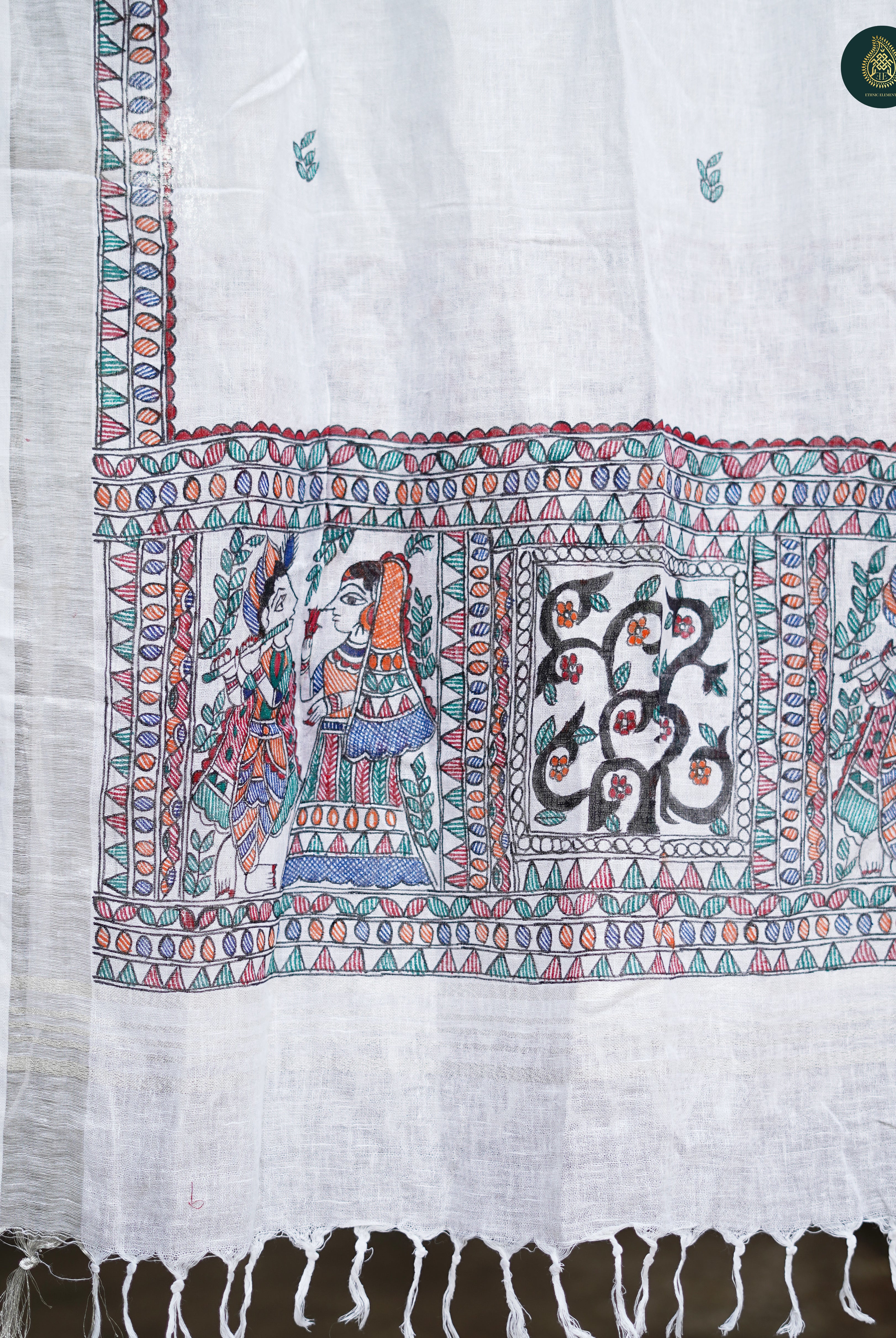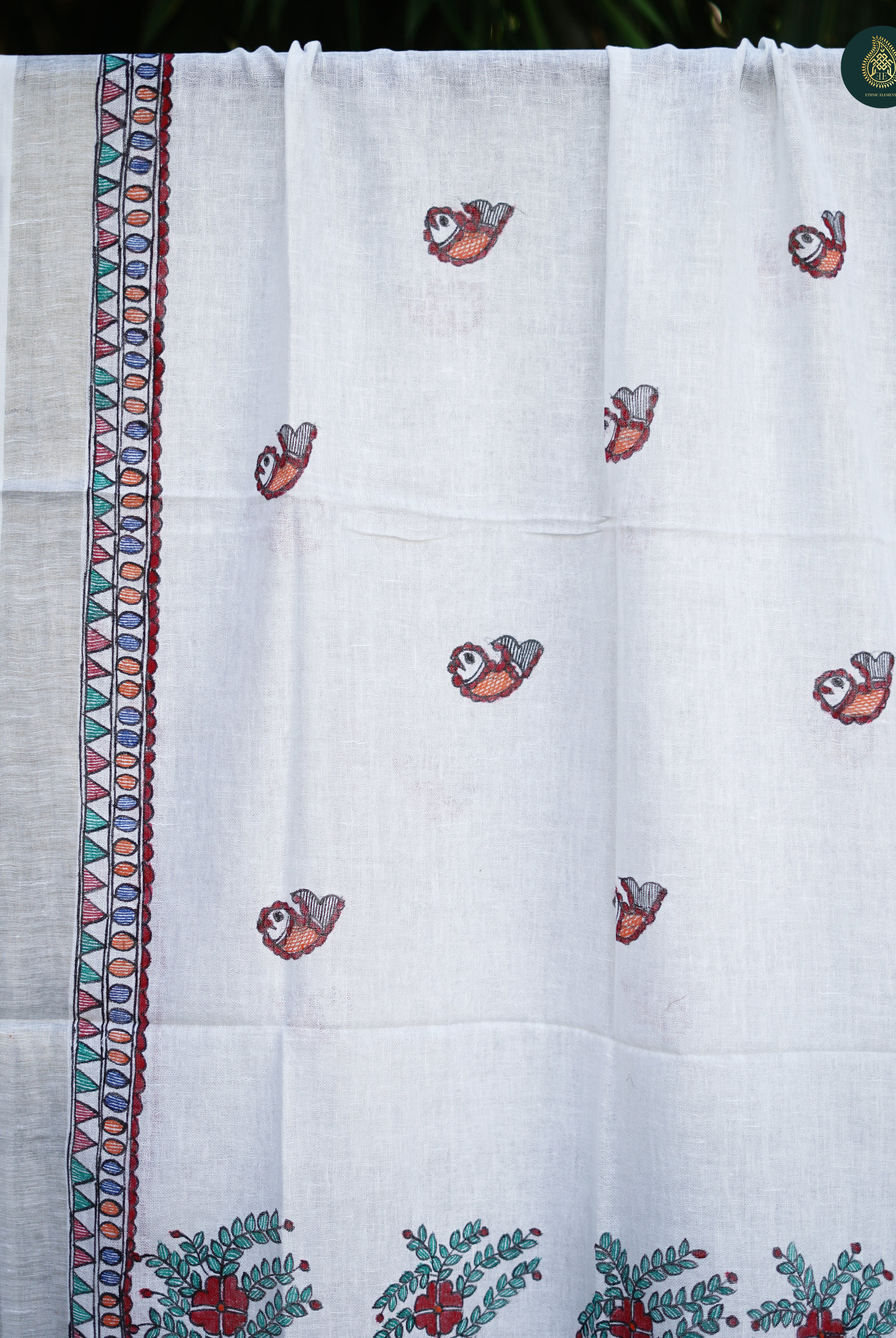 Authentic Original Hand-Painted Madhubani Suit Sets made from pure woven fabrics. Madhubani Art is a type of folk-art form. Each suit consists of line drawings filled with bright colors and contrasts or patterns. Only natural dyes and pigments are used for fabric color and painting.
