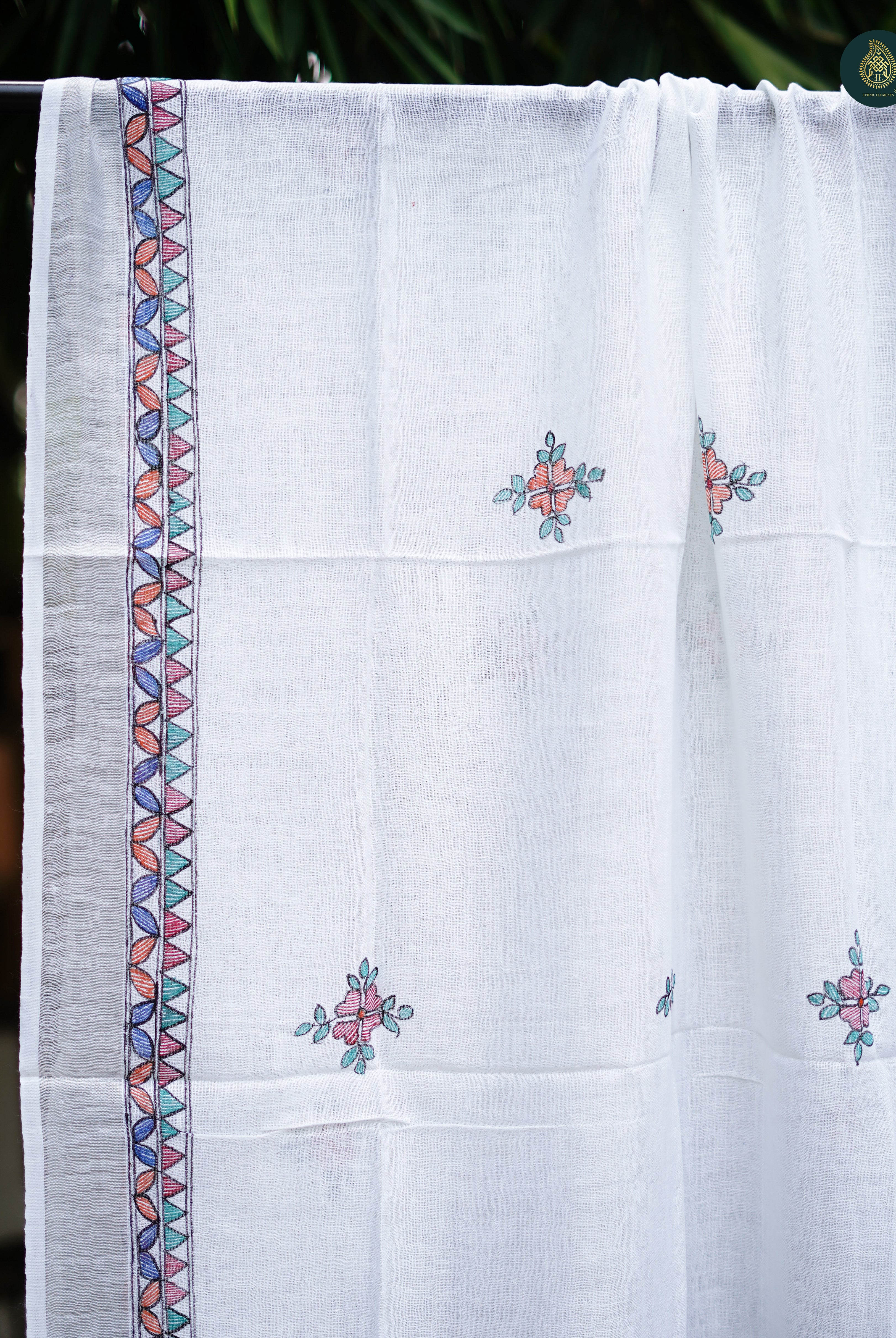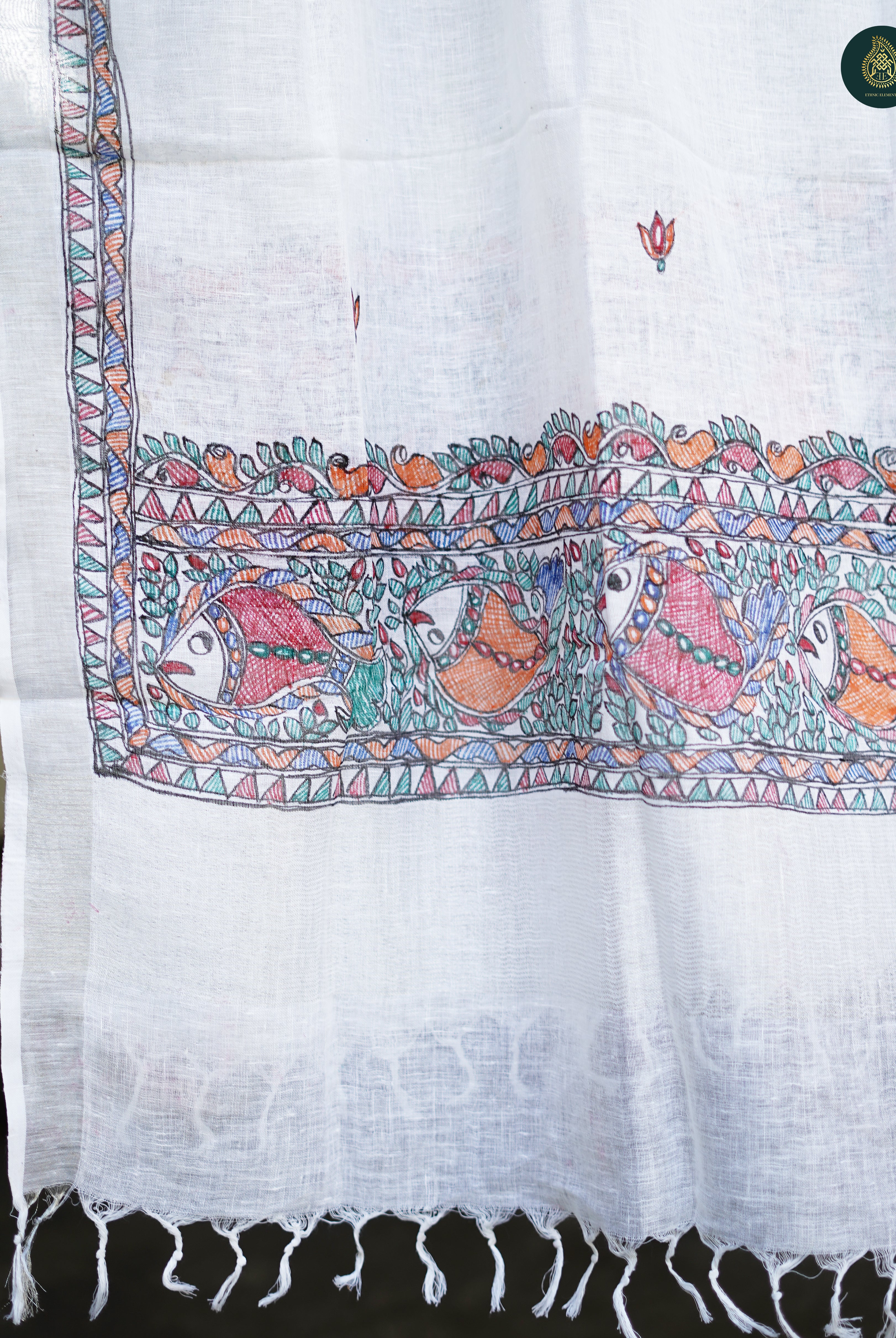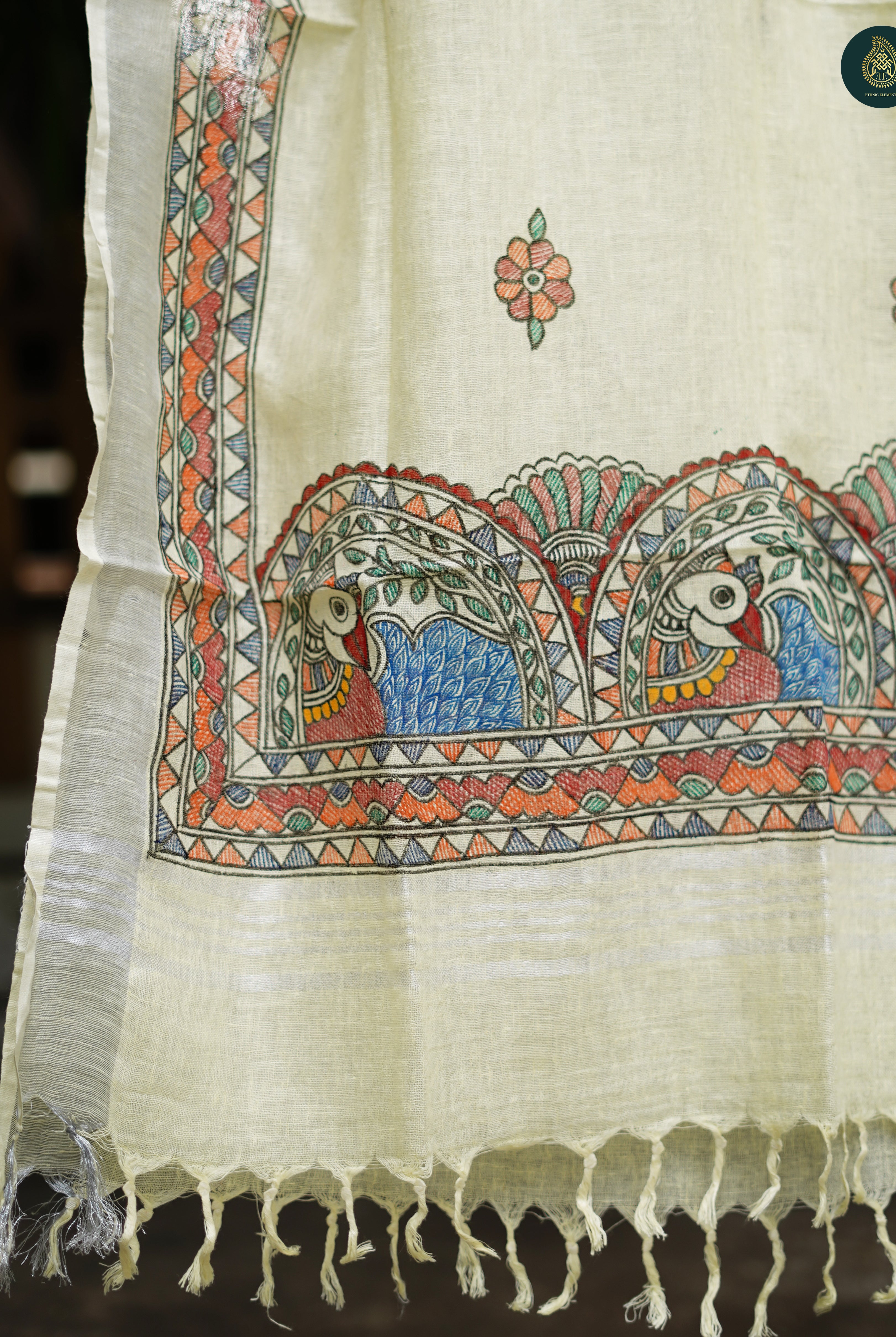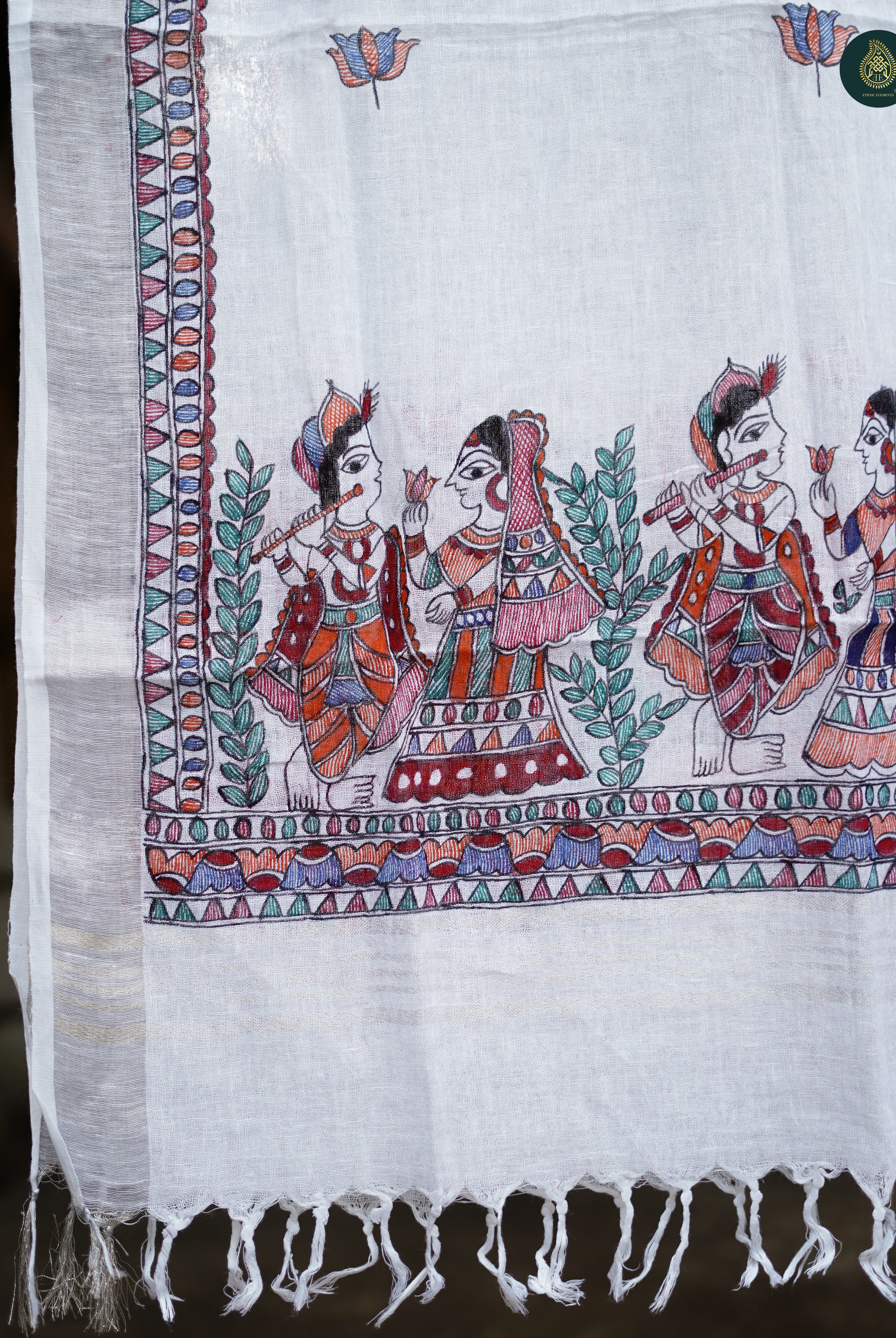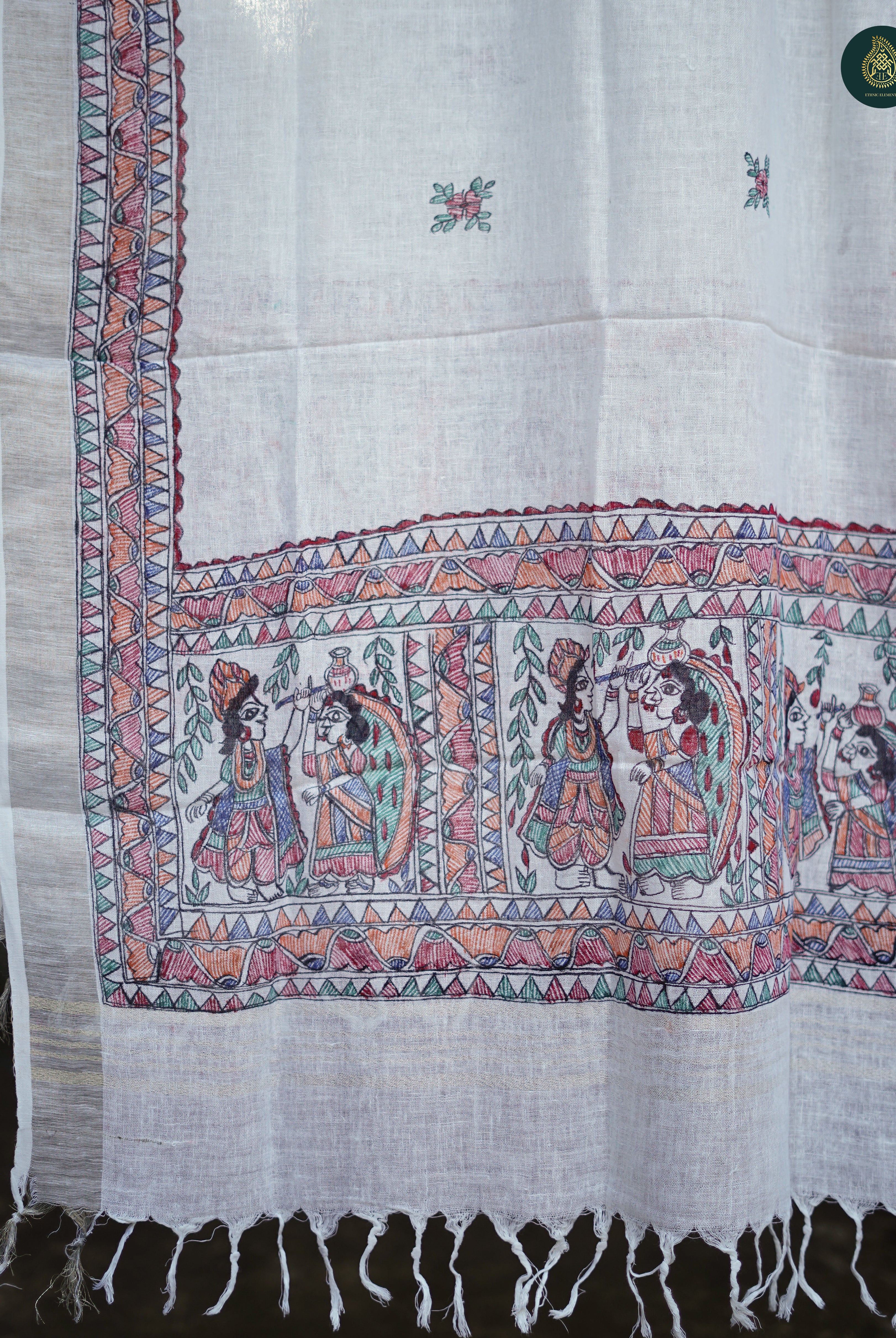 Authentic Original Hand-Painted Madhubani Suit Sets made from pure woven fabrics. Madhubani Art is a type of folk-art form. Each suit consists of line drawings filled with bright colors and contrasts or patterns. Only natural dyes and pigments are used for fabric color and painting.