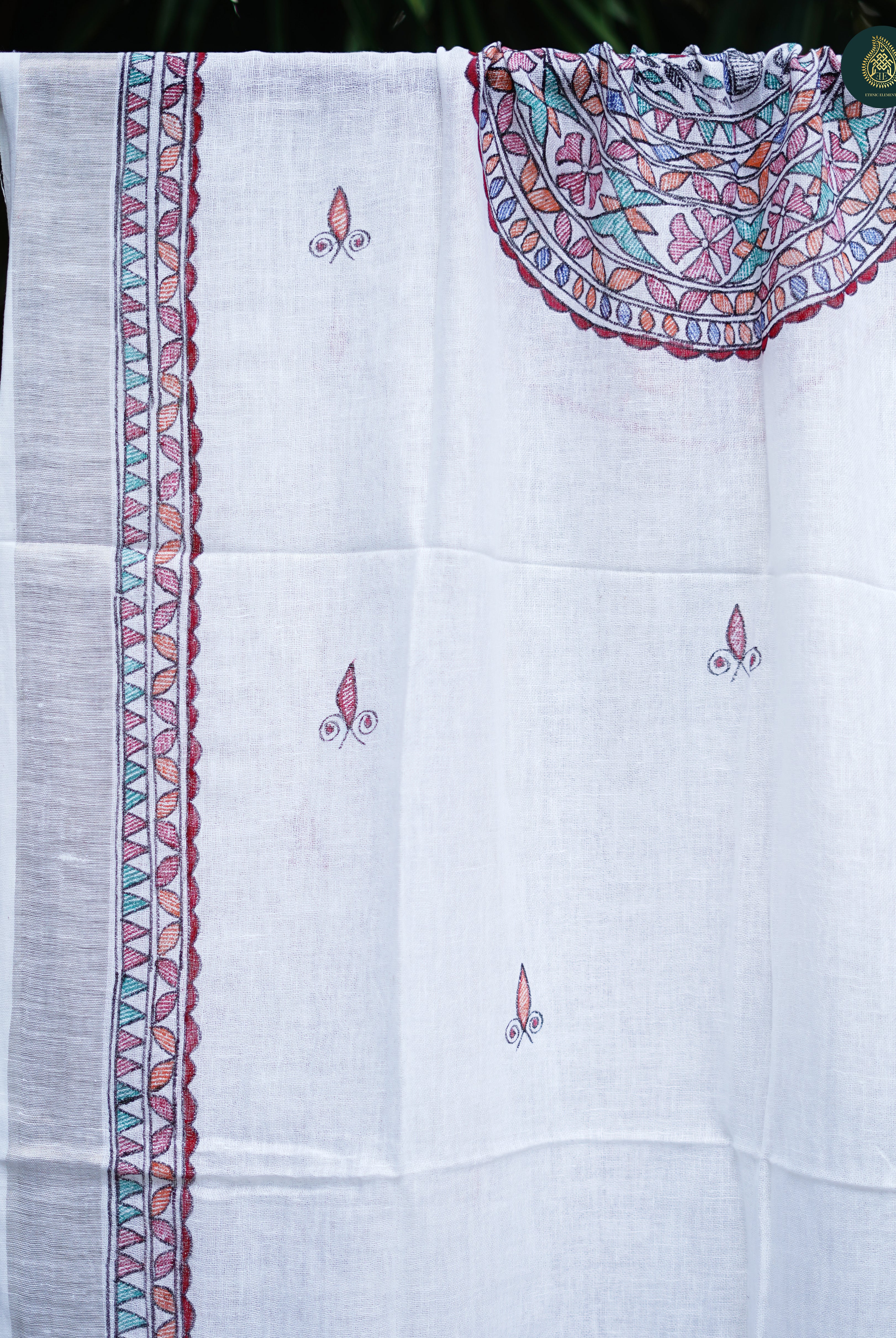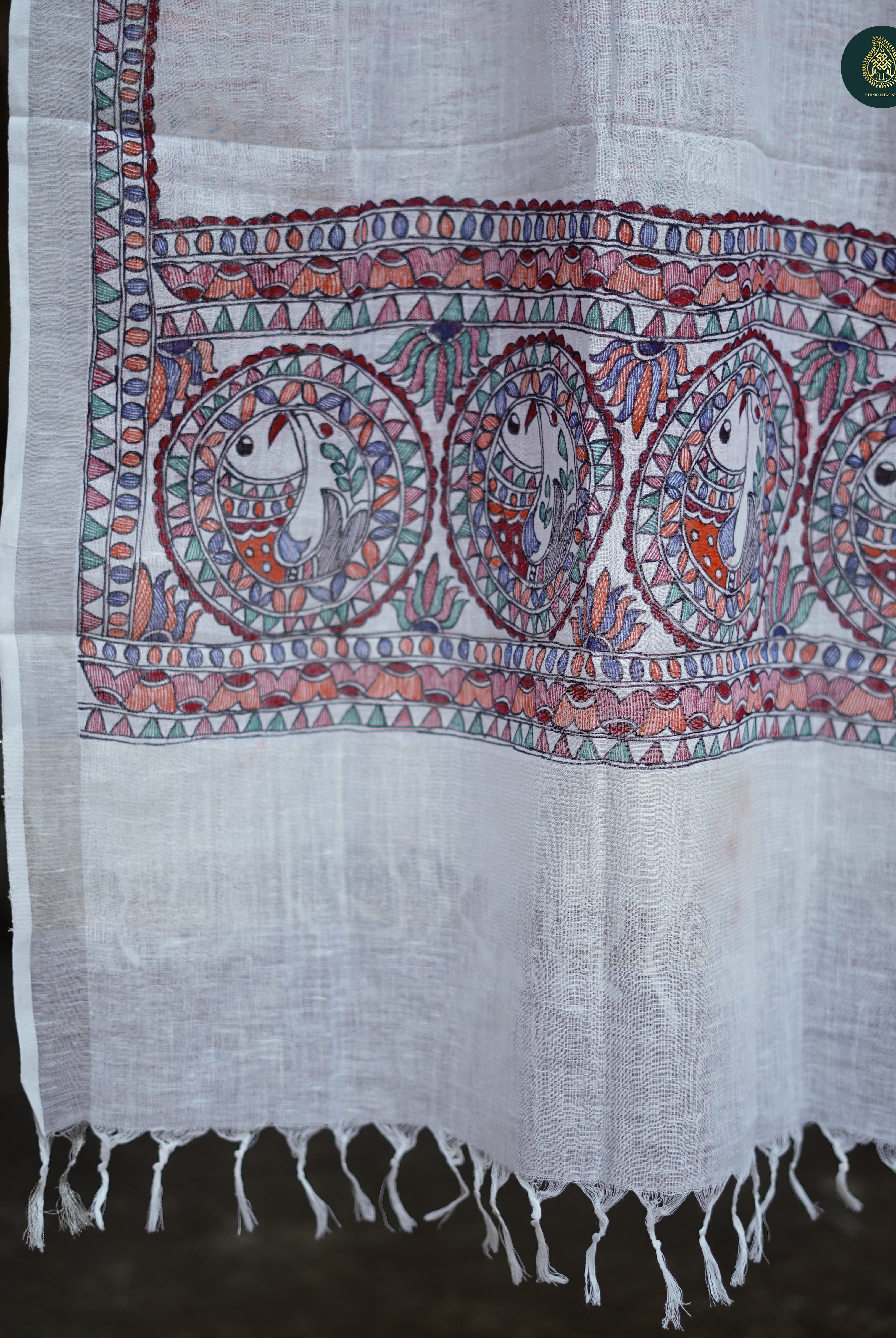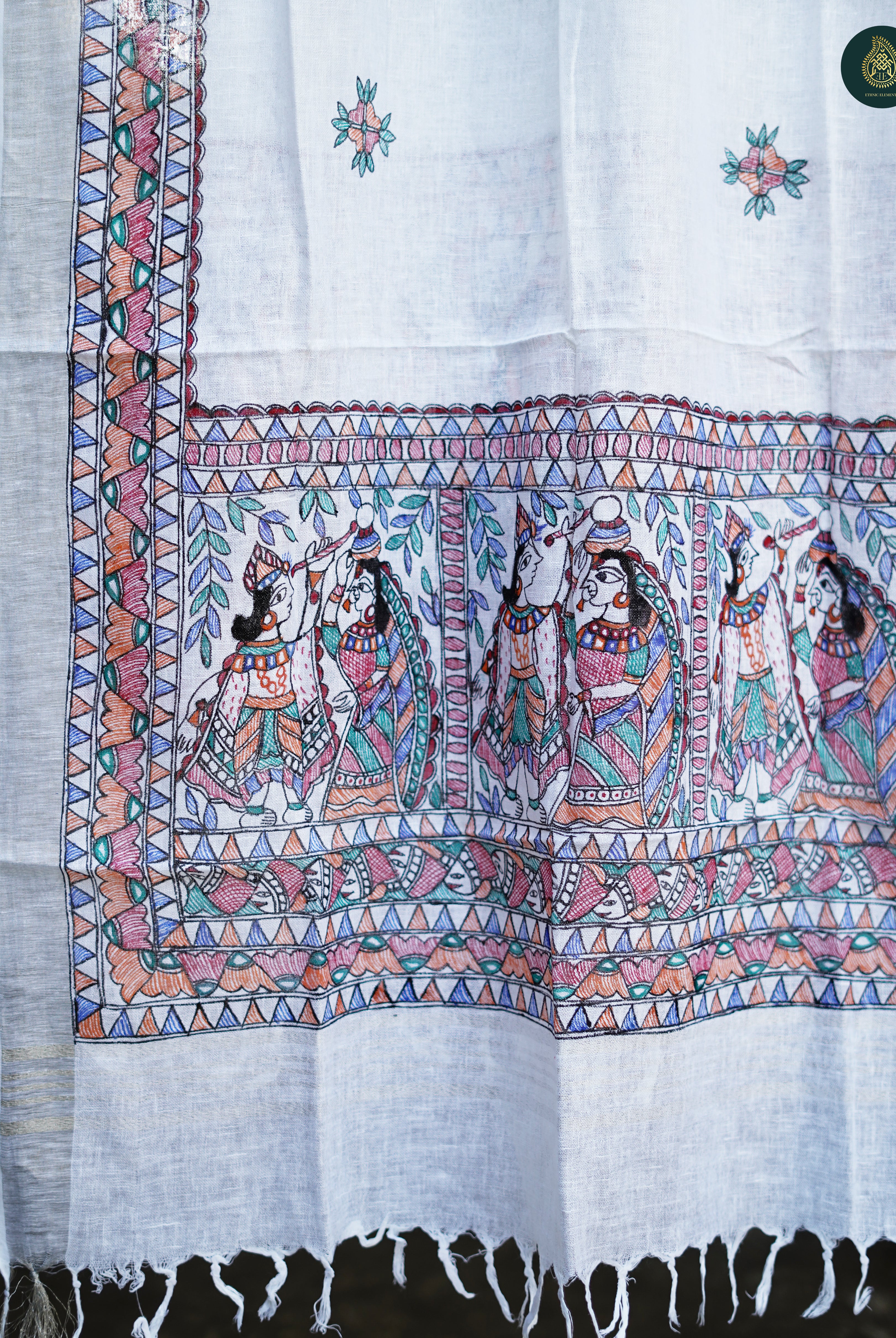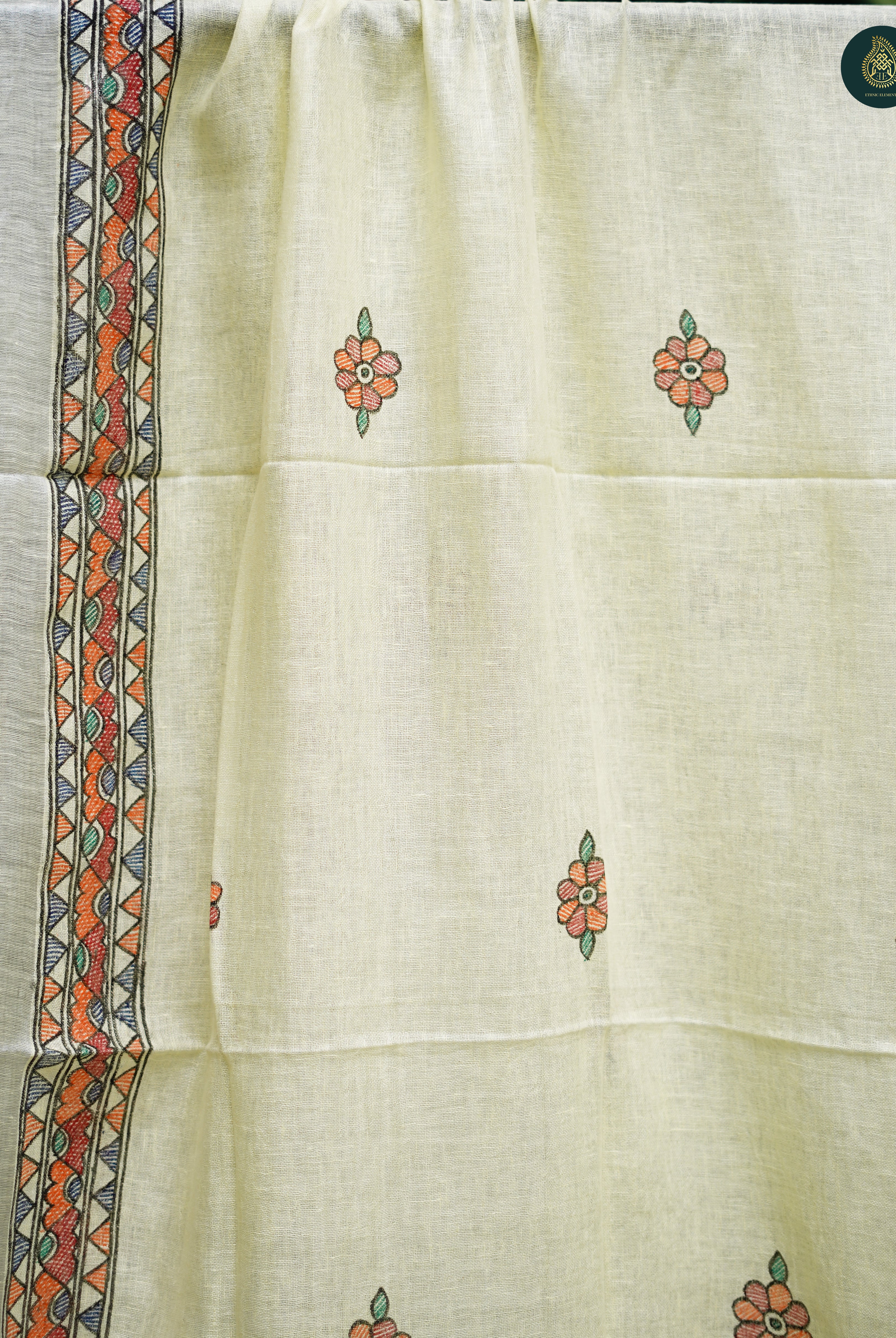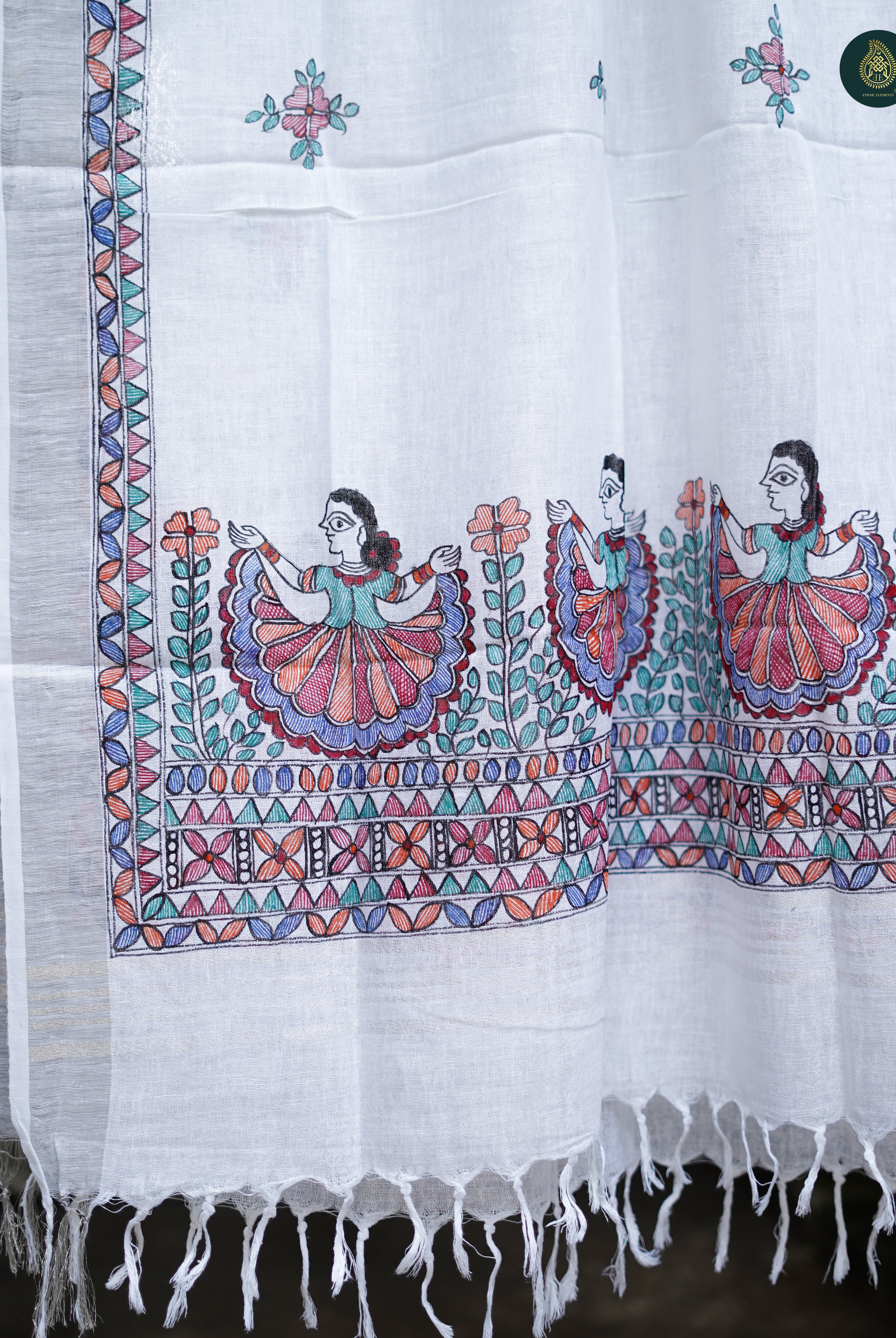 Authentic Original Hand-Painted Madhubani Suit Sets made from pure woven fabrics. Madhubani Art is a type of folk-art form. Each suit consists of line drawings filled with bright colors and contrasts or patterns. Only natural dyes and pigments are used for fabric color and painting.