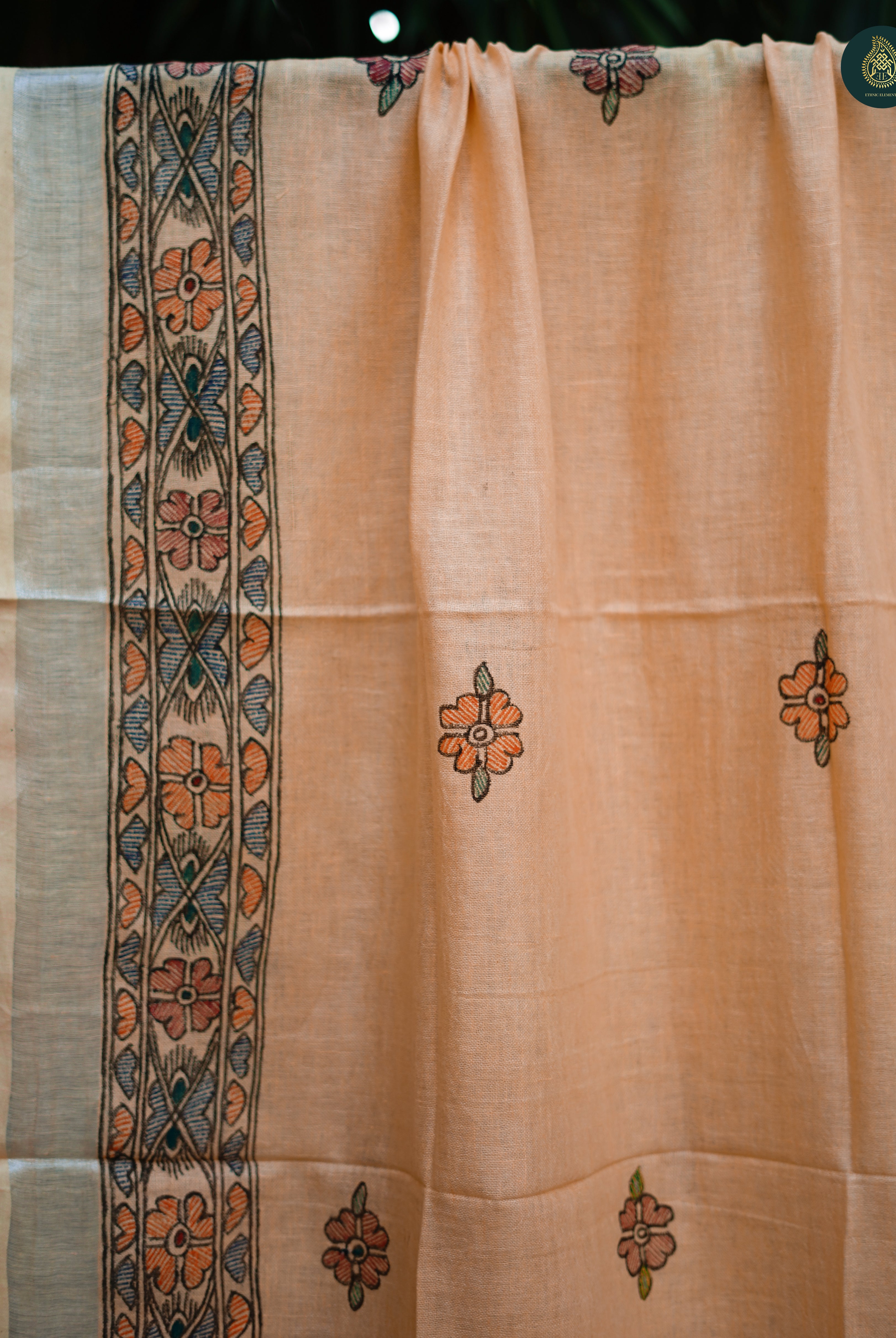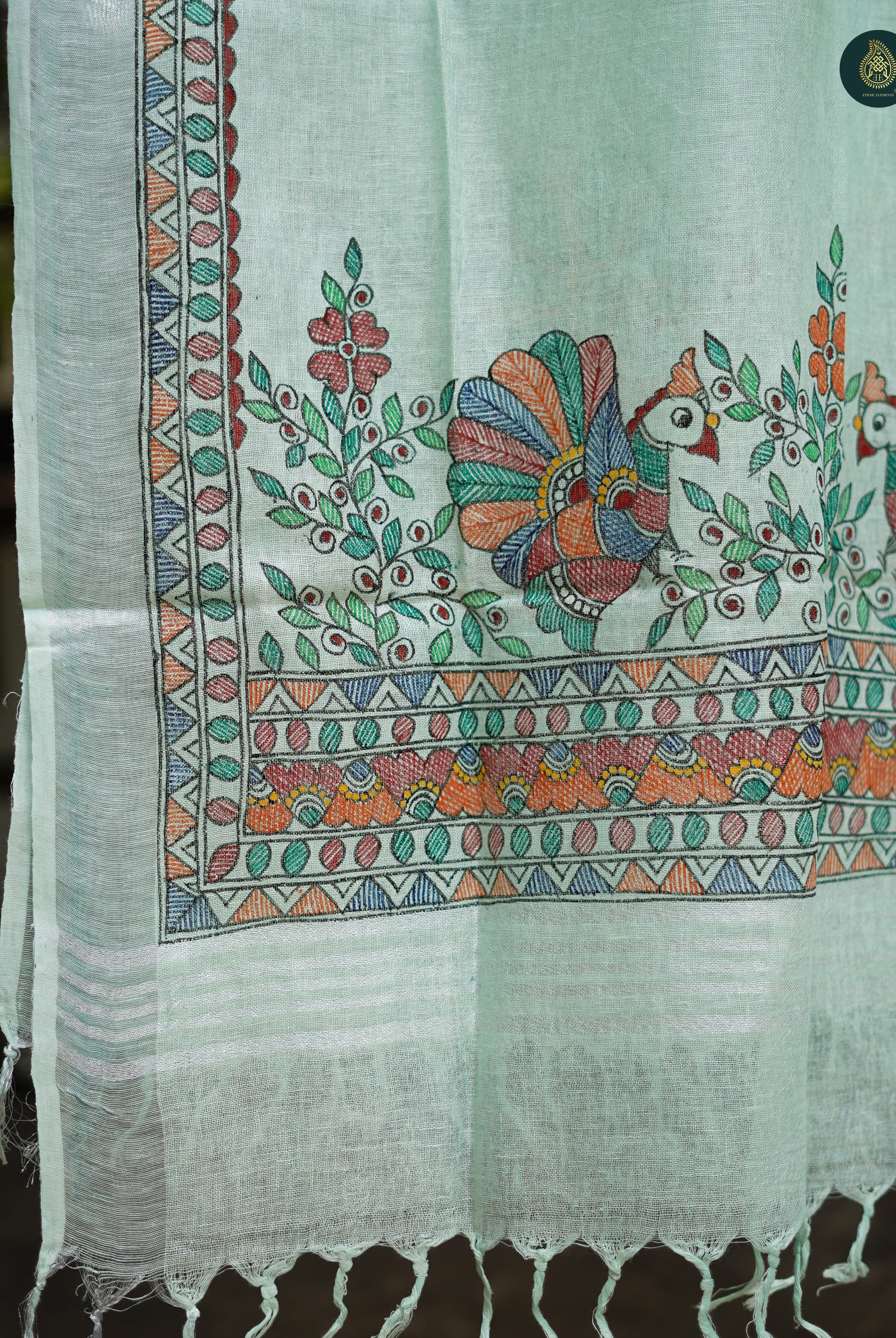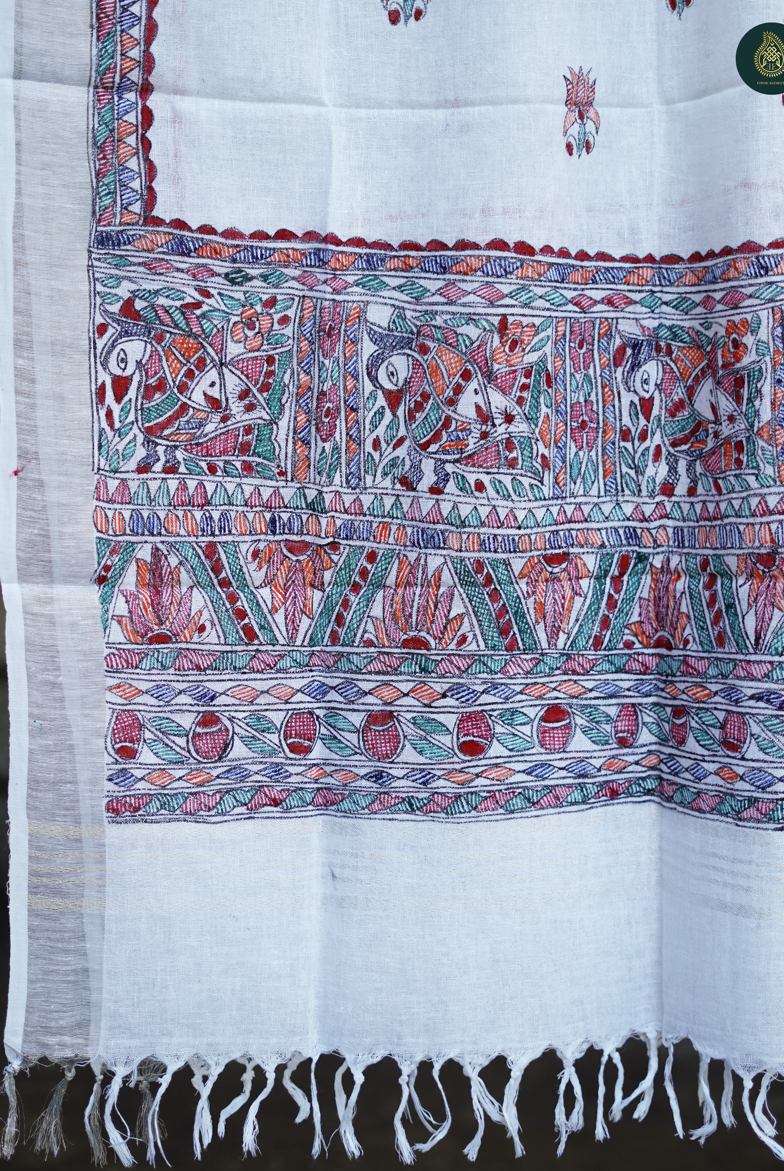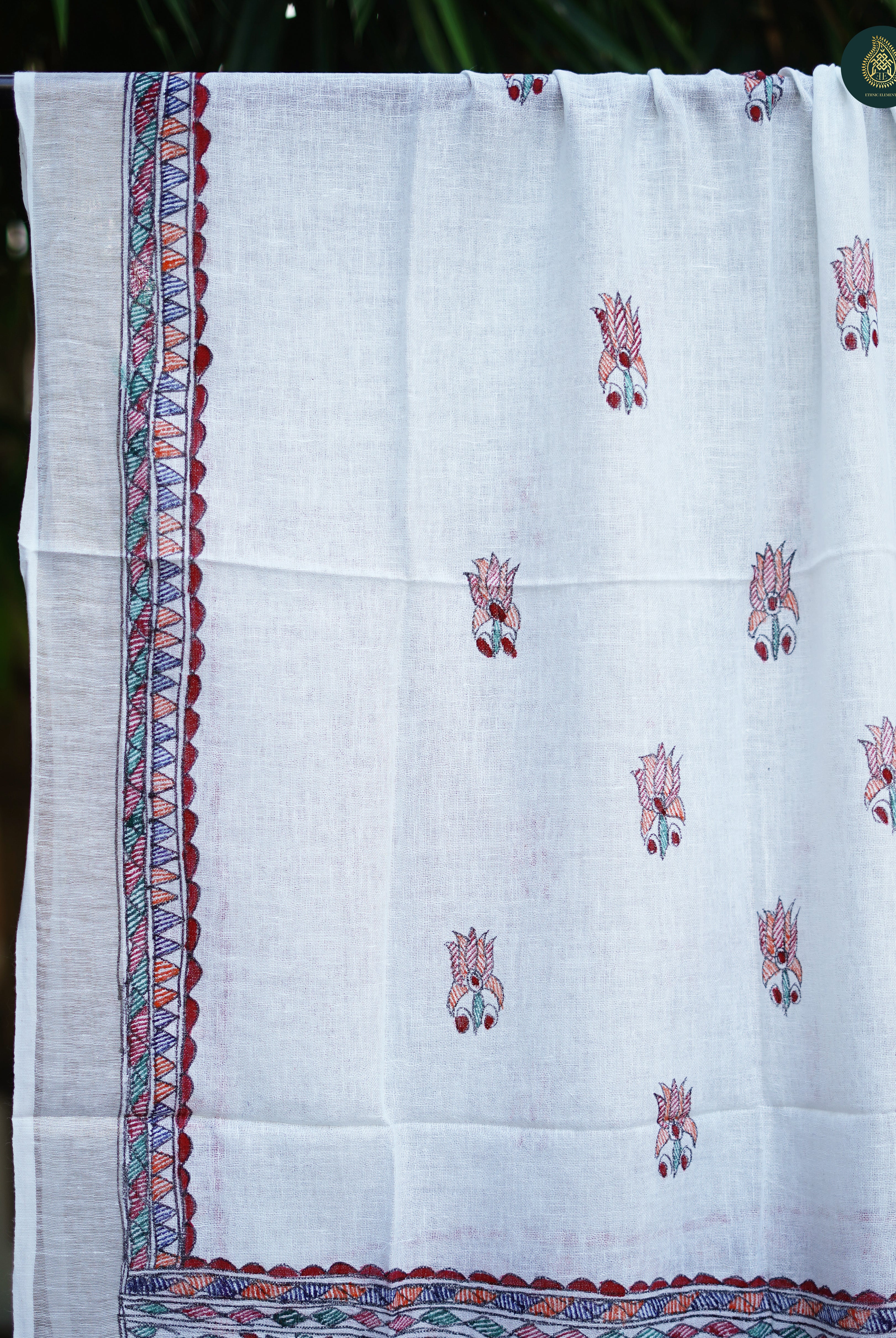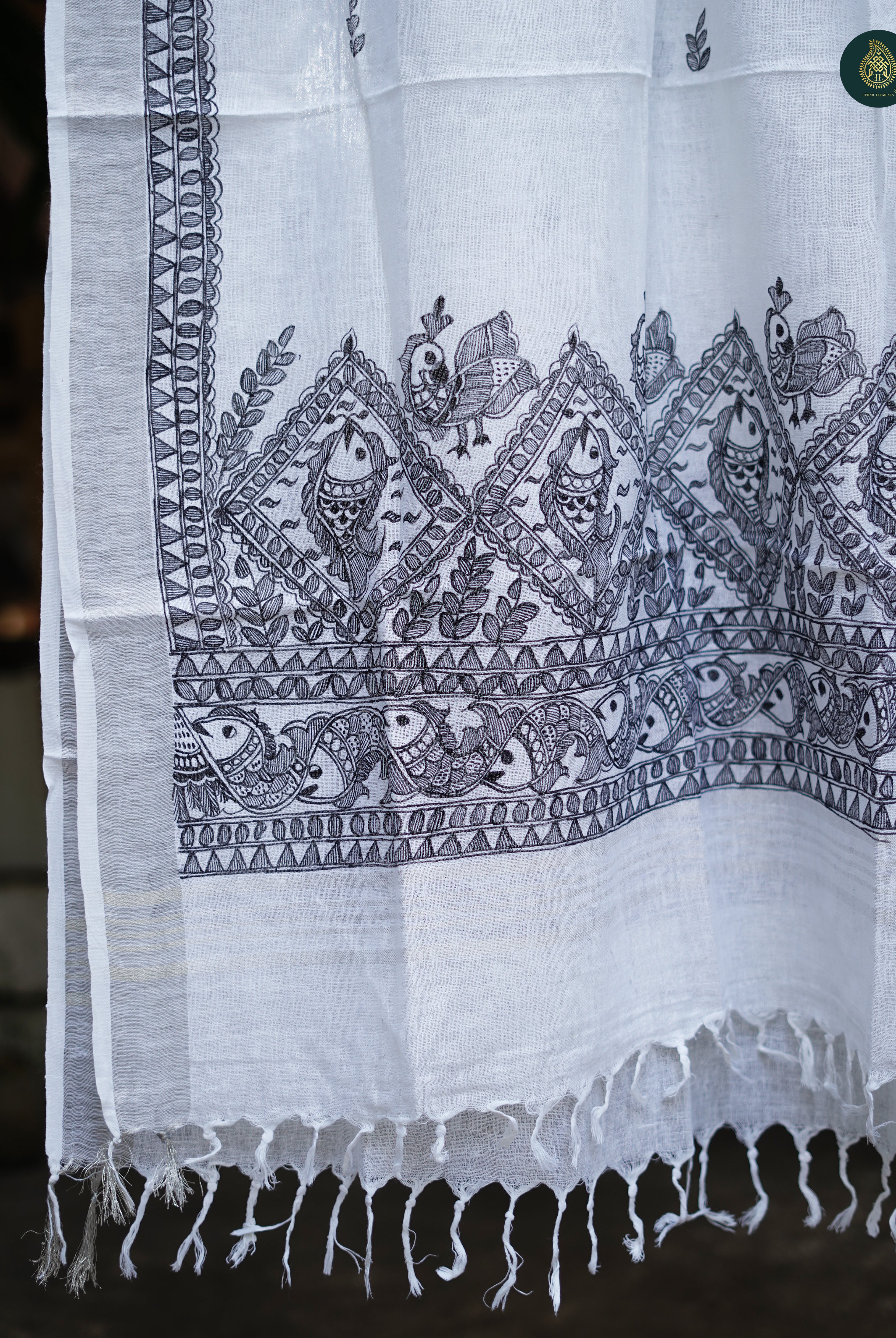 Authentic Original Hand-Painted Madhubani Suit Sets made from pure woven fabrics. Madhubani Art is a type of folk-art form. Each suit consists of line drawings filled with bright colors and contrasts or patterns. Only natural dyes and pigments are used for fabric color and painting.