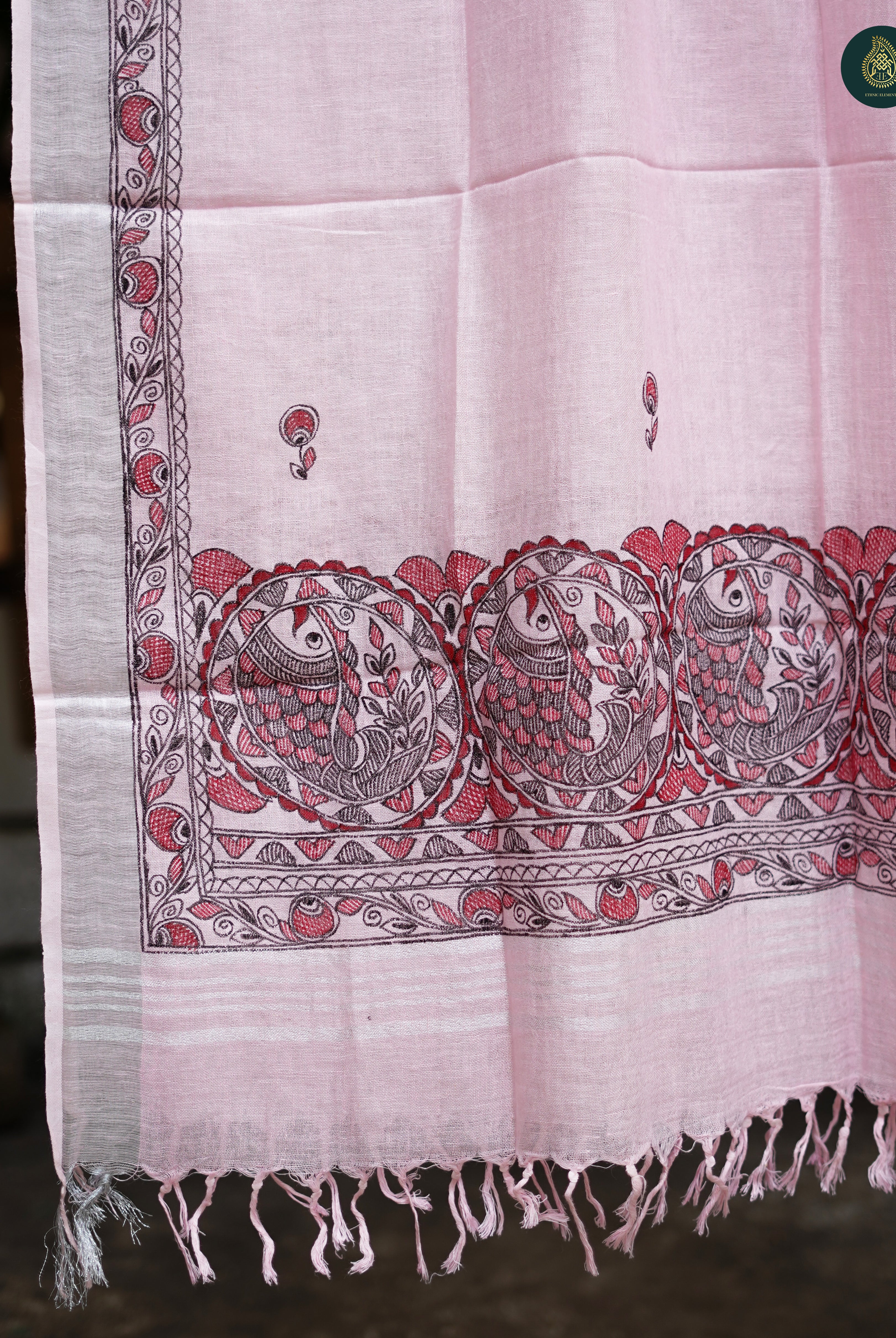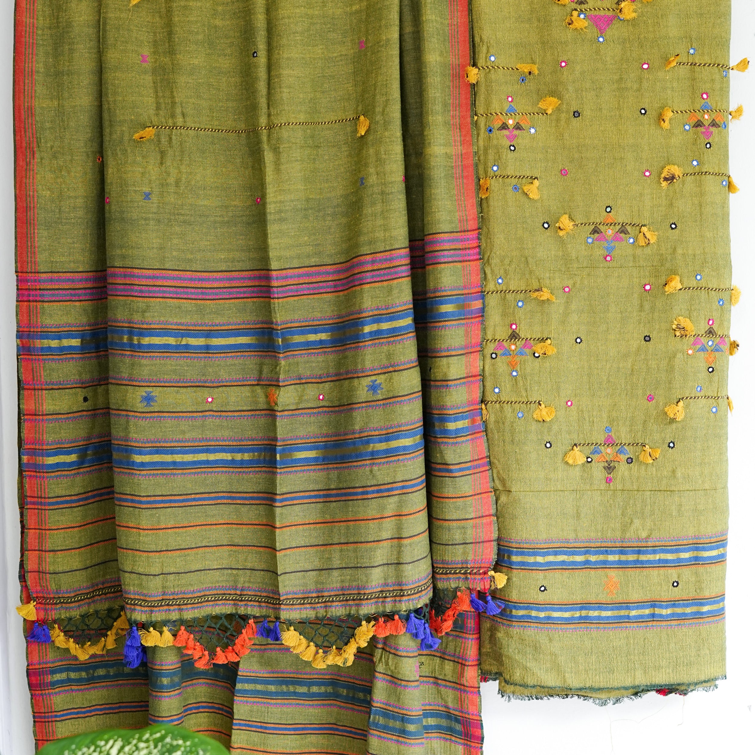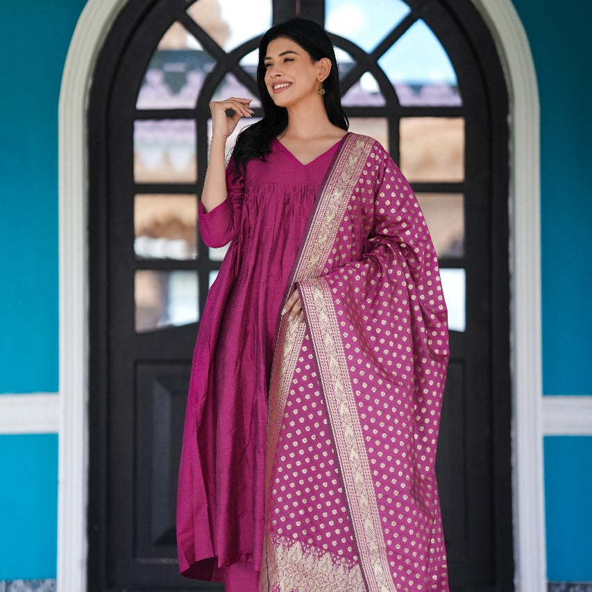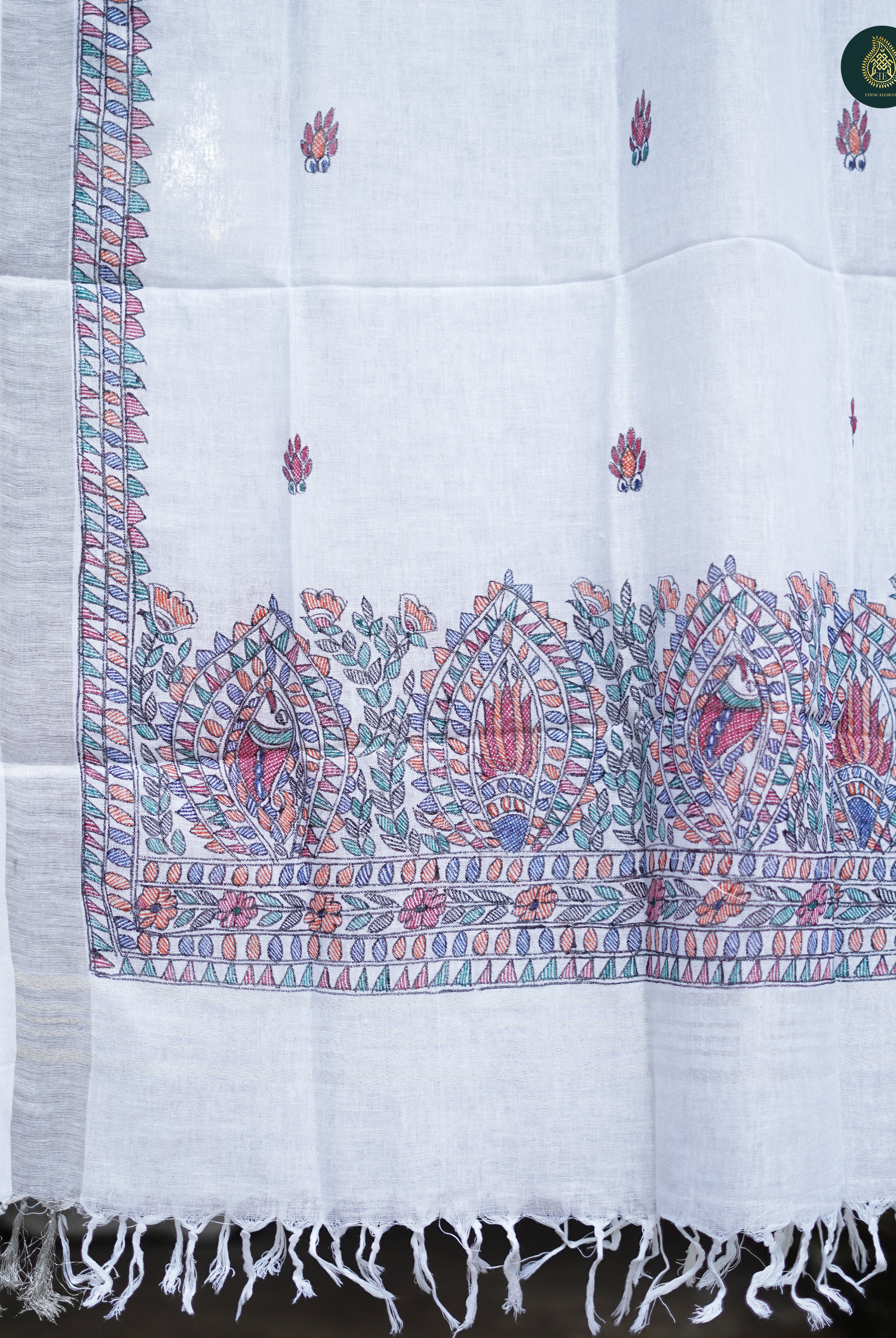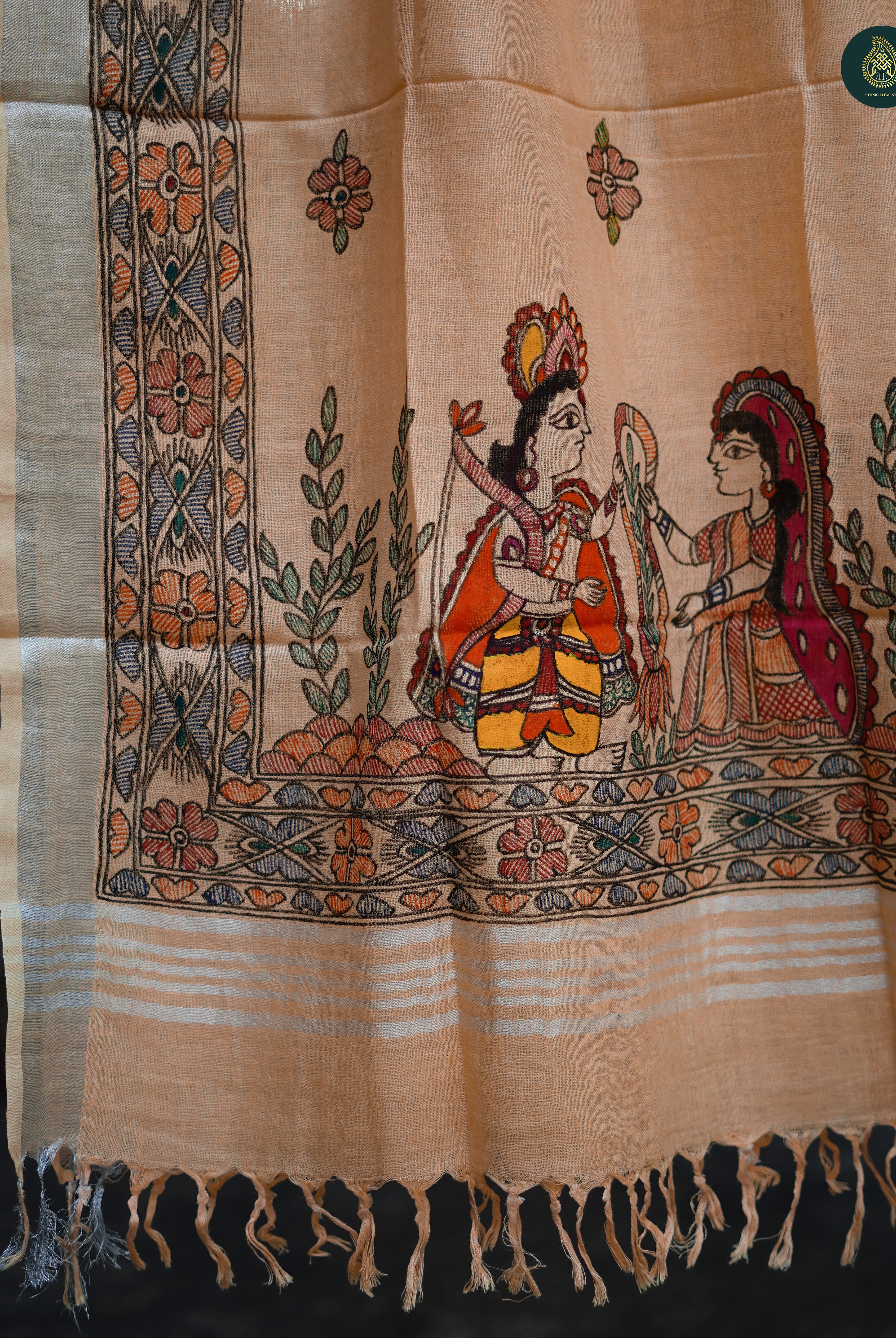 Authentic Original Hand-Painted Madhubani Suit Sets made from pure woven fabrics. Madhubani Art is a type of folk-art form. Each suit consists of line drawings filled with bright colors and contrasts or patterns. Only natural dyes and pigments are used for fabric color and painting.