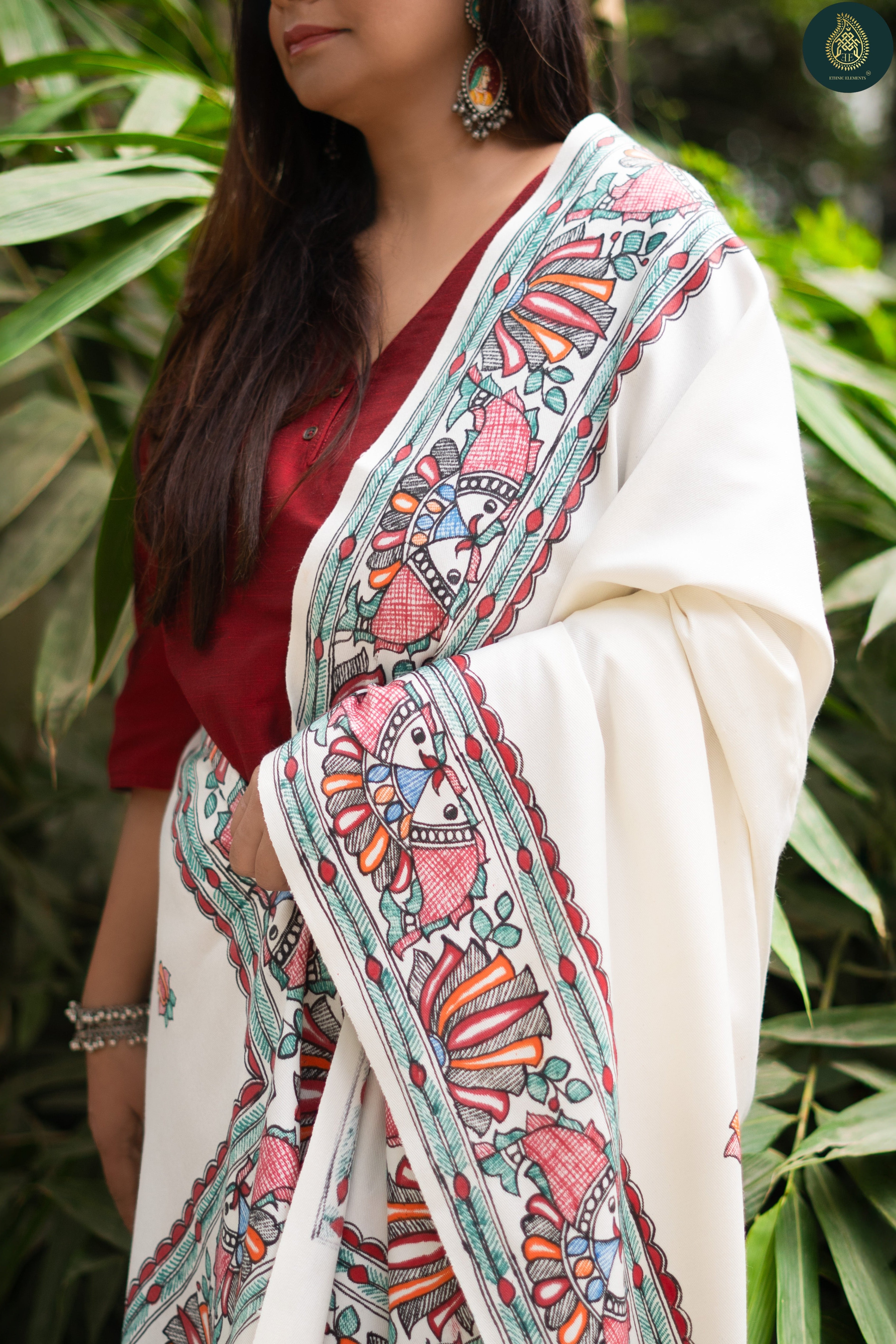 Madhubani Woolen Shawl - The Parrot's Paradise