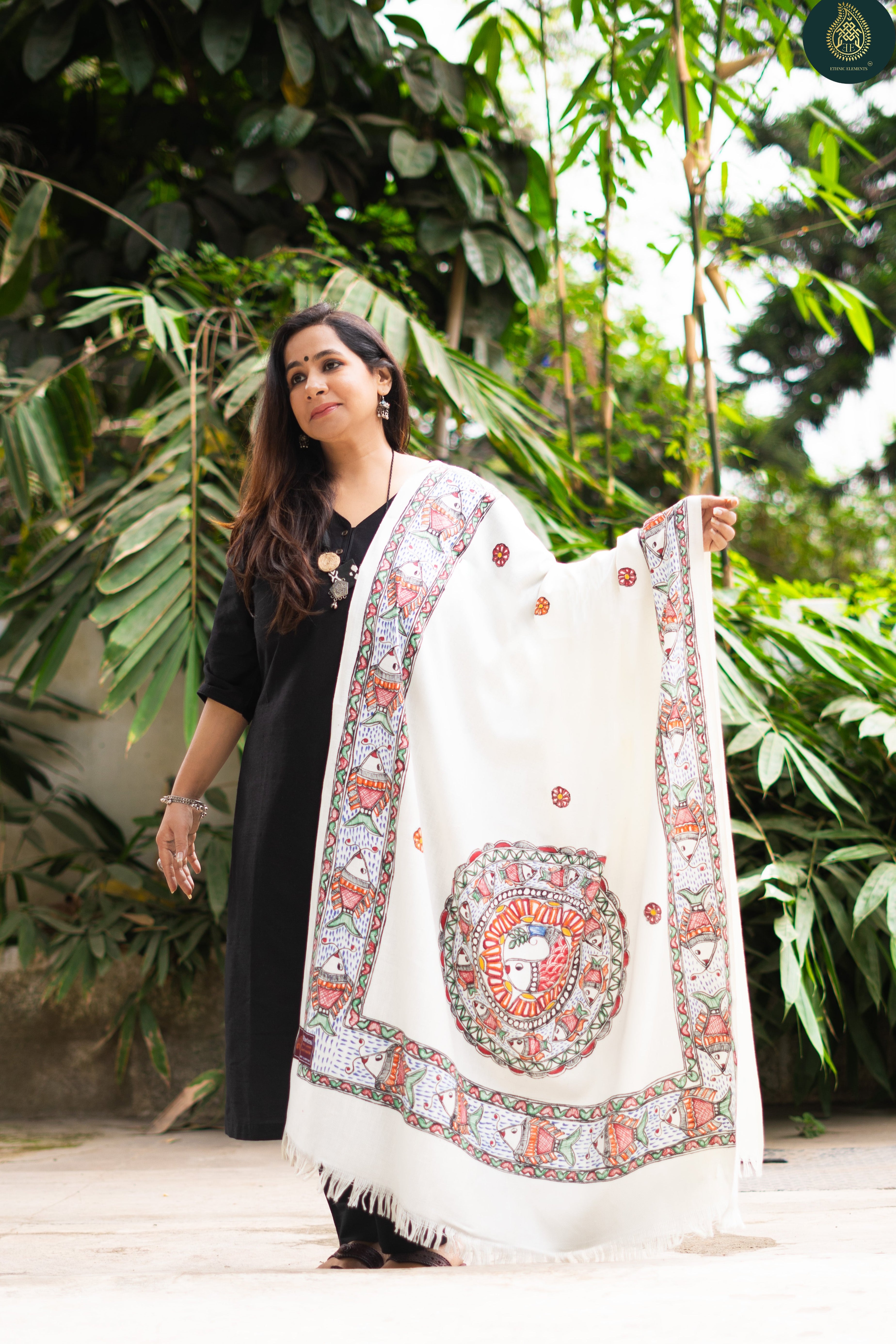 Madhubani Woolen Shawl - Fish & Patterns in Bloom