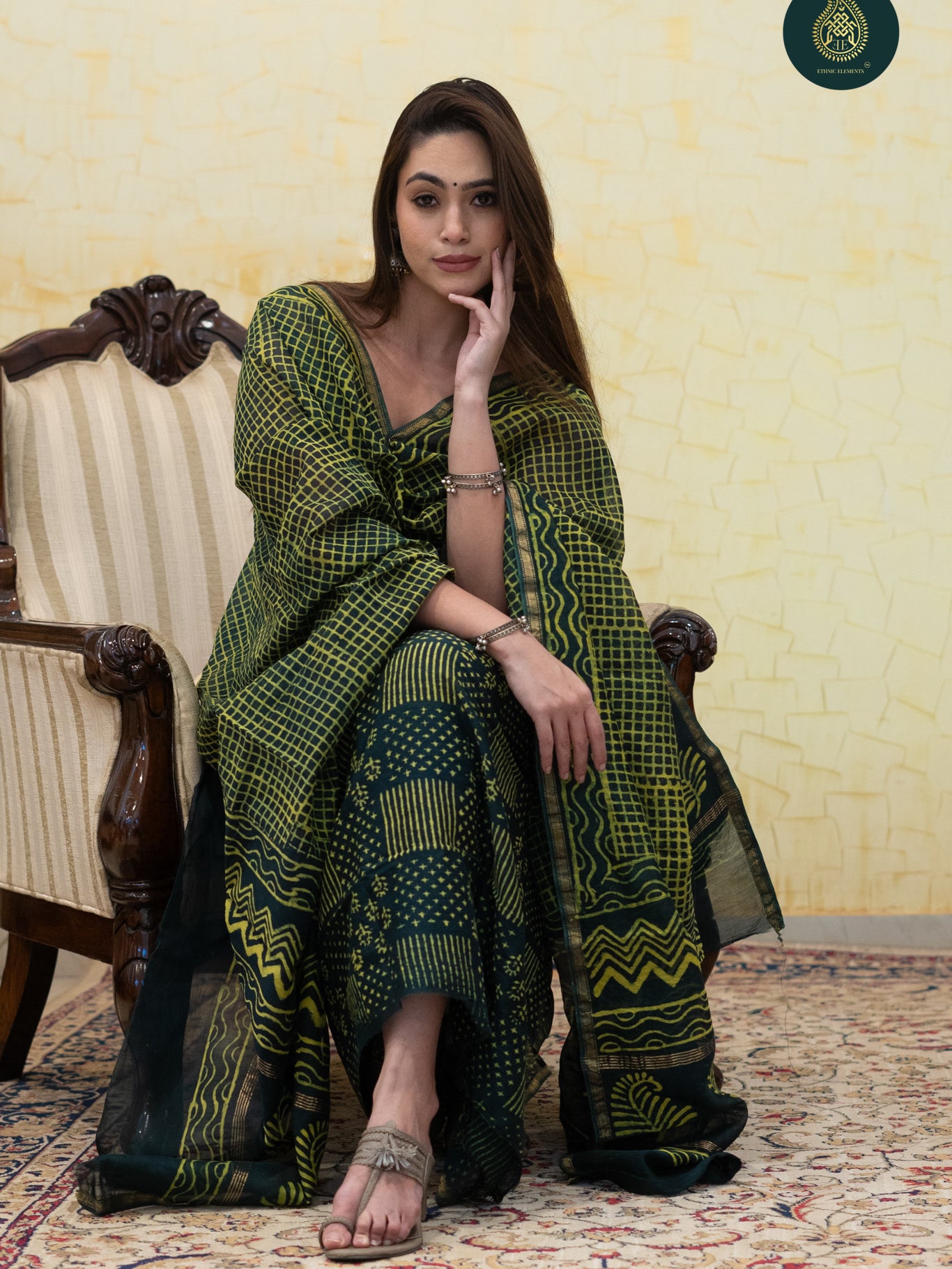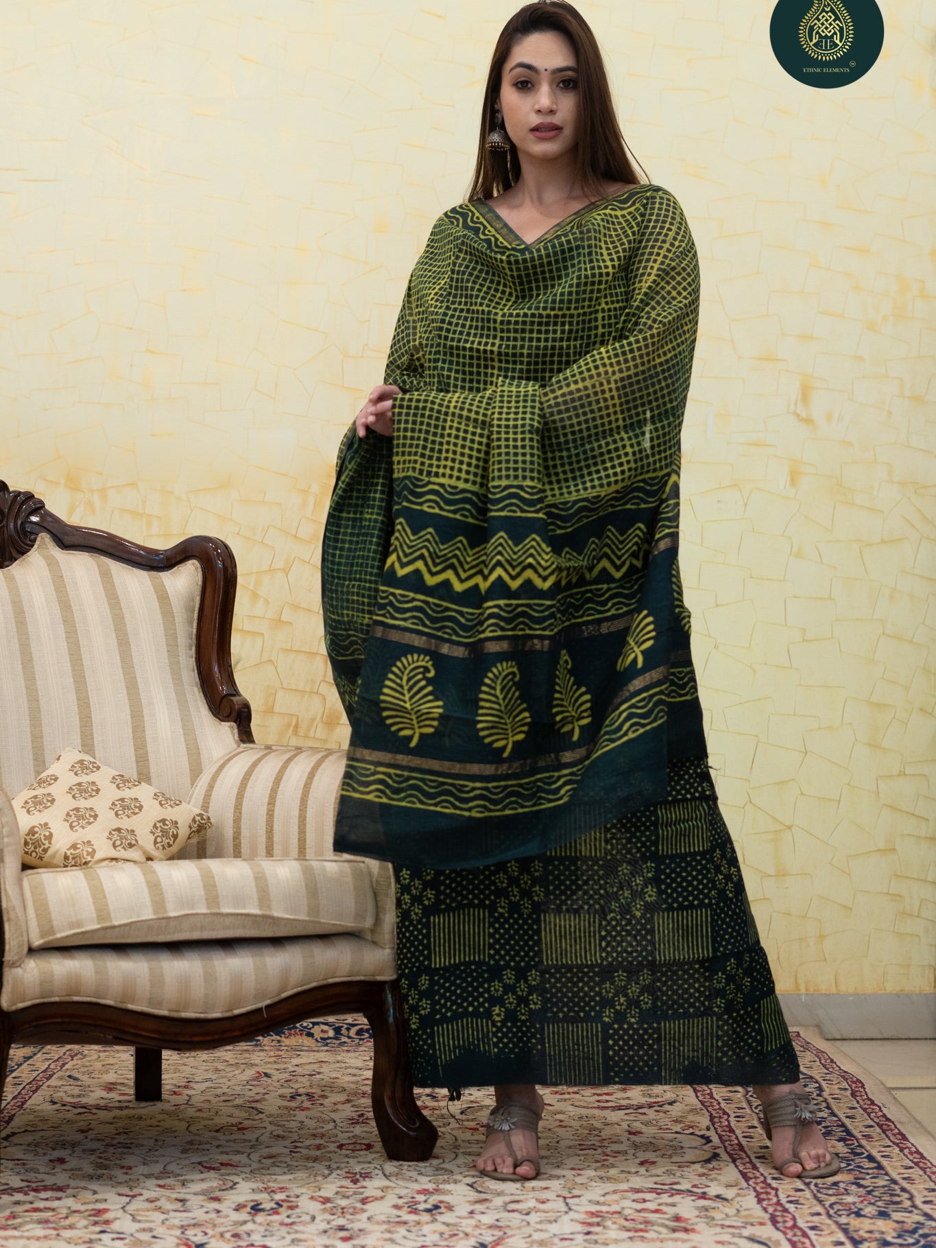 Dupatta- Featuring authentic Madhubani work, with intricate hand-painted designs and natural dyes, bringing timeless artistry to your look