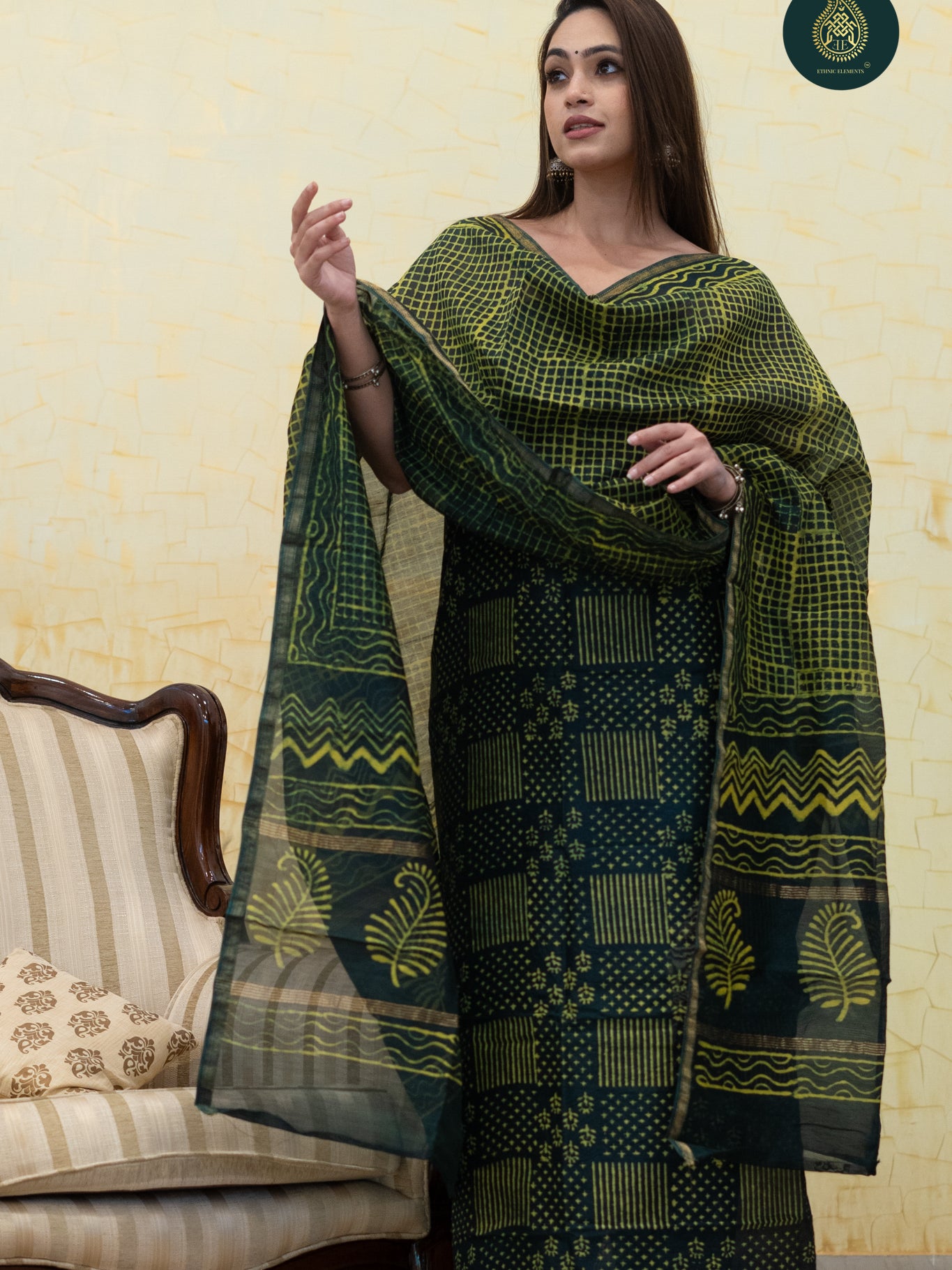 Style guide - Style your Madhubani artwork suit set with minimal jewelry to let the intricate patterns stand out. Pair with traditional juttis, drape the dupatta neatly and go for bold eyes with nude lips