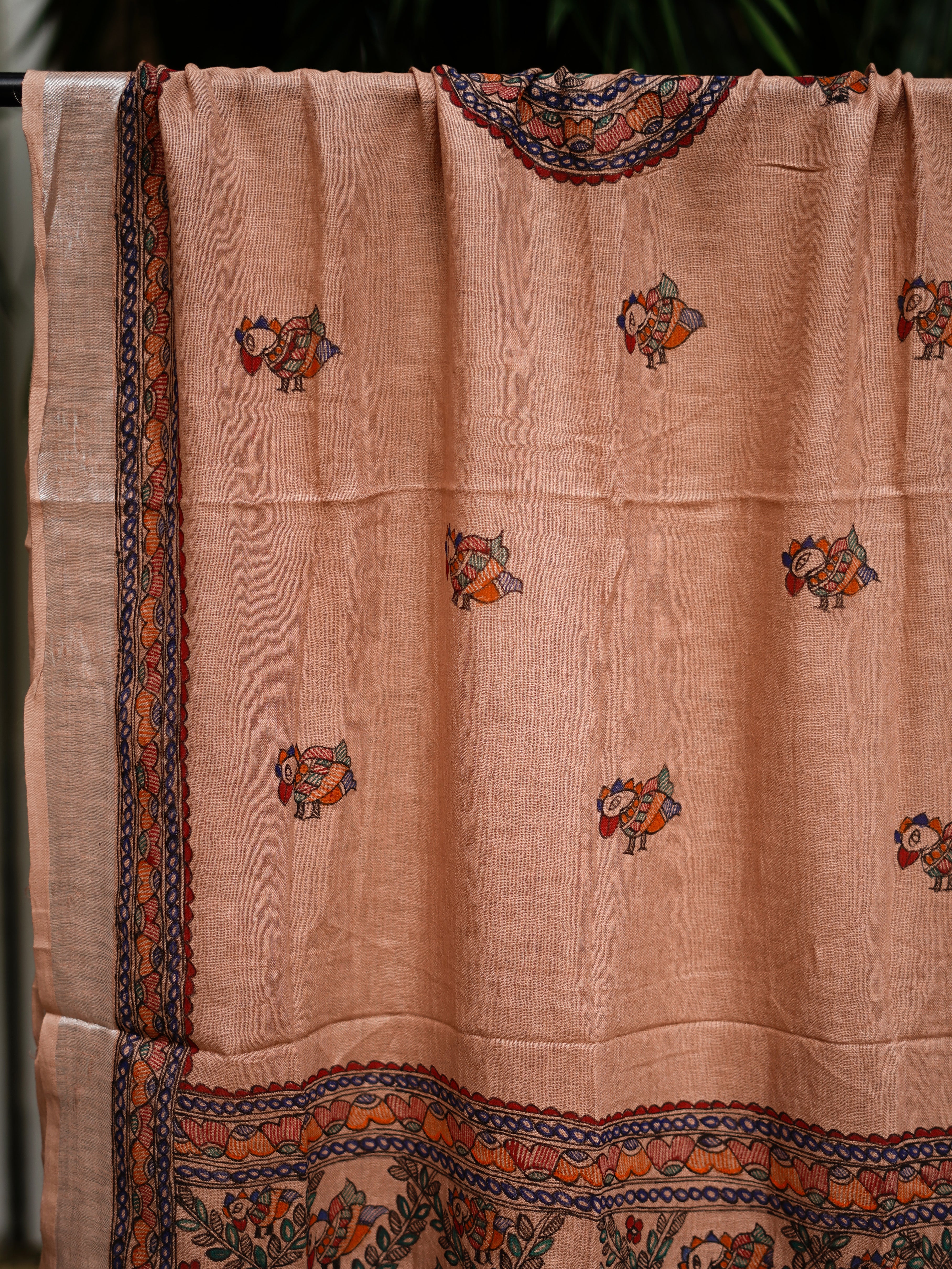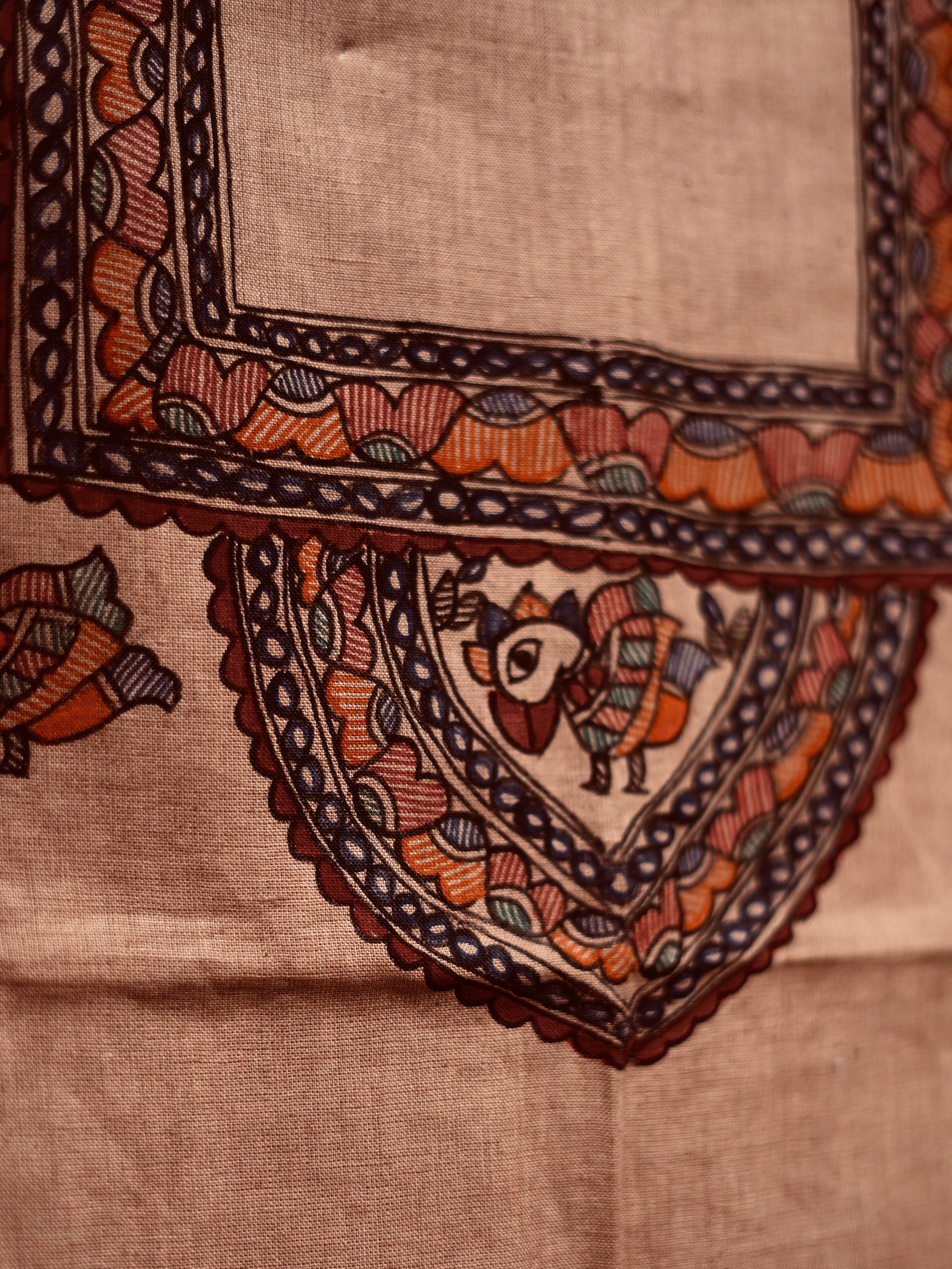 Dupatta- Featuring authentic Madhubani work, with intricate hand-painted designs and natural dyes, bringing timeless artistry to your look