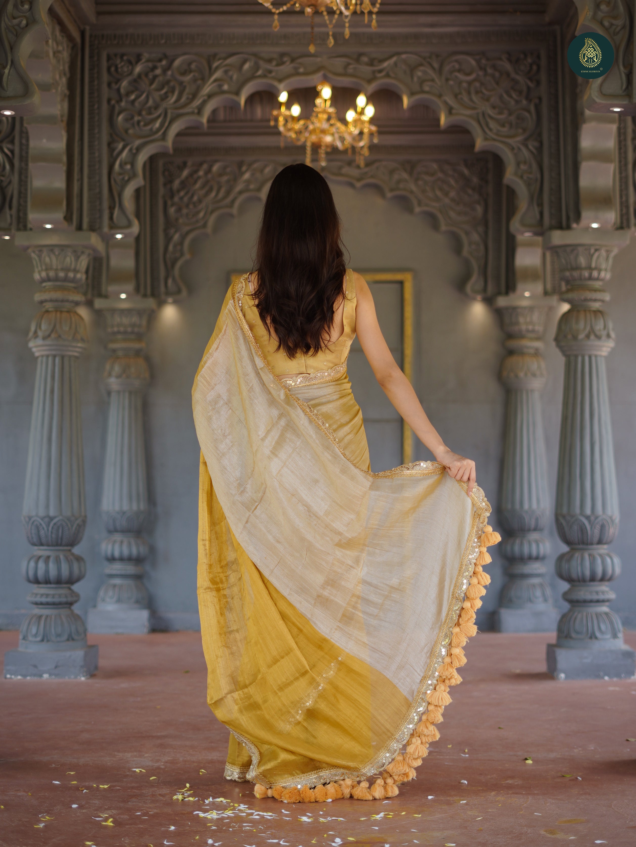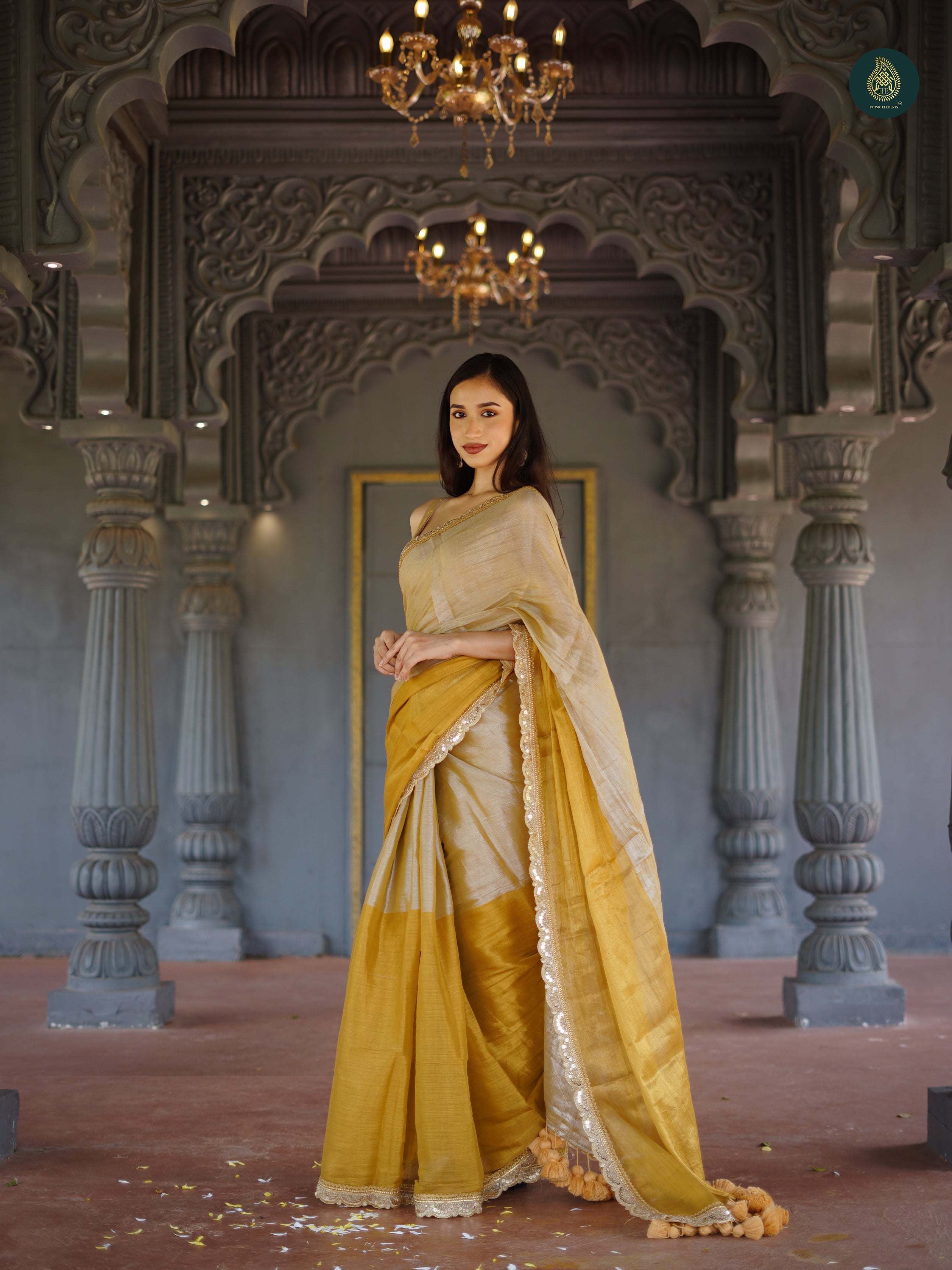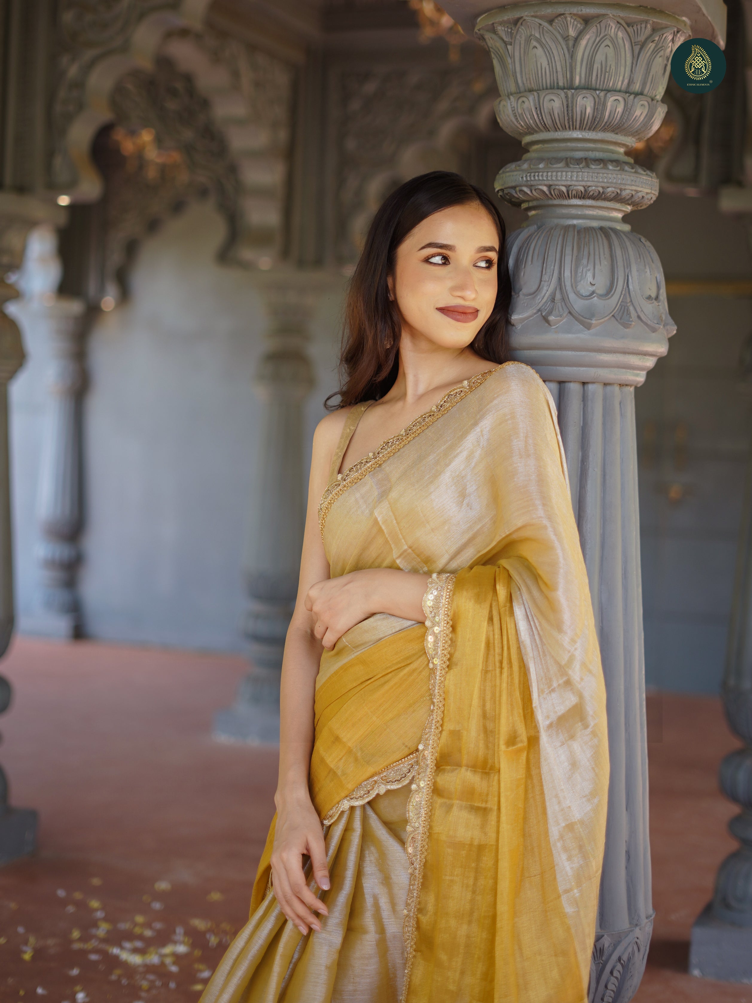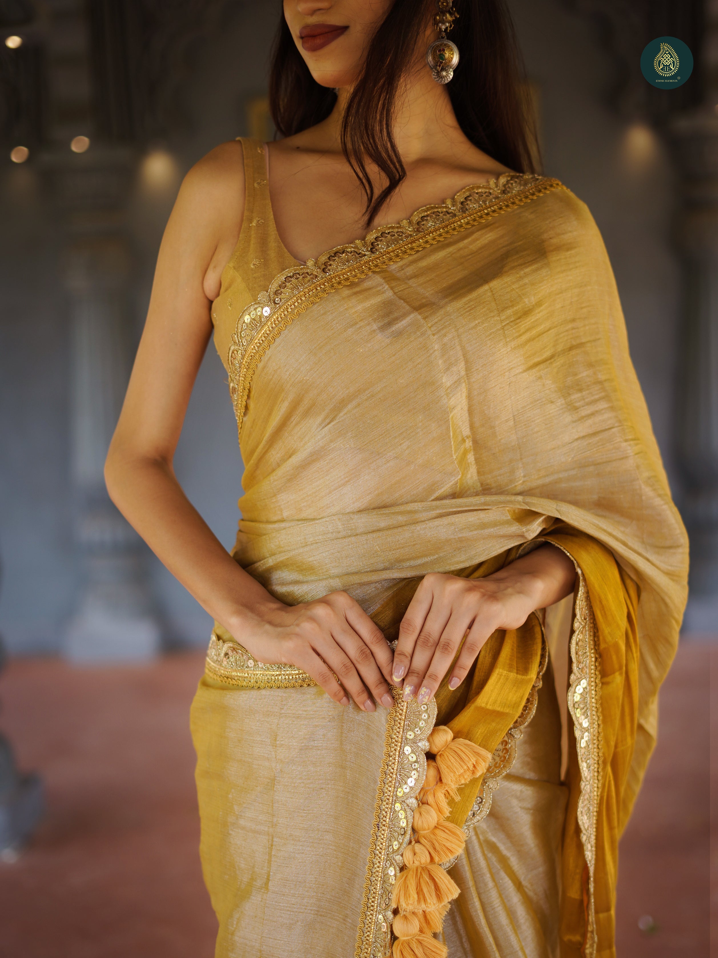 Mul Cotton Hand Mirror Work Mustard Boho saree