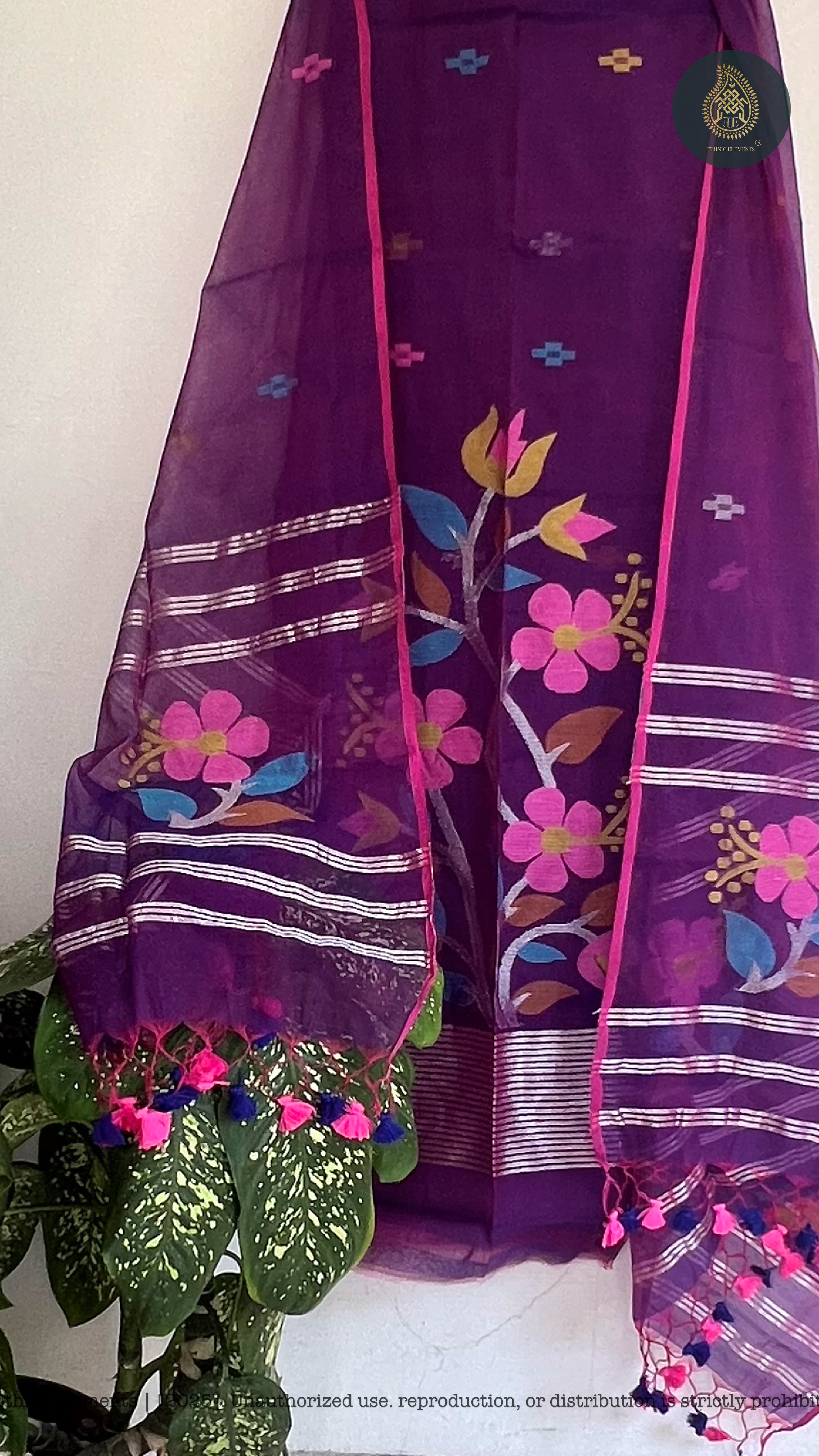 Resham Muslin Jamdani Suit Set - Purple Petals