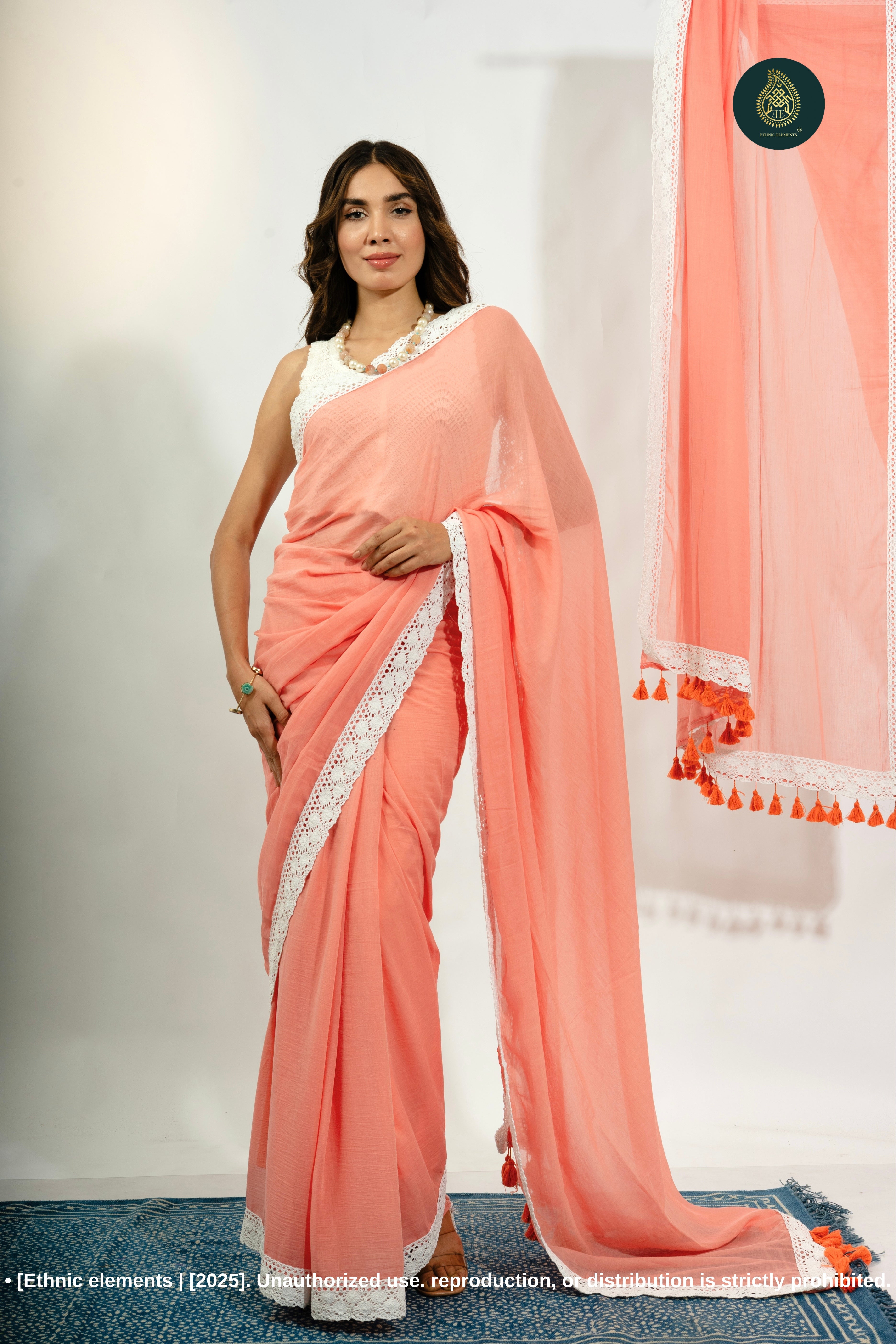 ✔ Design: Handloom Woven with Crochet Lace Border & Handmade Tassels