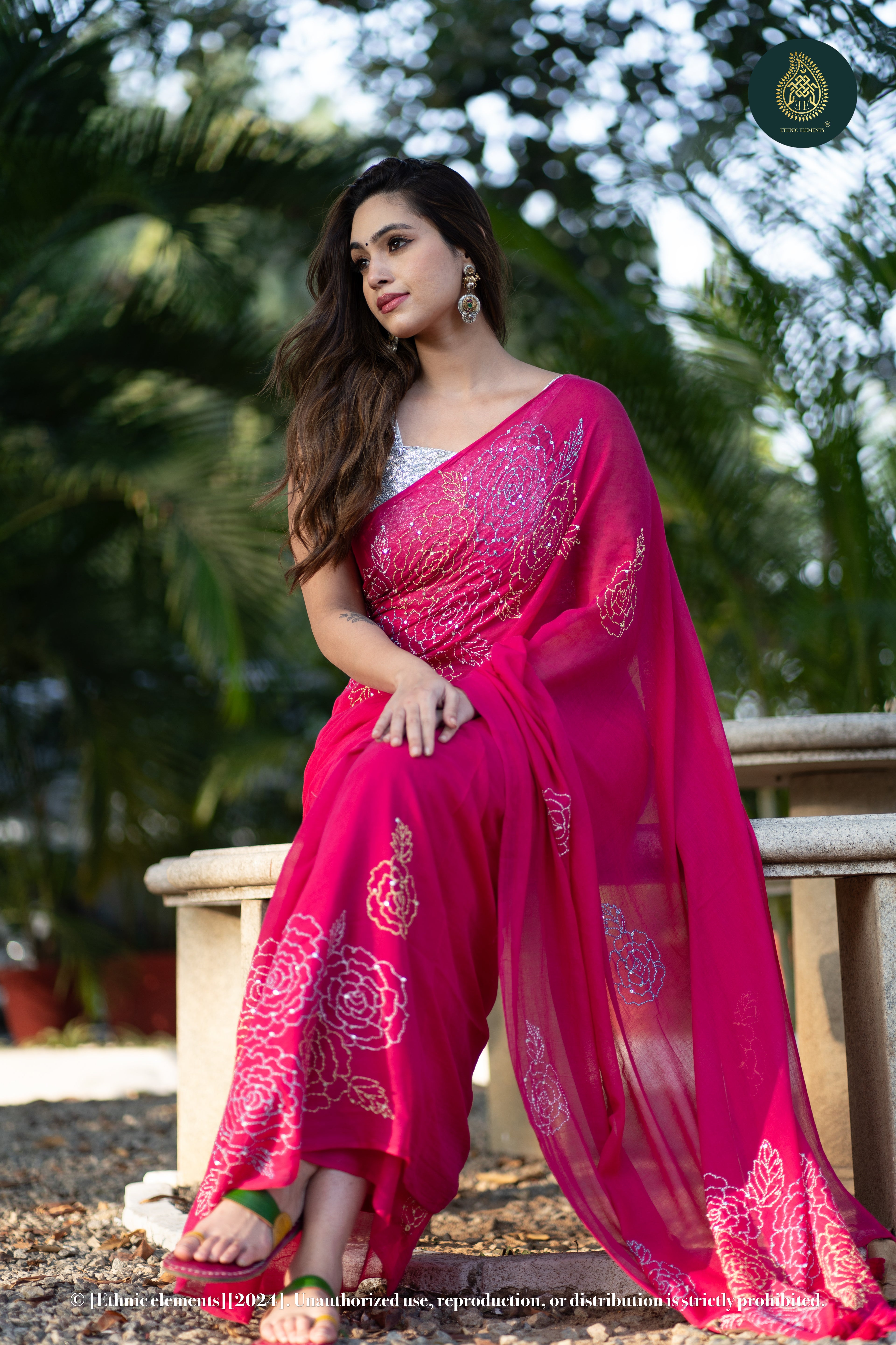 This saree is an ideal choice for anyone seeking a unique, handcrafted piece. Pair it with your favorite blouse to create a polished, stylish look that is sure to stand out. The intricate embroidery and delicate detailing make this saree a statement piece for any occasion.