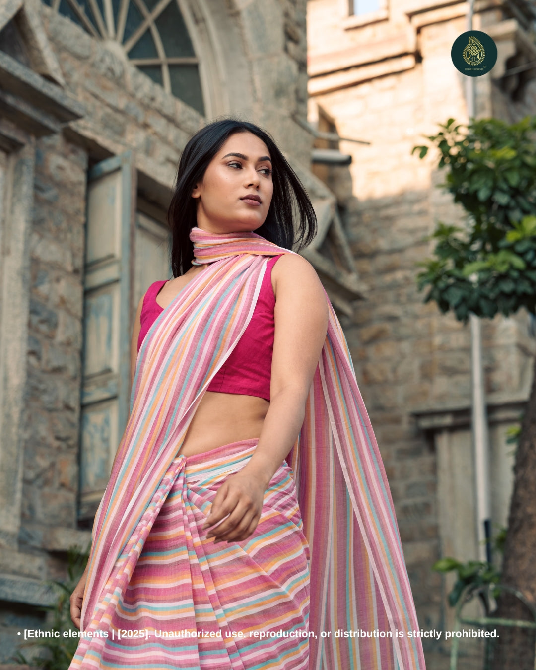 Woven Mul Cotton Handloom Saree - Blush Stripes