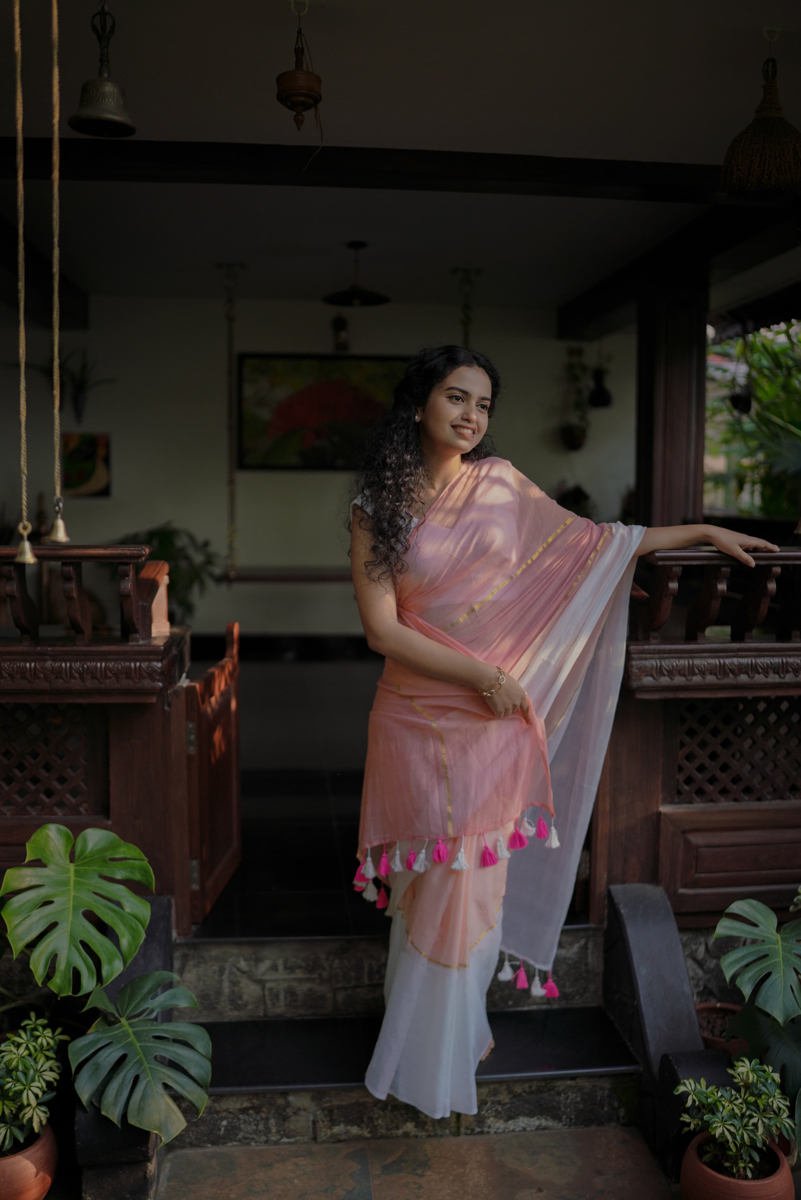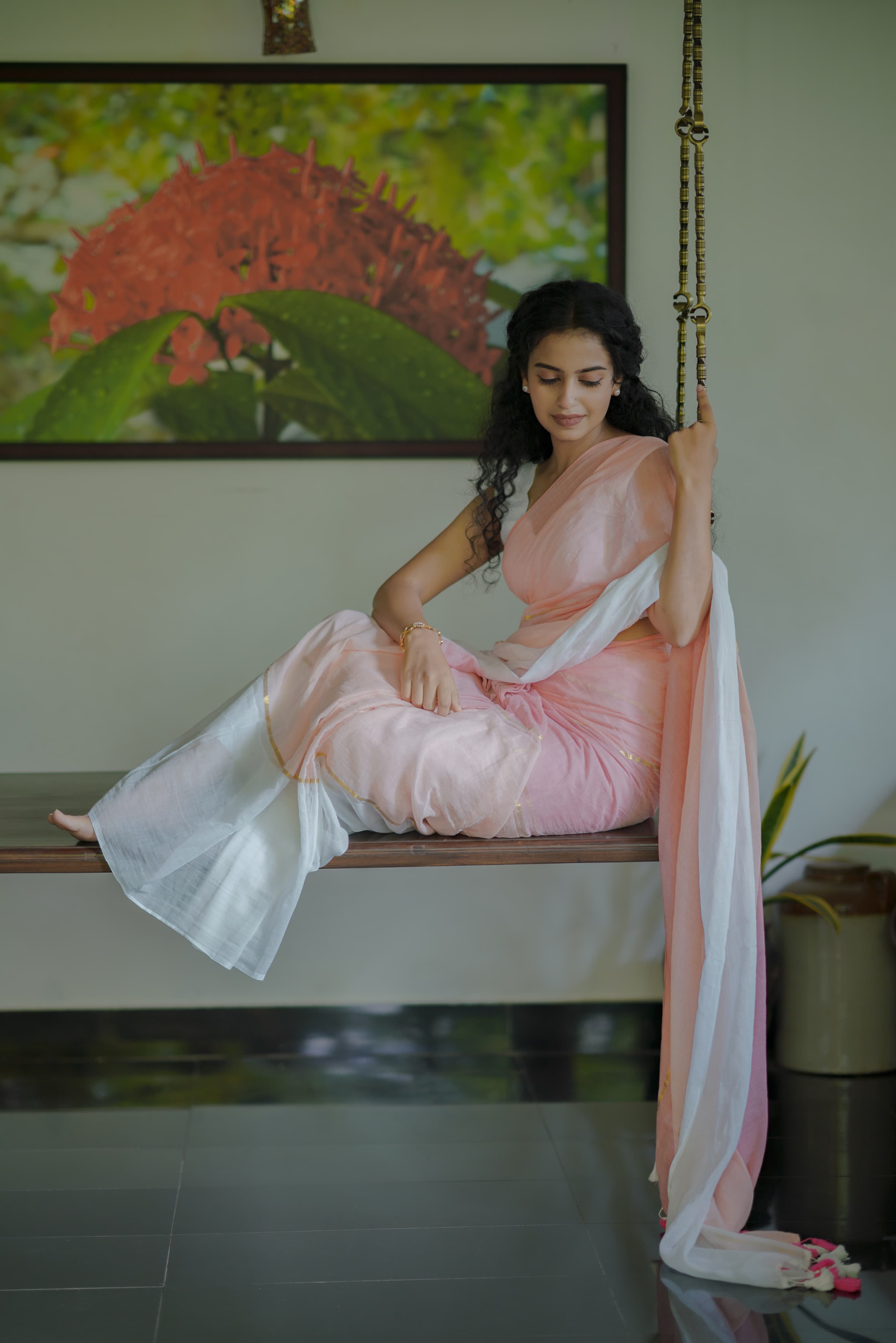 Woven Mul Cotton Handloom Saree - Pink Ombre
