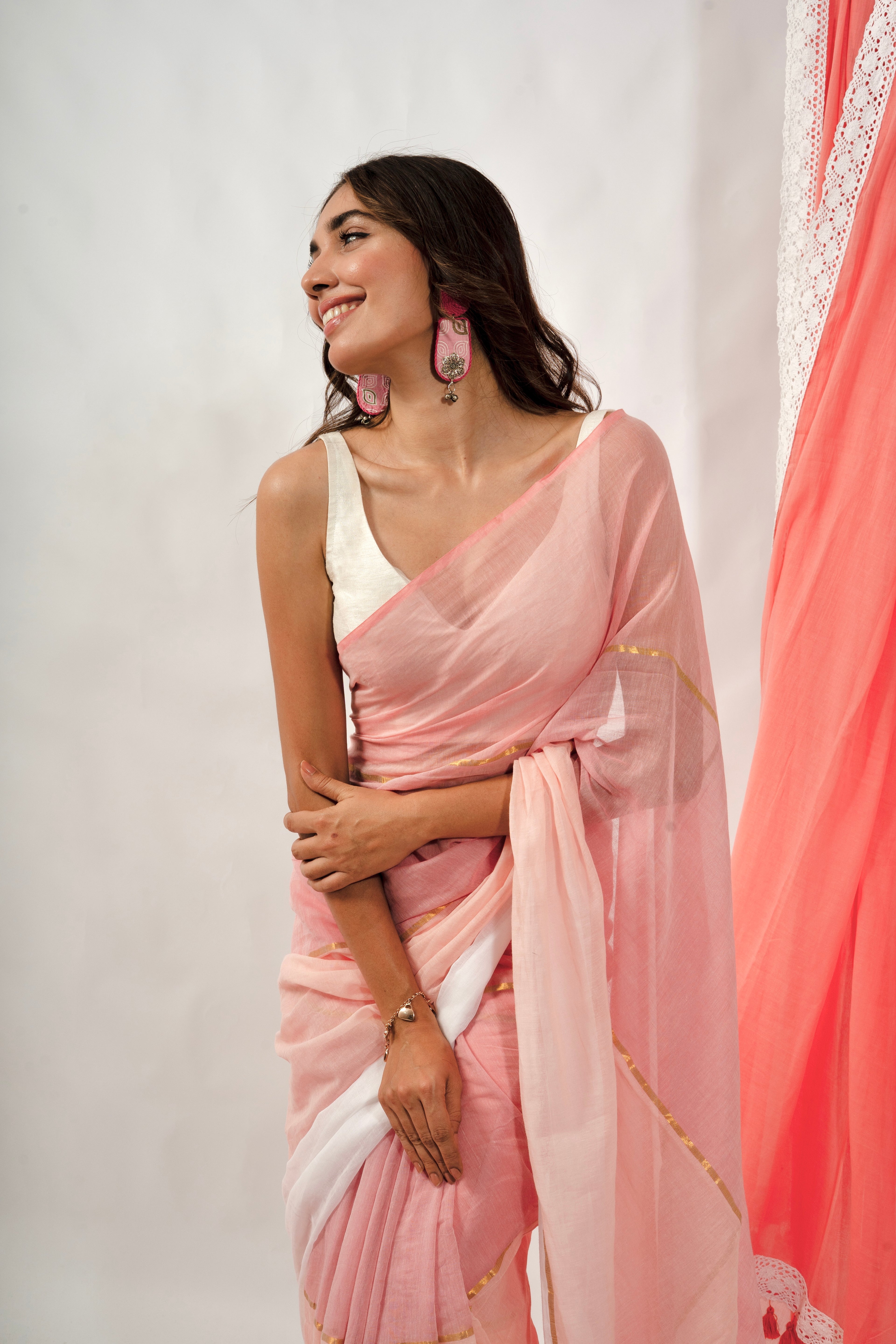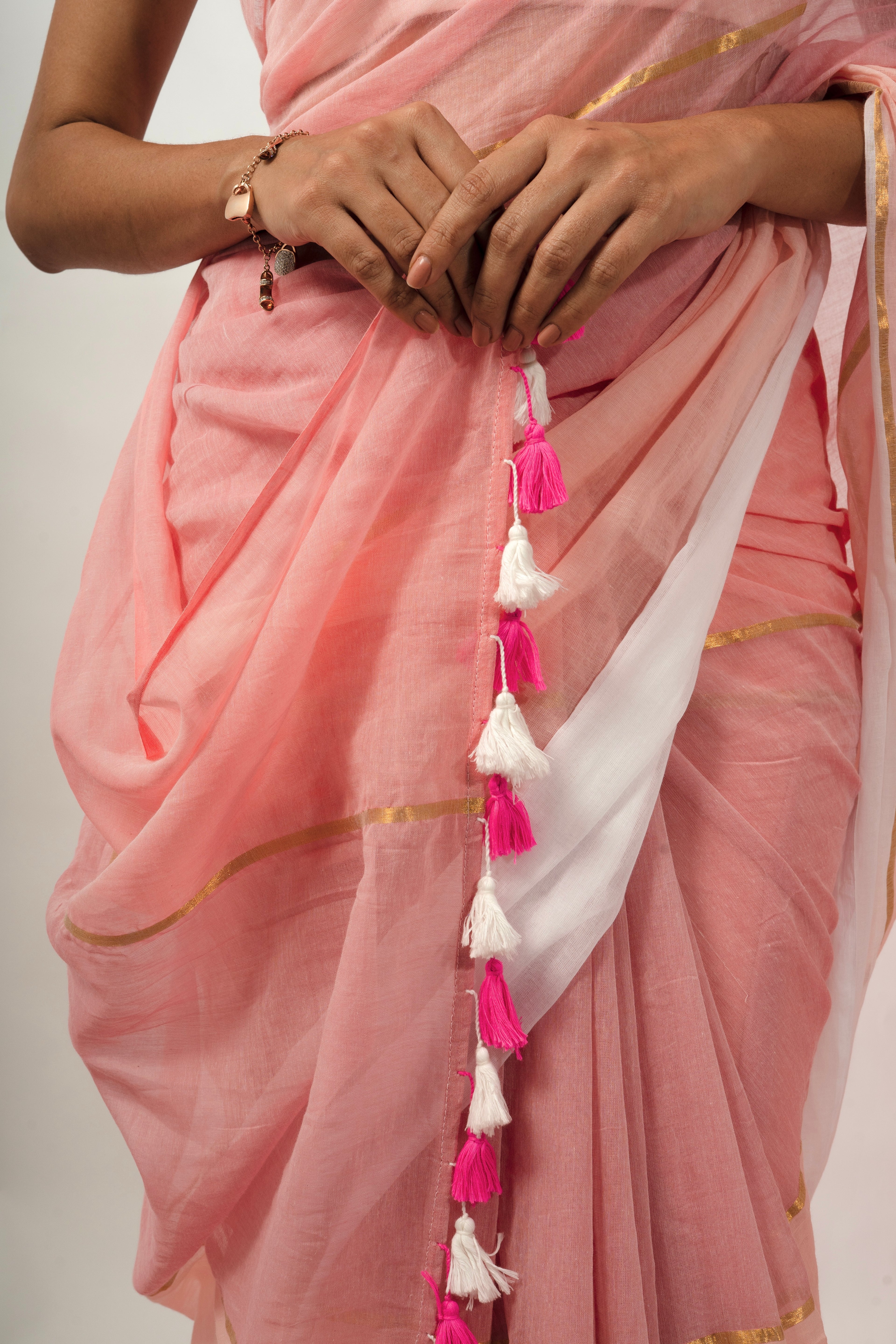 Woven Mul Cotton Handloom Saree - Pink Ombre