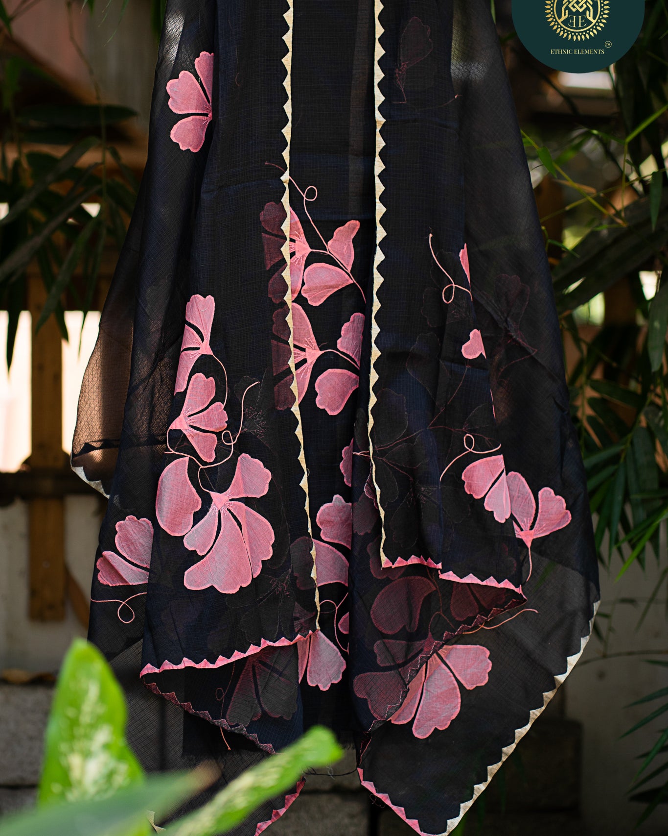 Feel effortlessly beautiful in this uniquely designed and crafted set, featuring a cotton silk kurta and tailored bottoms. This suit makes you comfortable and easy to carry all day. A pair which is perfect for your daily outing and a special occasion.