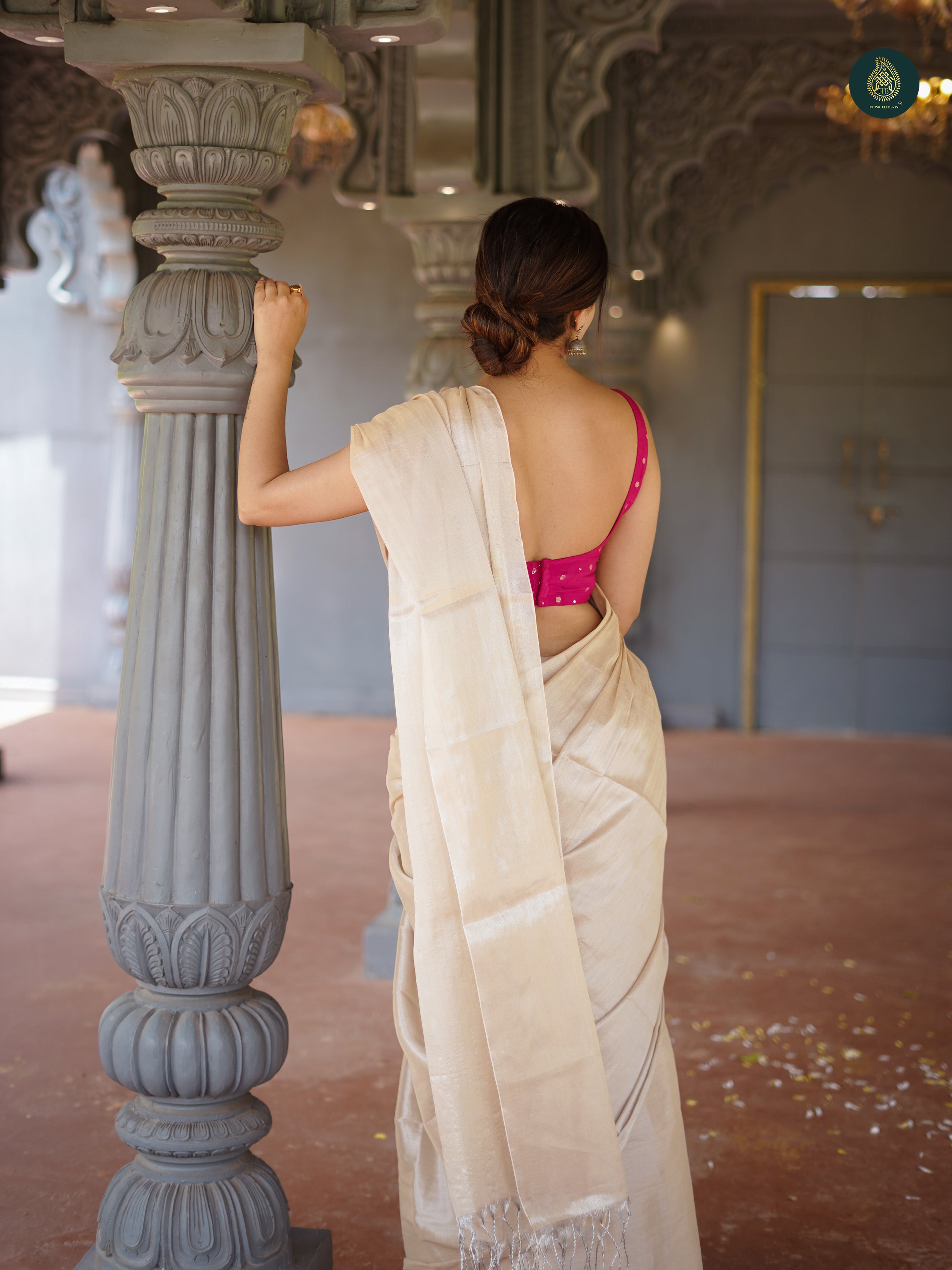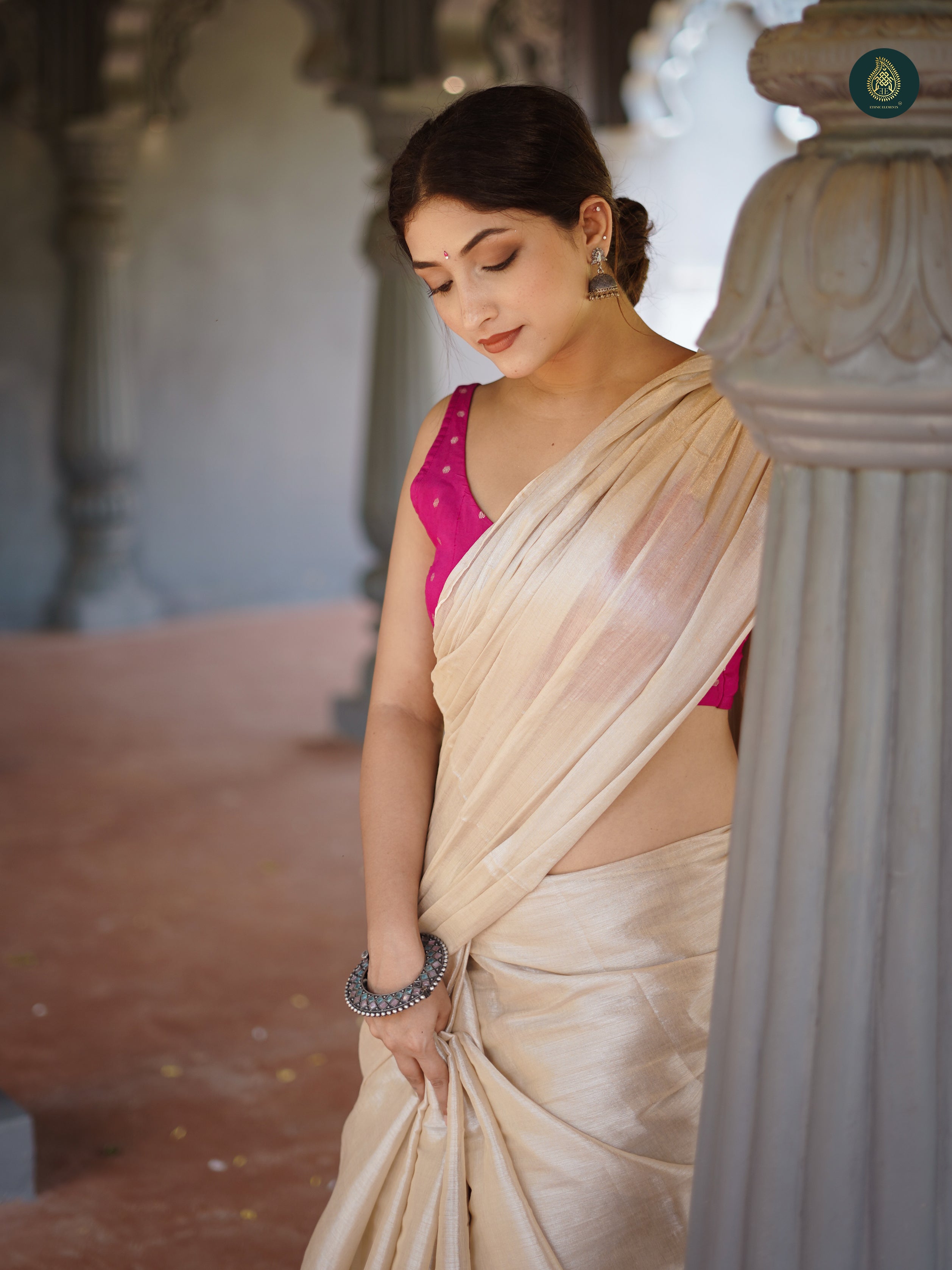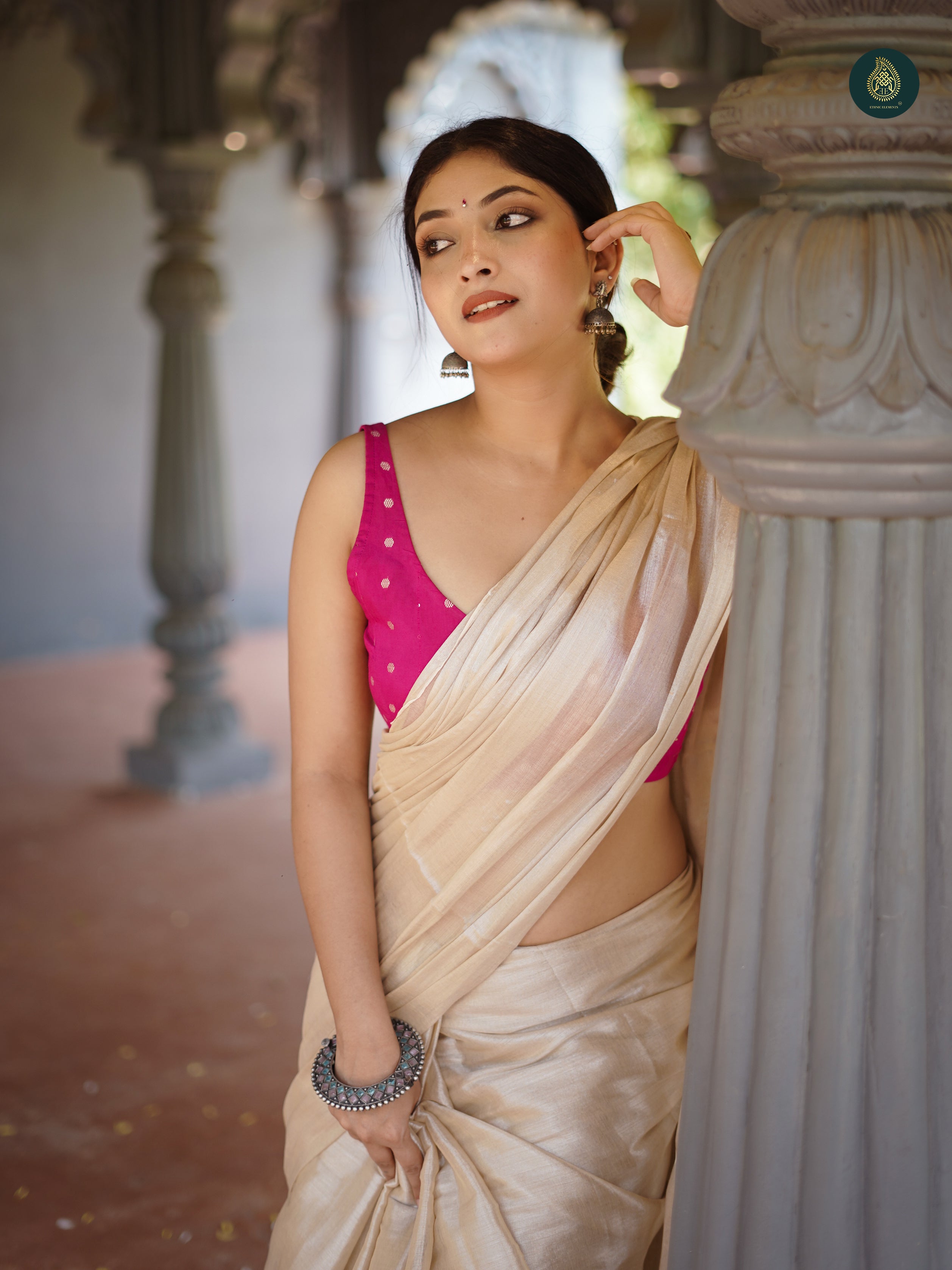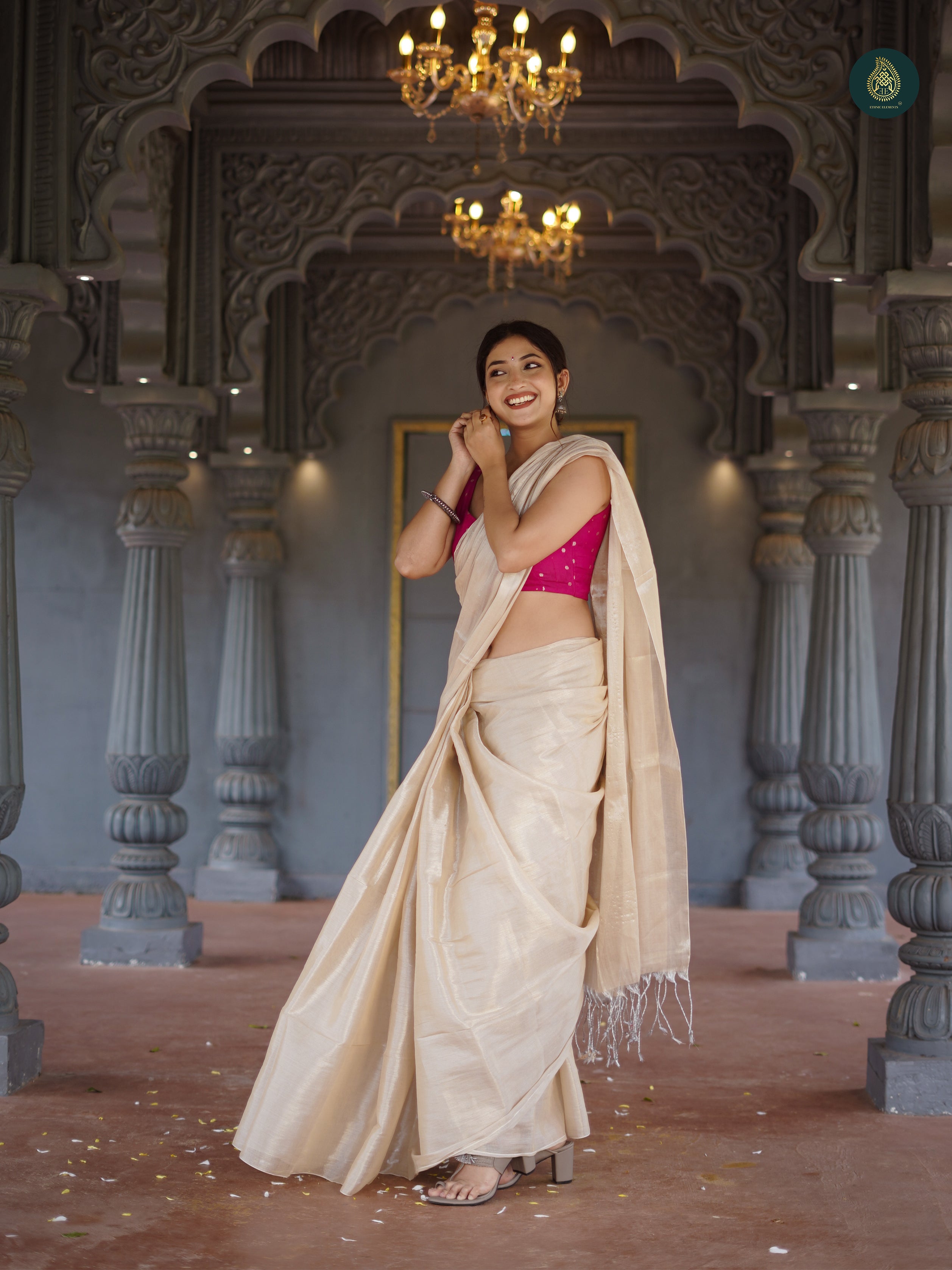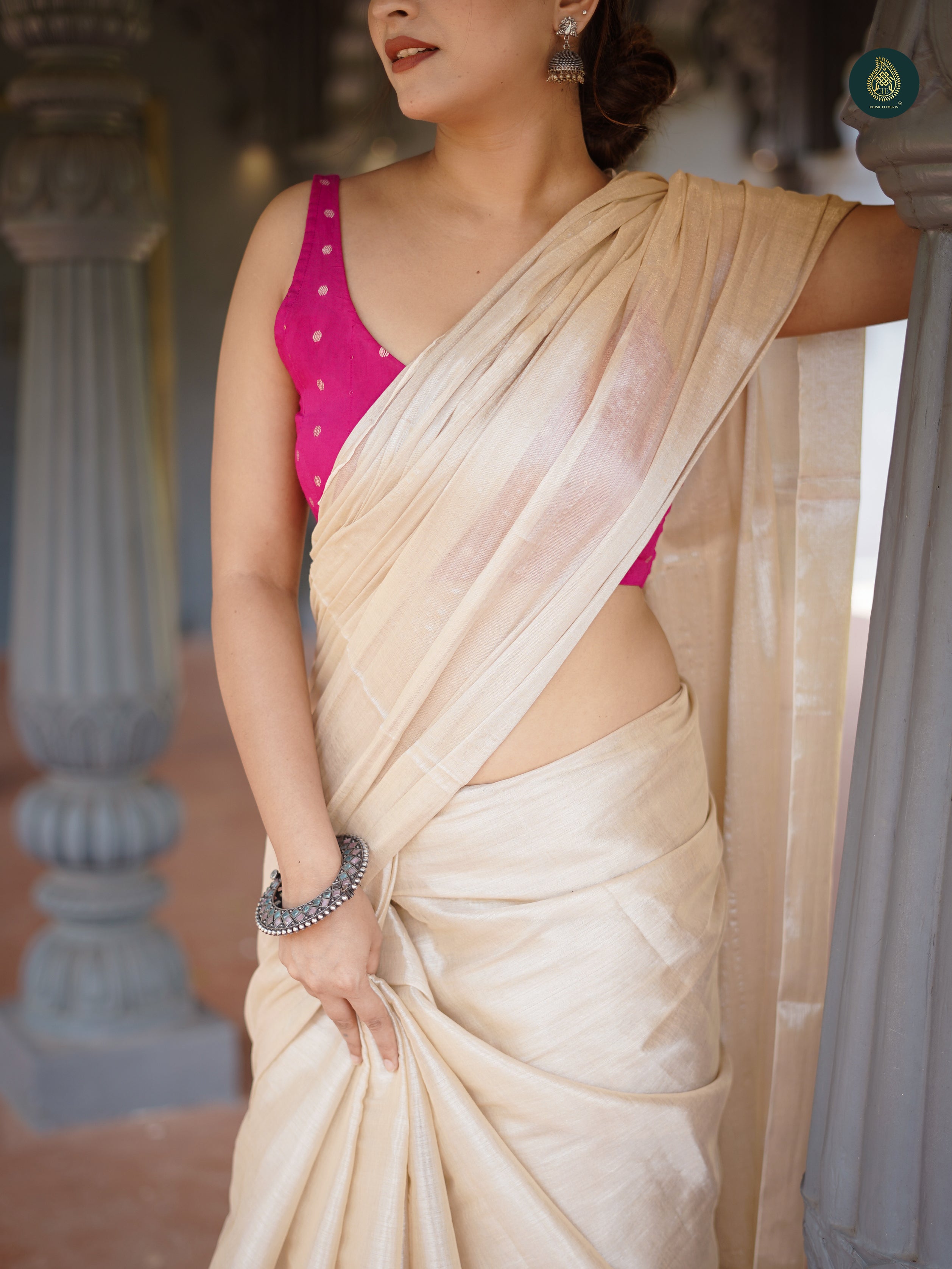 Wrap yourself in the sheer luxury of our hand woven tissue by cotton sarees from ethnic elements. The fabric's intricate craftsmanship and superior quality will make you the epitome of grace and sophistication. Experience the artistry of Indian textiles with every wear. Easy to drape and lightweight