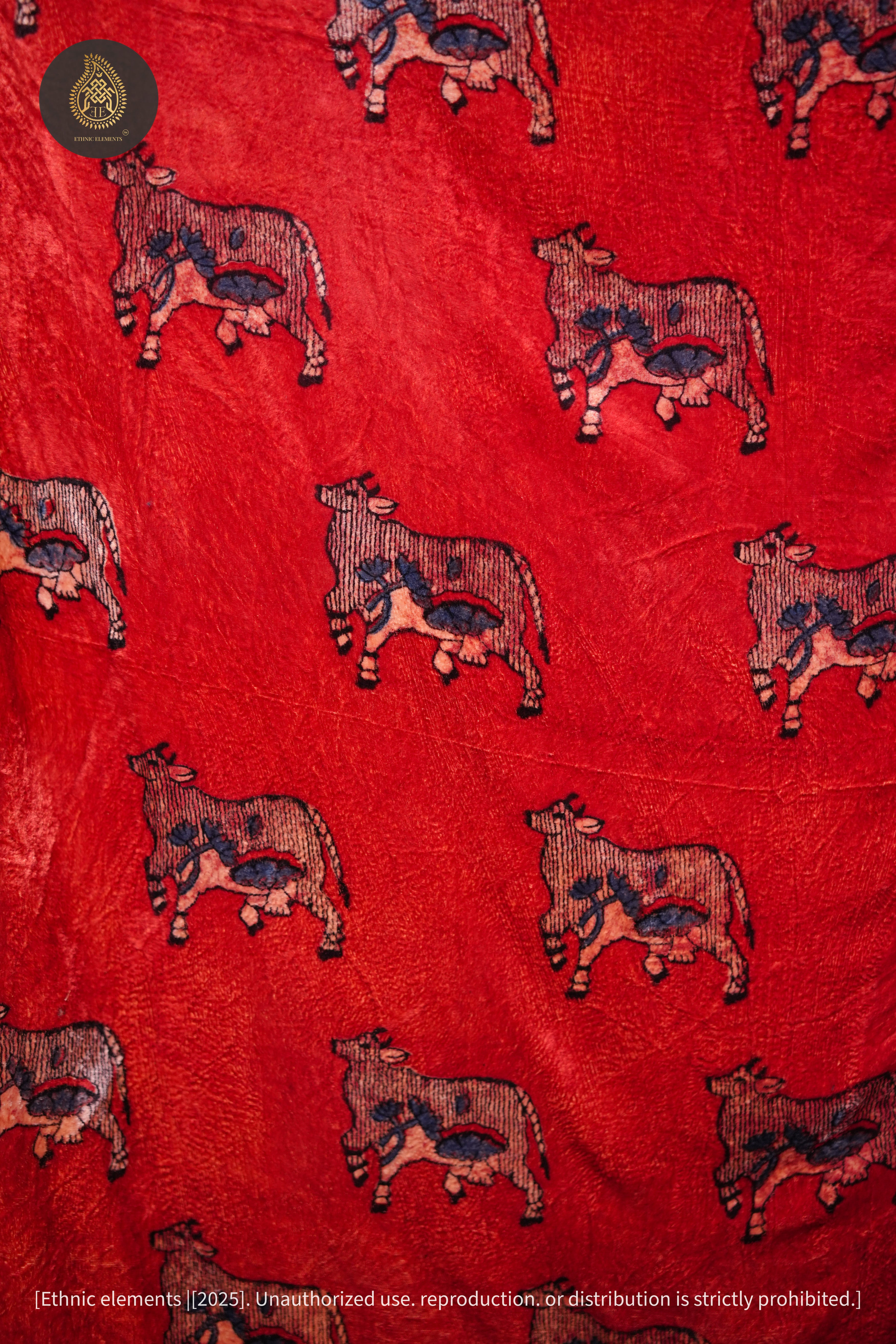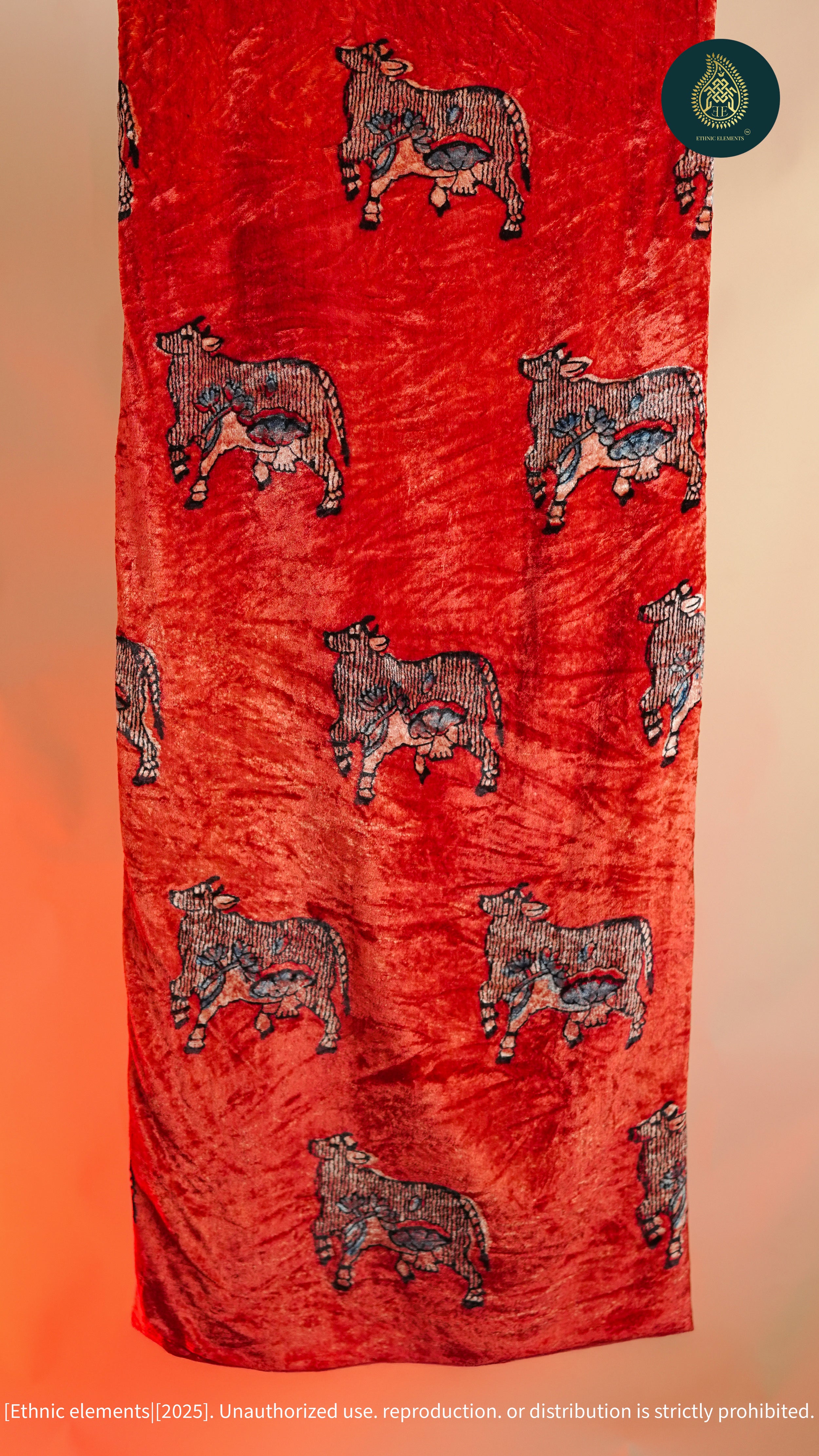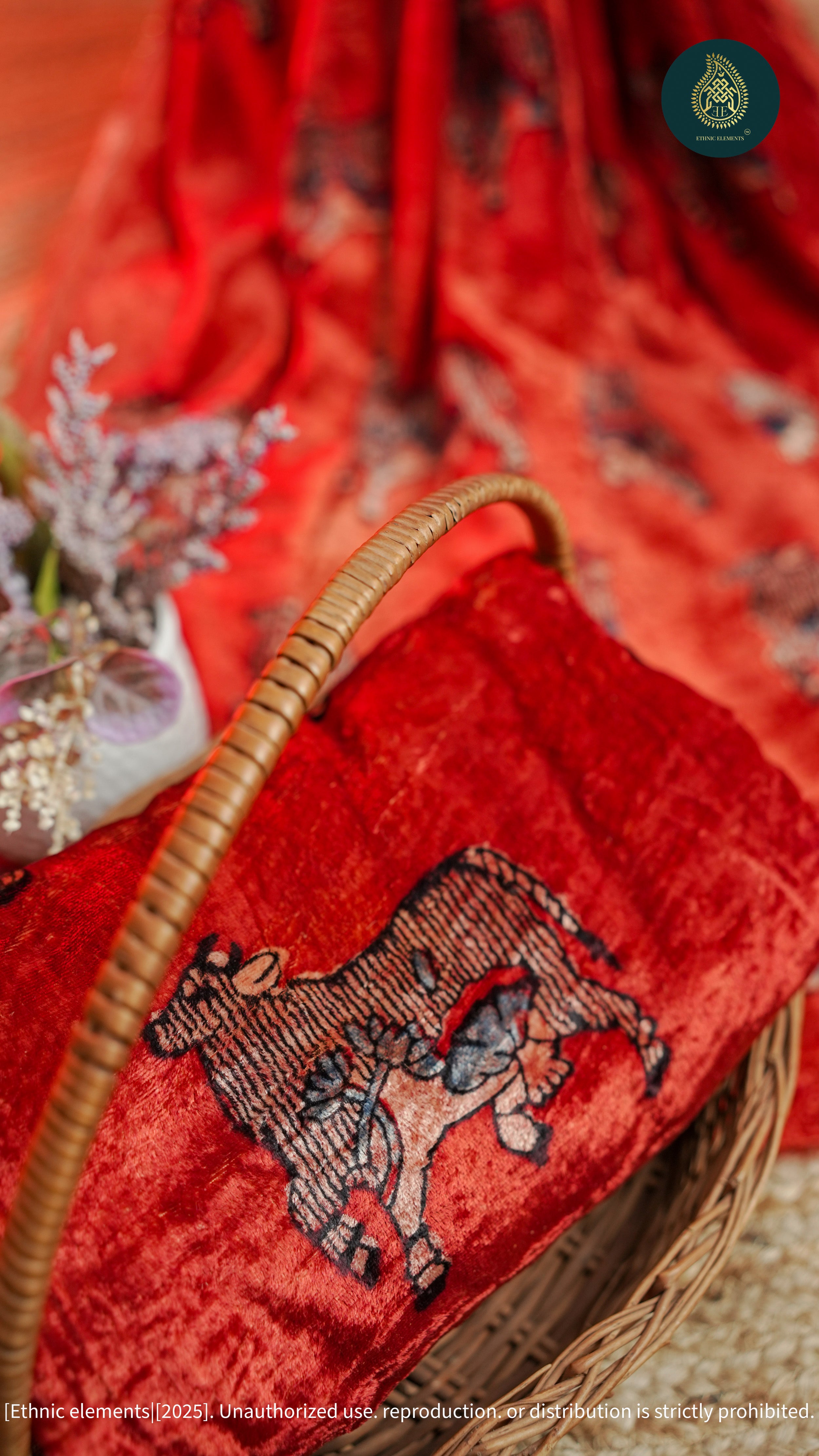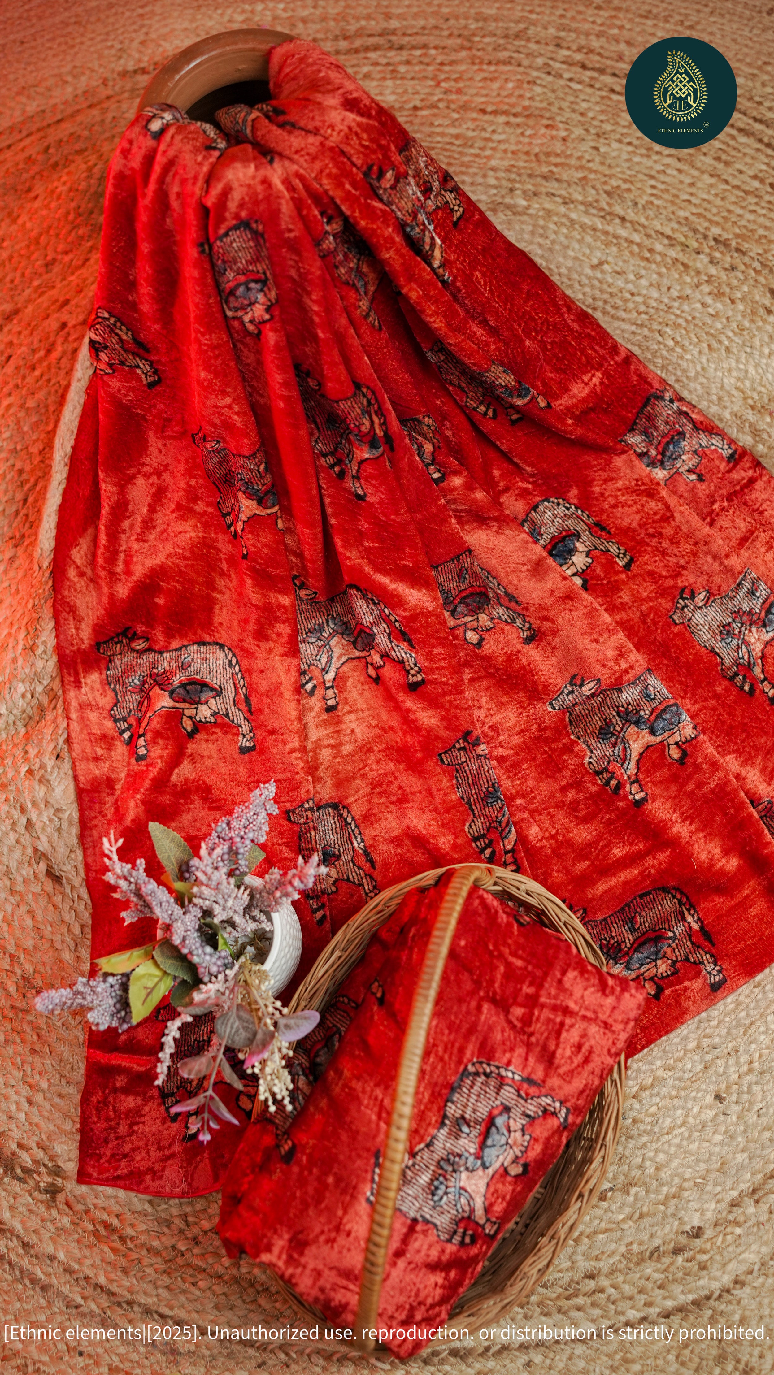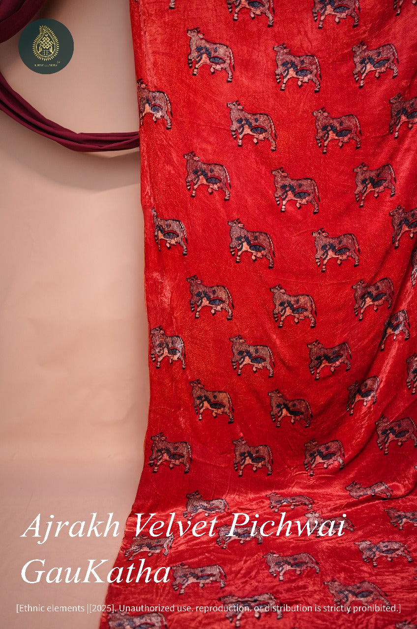 Velvet Ajrakh/Ajrak fabric for kurta. The Ajrakh blocks are made using wooden blocks and organic natural colors. This is only a kurta fabric piece.