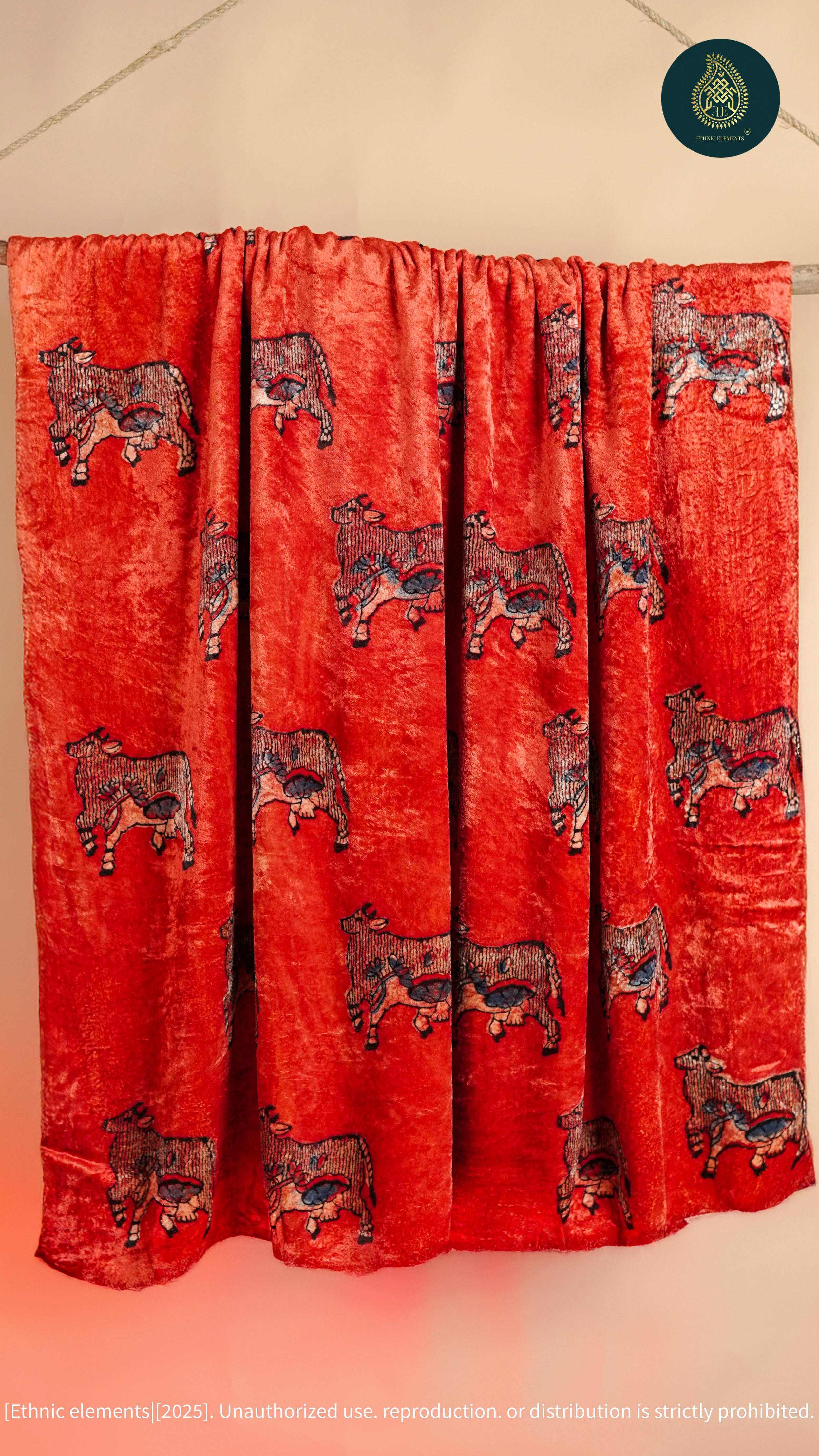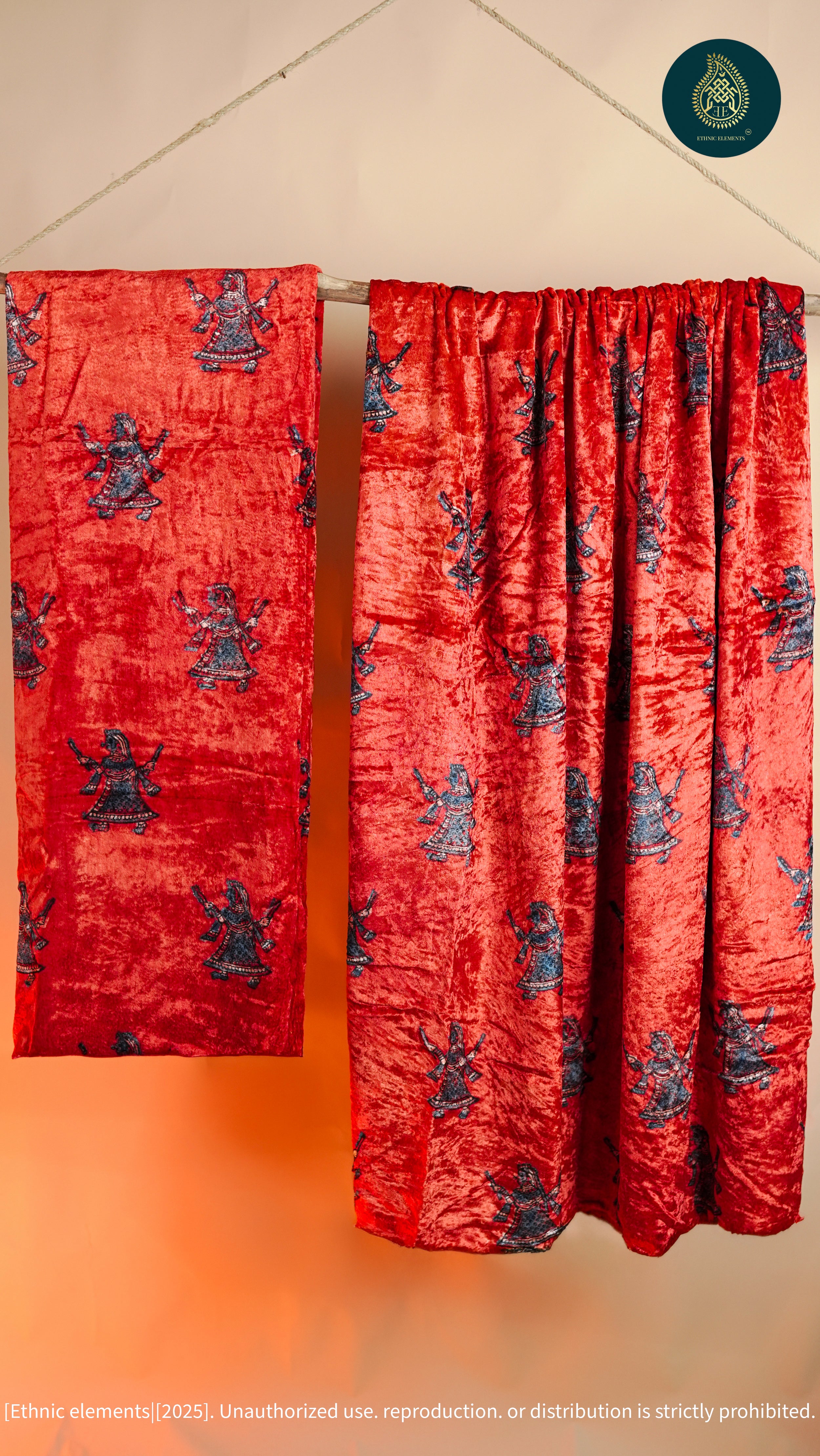 Ajrakh Velvet Anitique Sandal Sky Bloom
