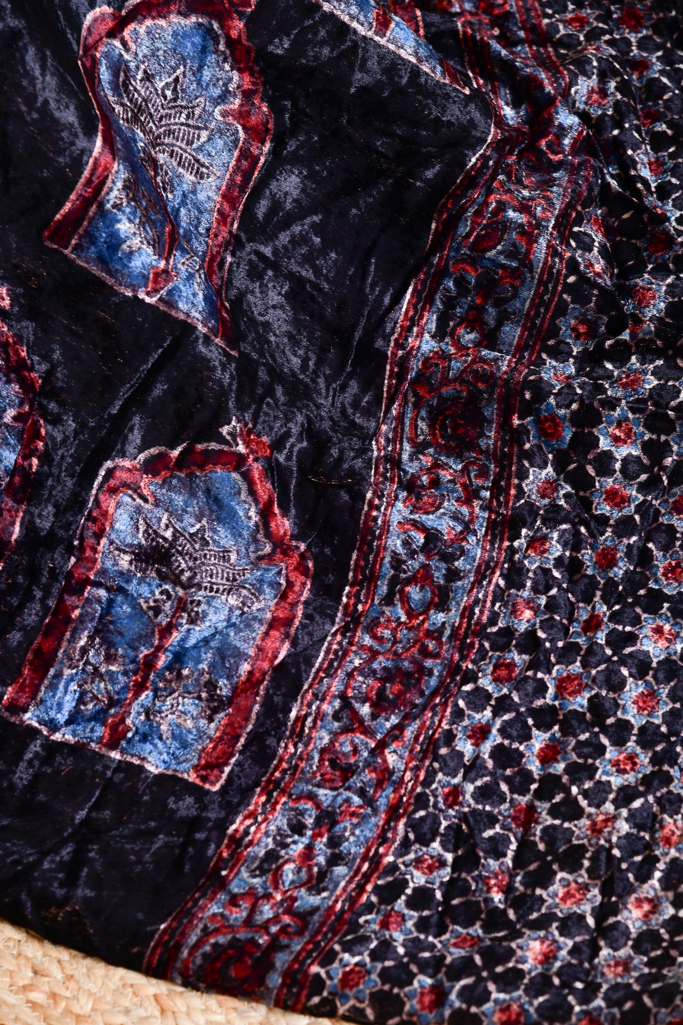 Velvet Ajrakh/Ajrak fabric for kurta. The Ajrakh blocks are made using wooden blocks and organic natural colors. This is only a kurta fabric piece.