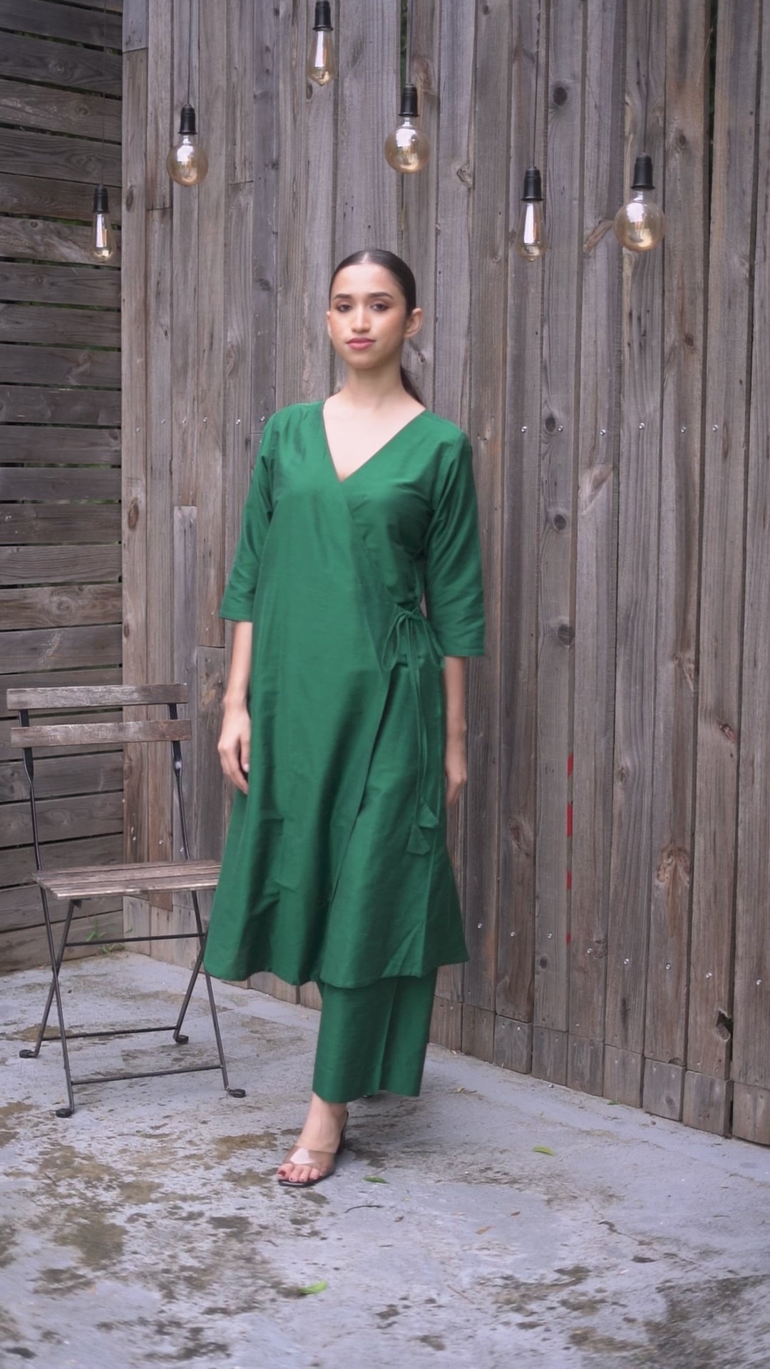 Style guide - Complement our green angrakha with a traditional dupatta—select from our timeless elegance of Kalamkari, the exquisite Ajrakh, the earthy Dabu, the artisanal Bhujodi handblock, or the delicate sheen of Chanderi and Maheshwari for the sophisticated look