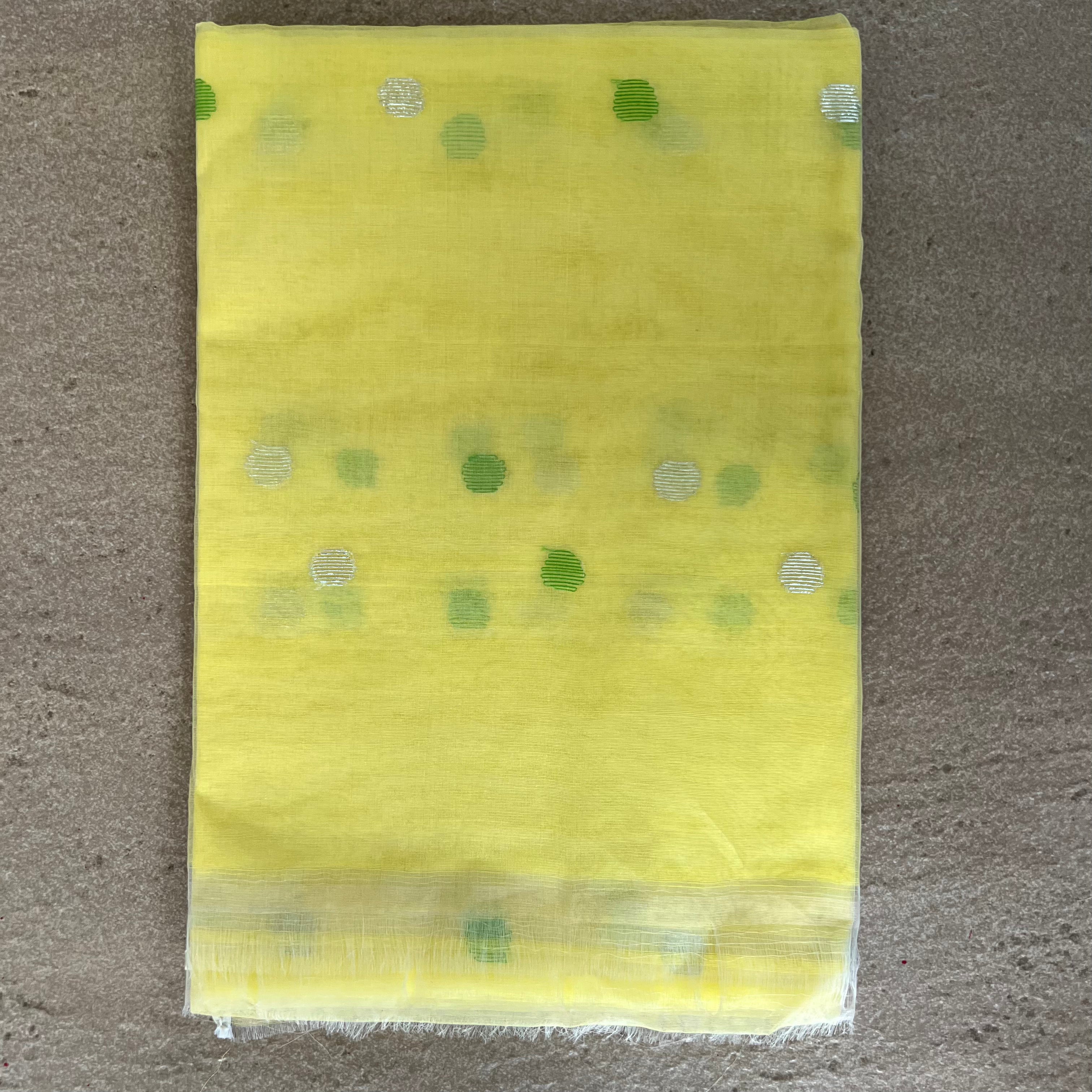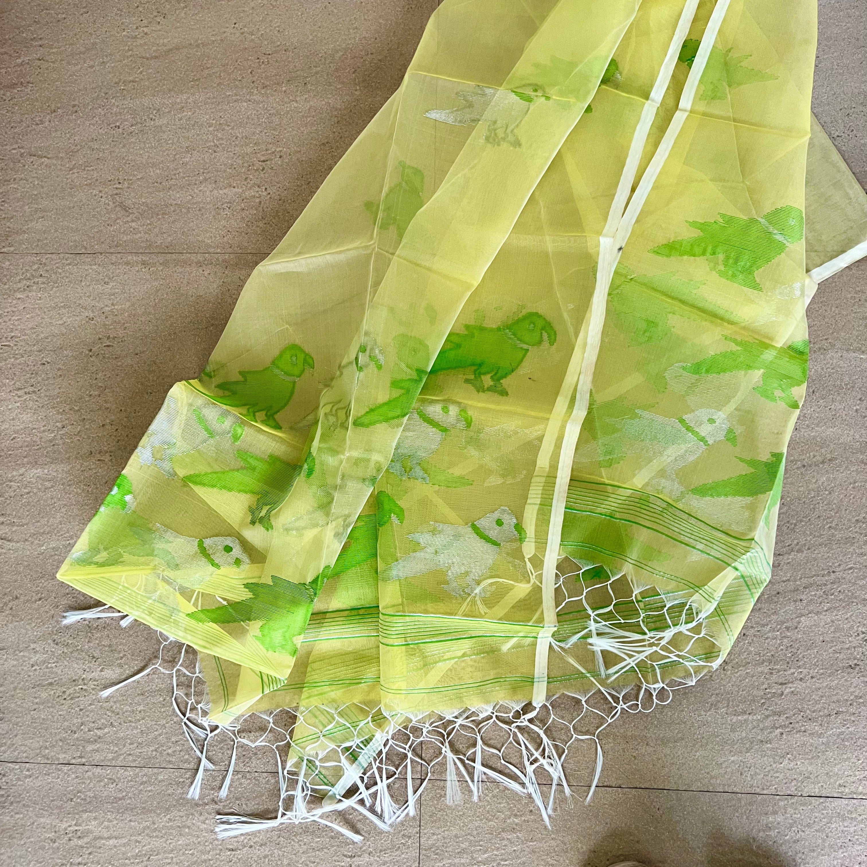 Muslin Jamdani Suit Set- Yellow With Green Bird