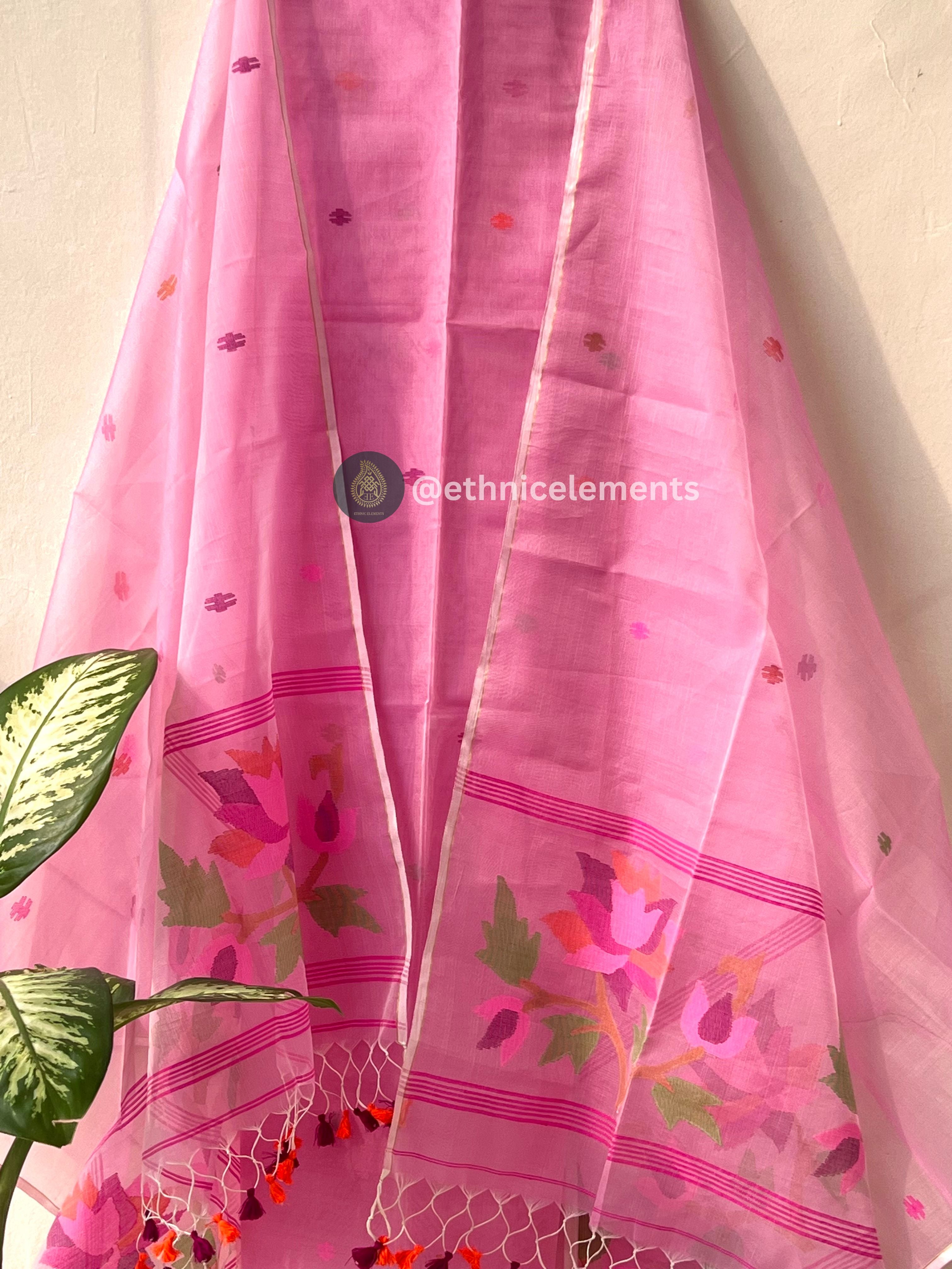 Resham Muslin Jamdani Suit Set - Pastel Pink
